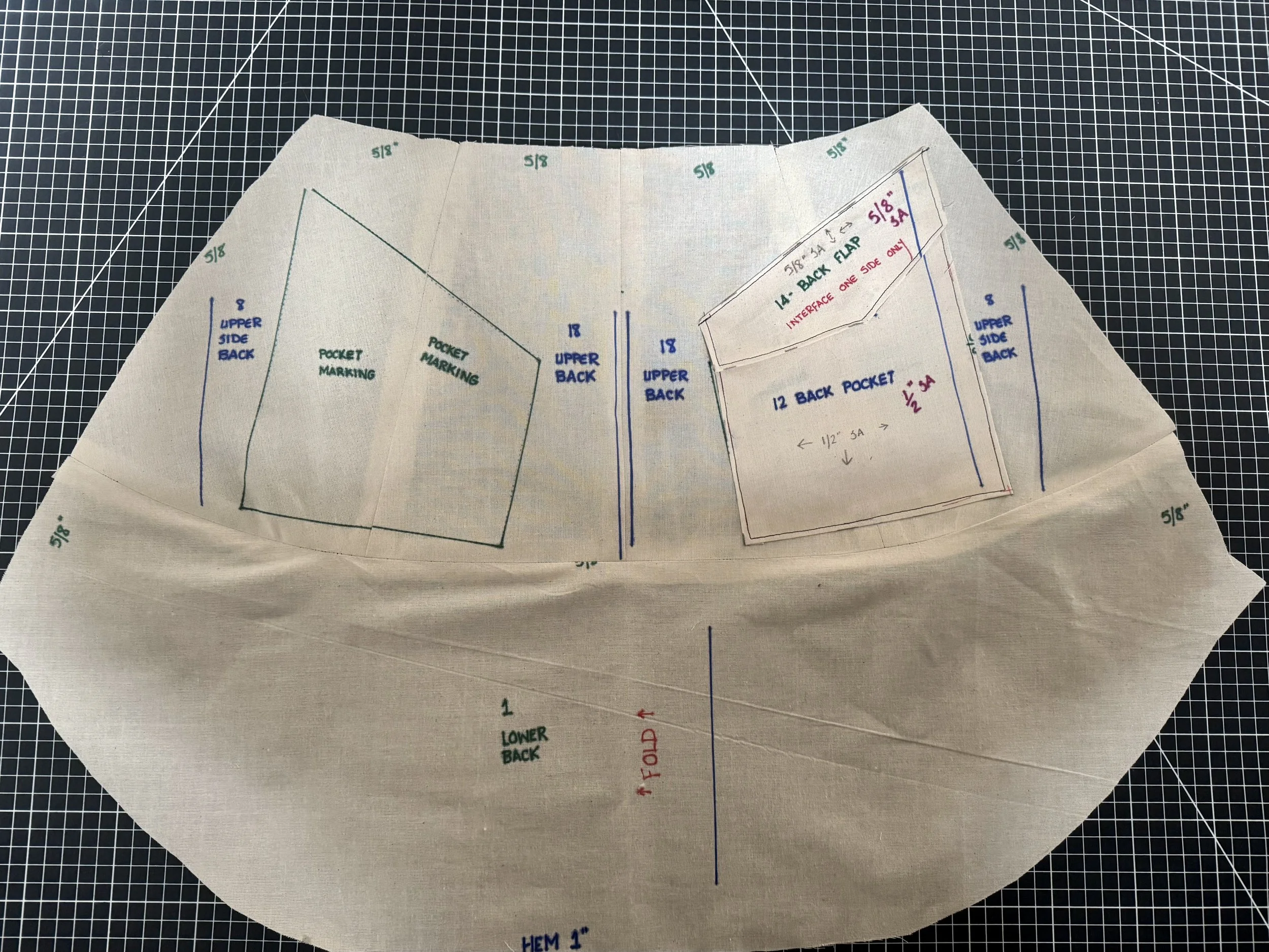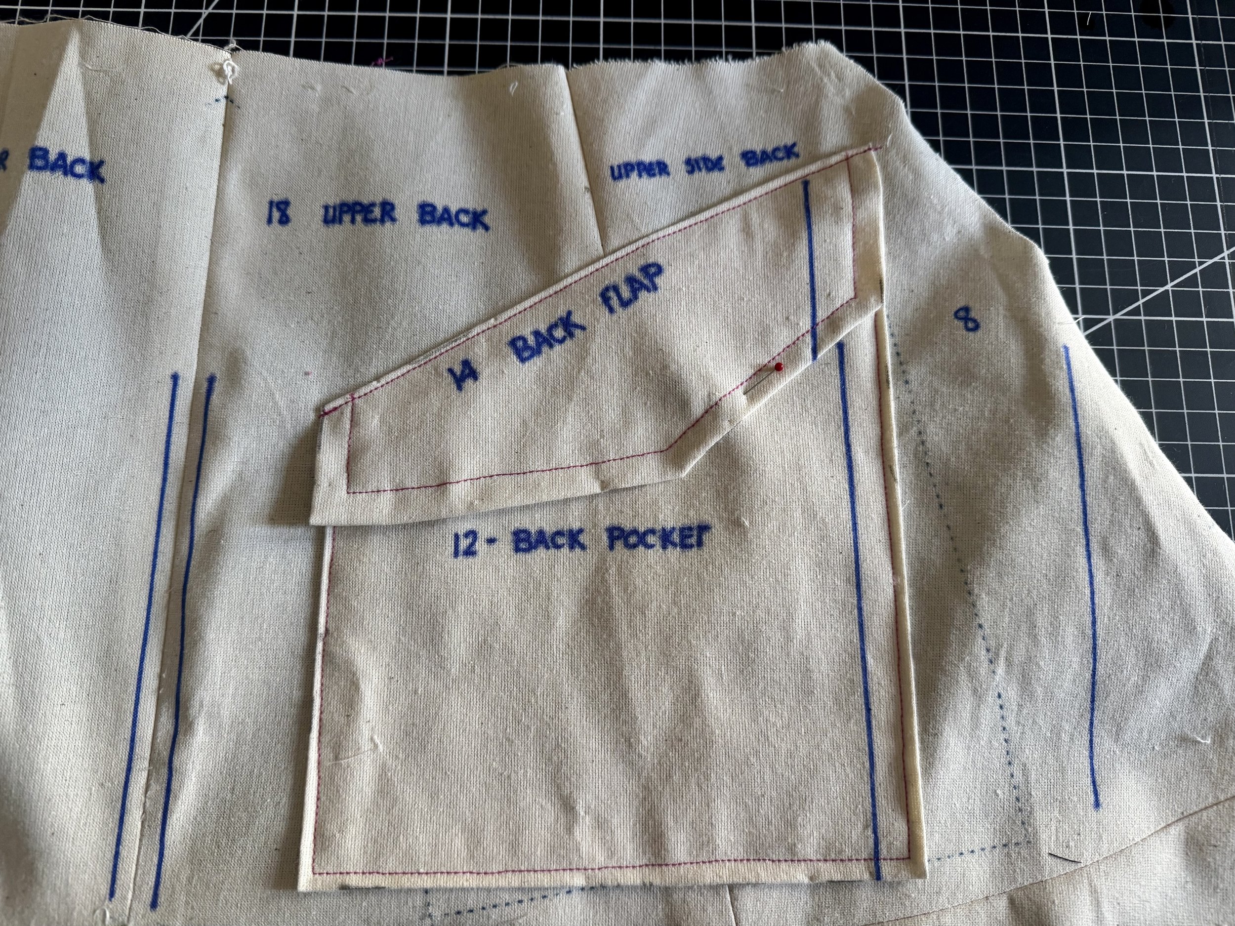 Depending on your fashion fabric, interfacing and lining might be necessary on both front and back pockets/flaps.