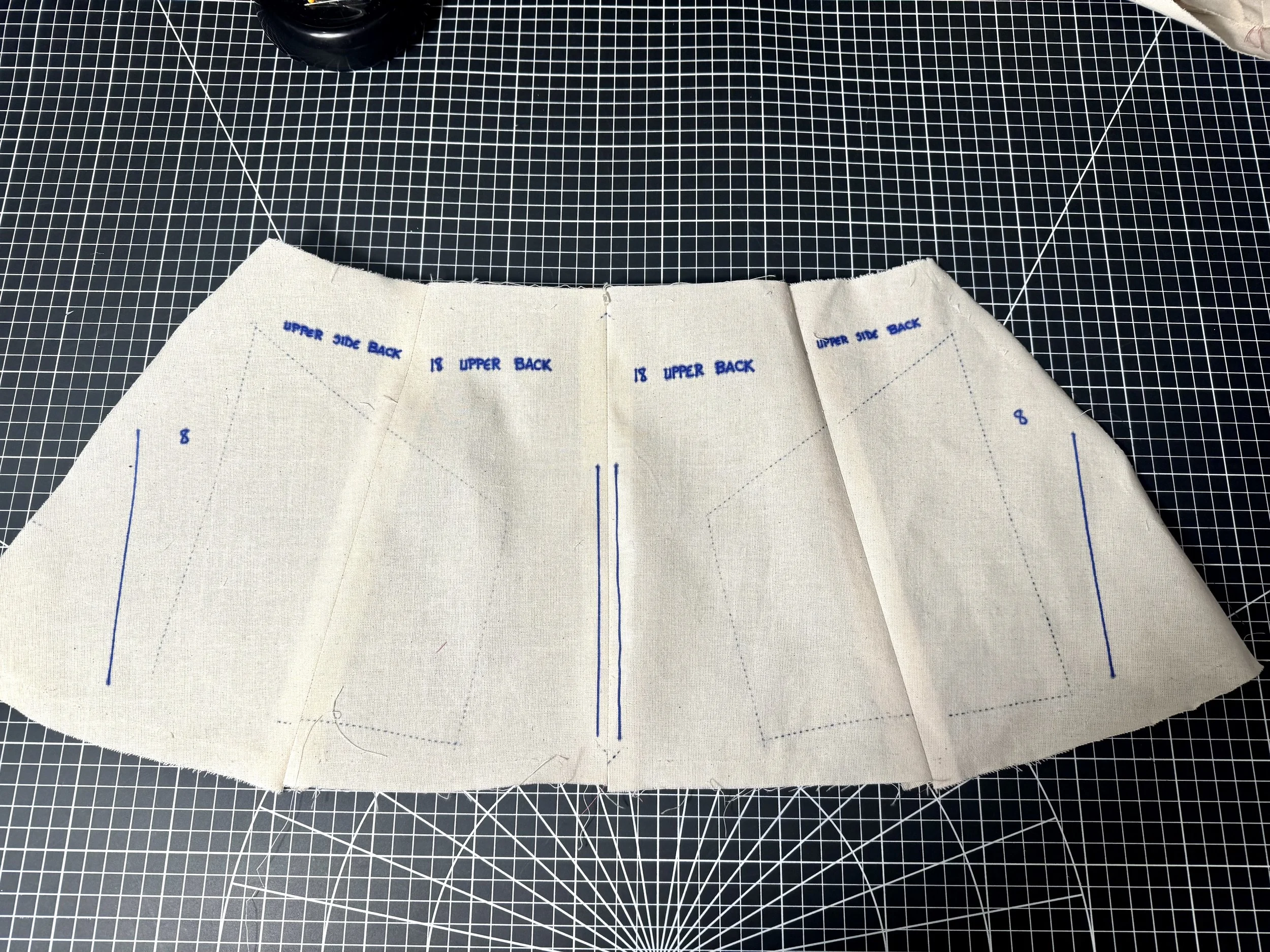 Sew piece 1 - the lower back to the upper back panels.