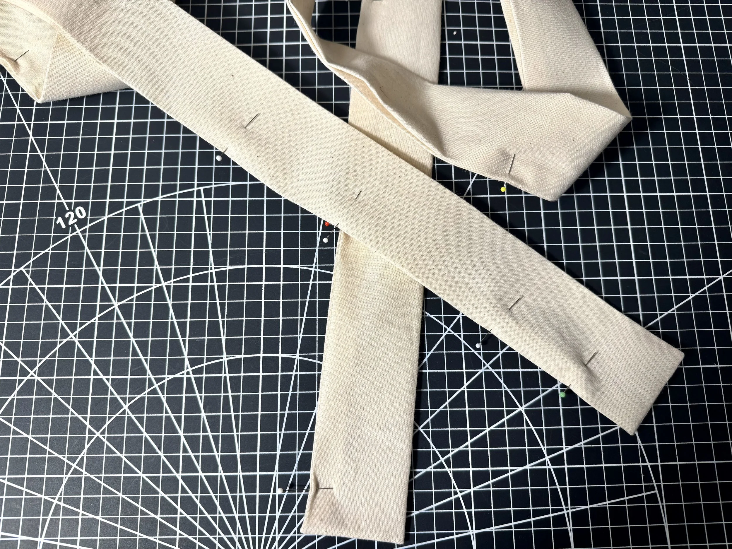 Fold your belt in half, turn and press your seam allowances in on both sides lengthways and finish the edges in the same way as the waistband - by turning your belt wrong side out, stitch your ends, and trim, before flipping it back to the right side.
