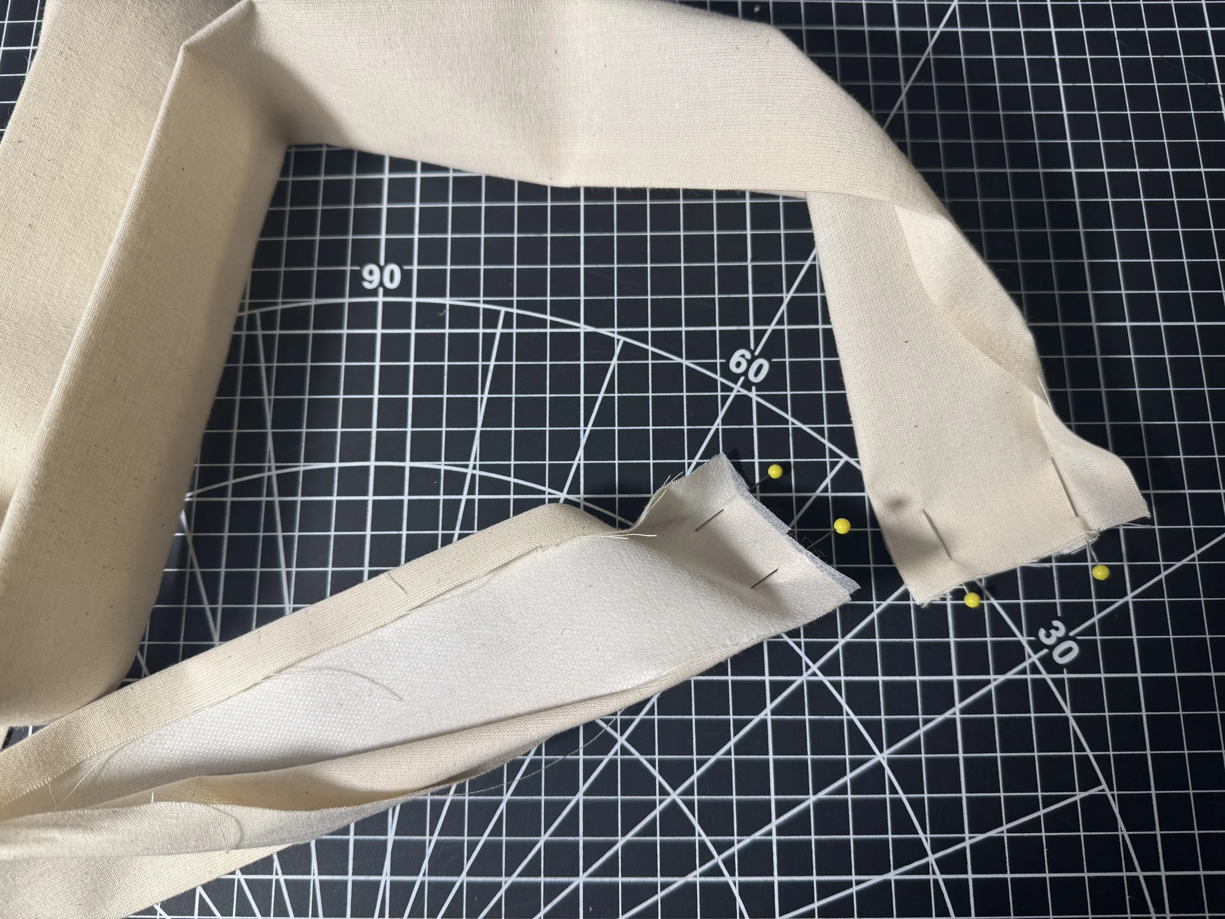 Pin, and stitch, grade if bulky and snip the corner for a clean point if needed. Flip back to the right side and turn the folded edge to the inside.