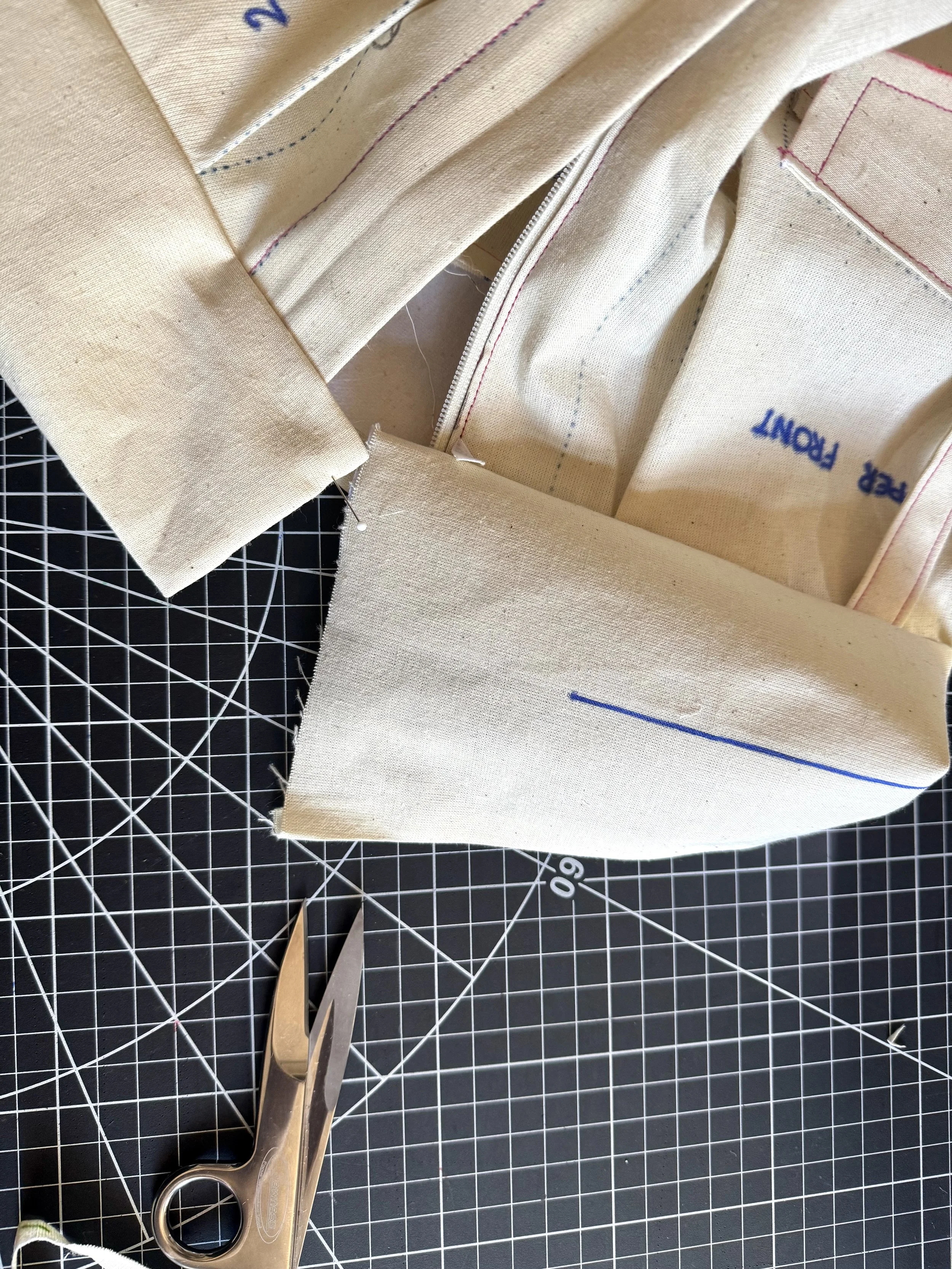 Grade your seams if using a thicker fashion fabric, and snip any zipper tape that extends past the waistband seam.