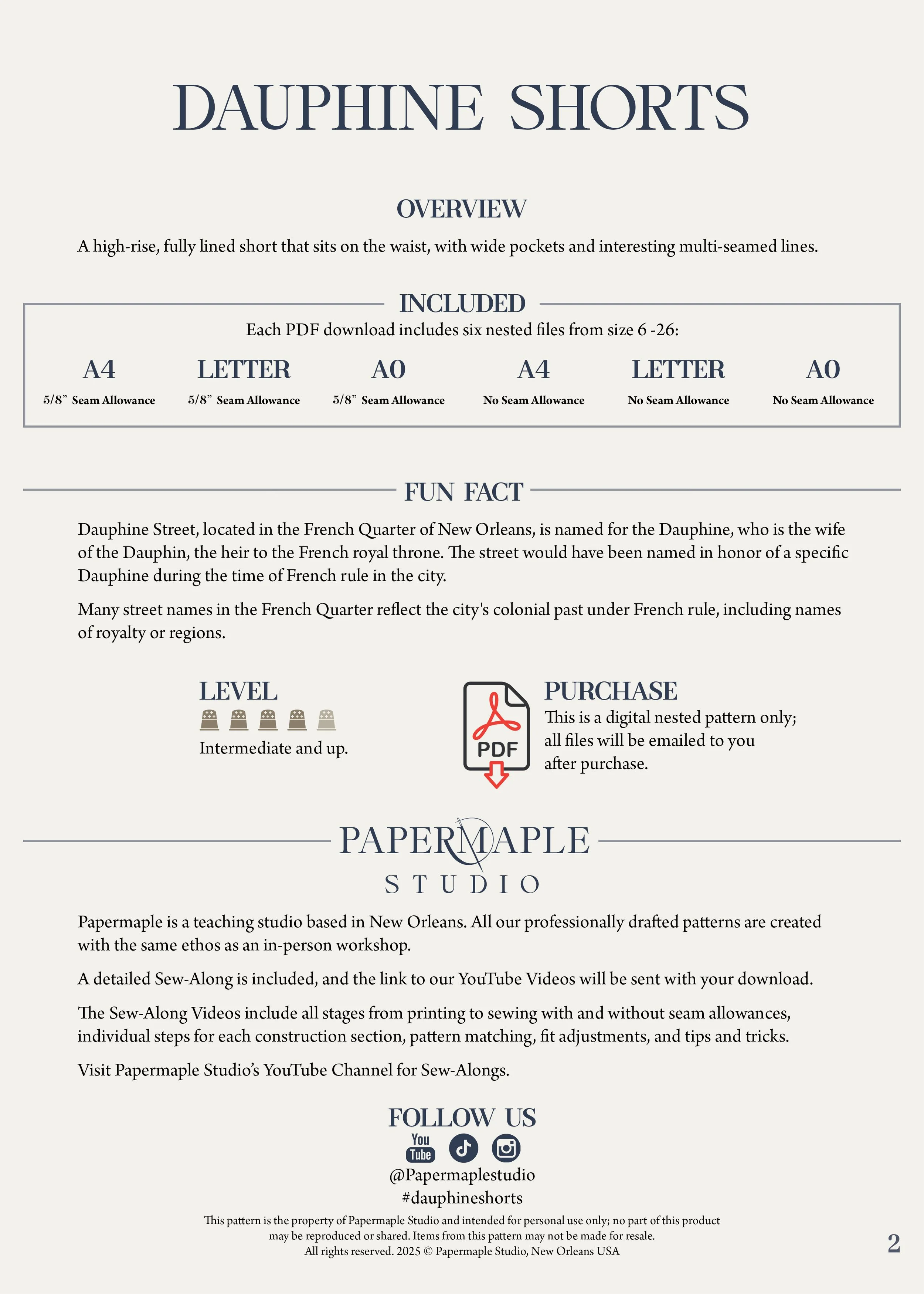 1 - The Dauphine Short Dauphine ShortOriginal PatternsDigital Patterns Feb 23 Written By Leisa Stanton Dauphine shortsdauphine short constructiondauphine short pattern Leisa Stanton https://www.papermaplestudio.com