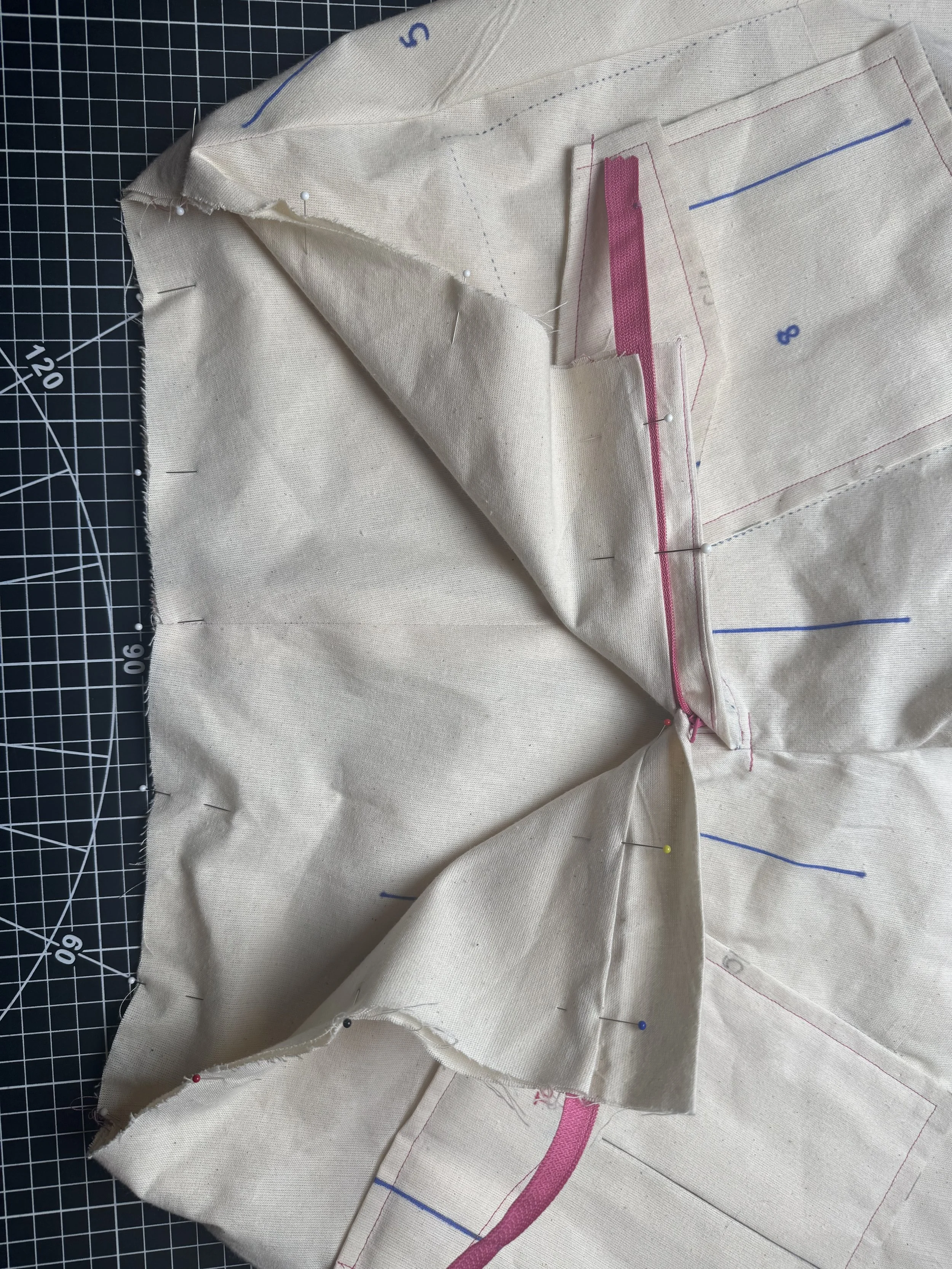 I made two notch lines on my lining, both marked on the pattern pieces. The one on the right which is a match point.
