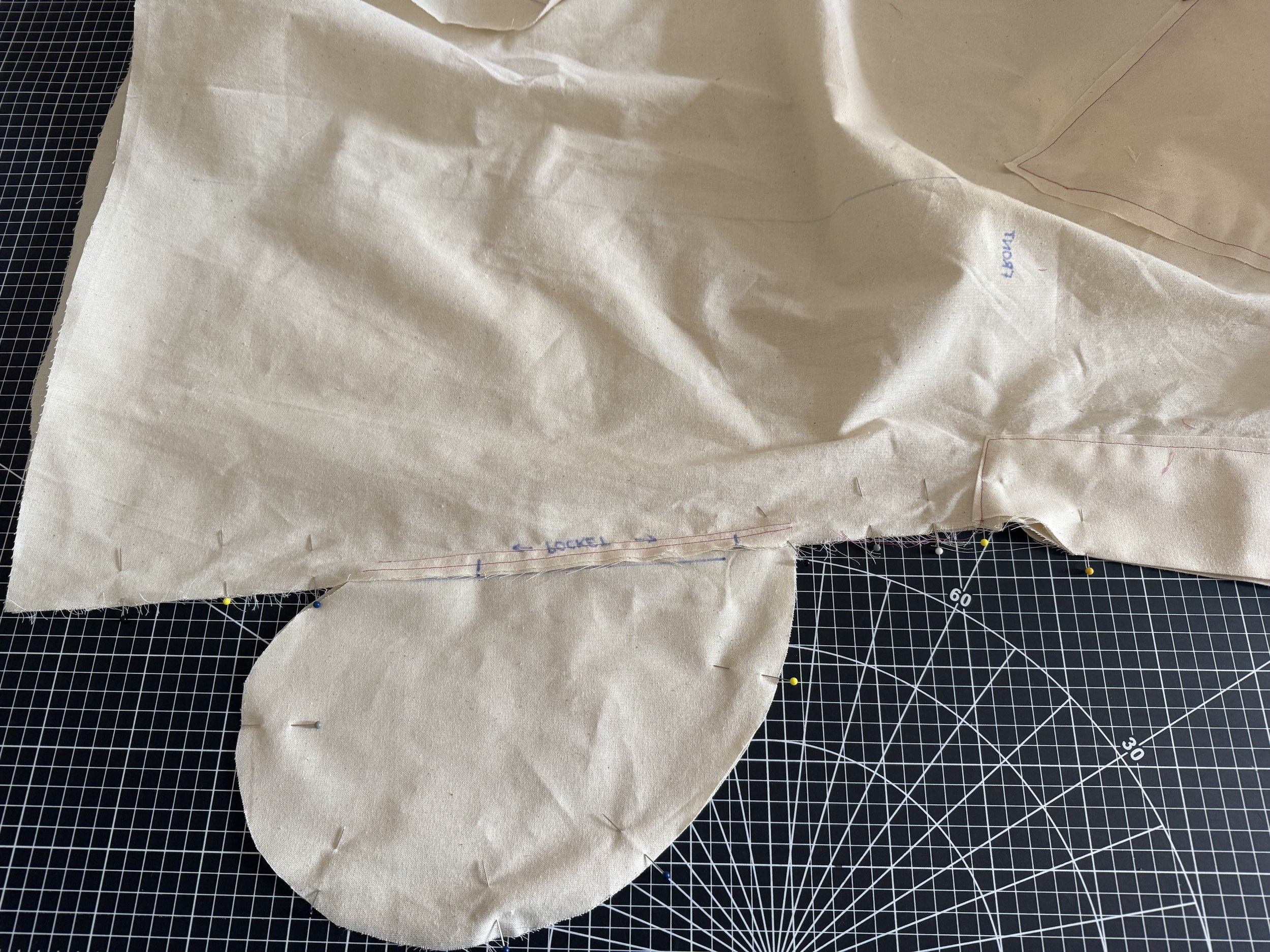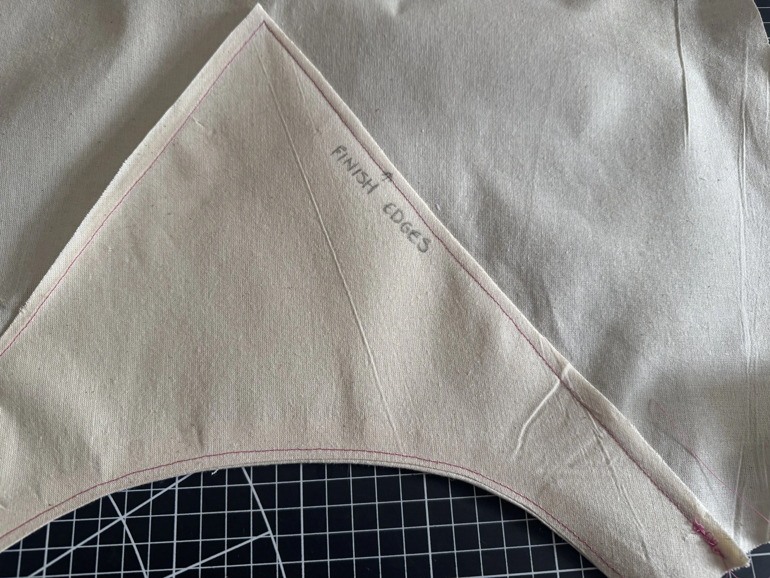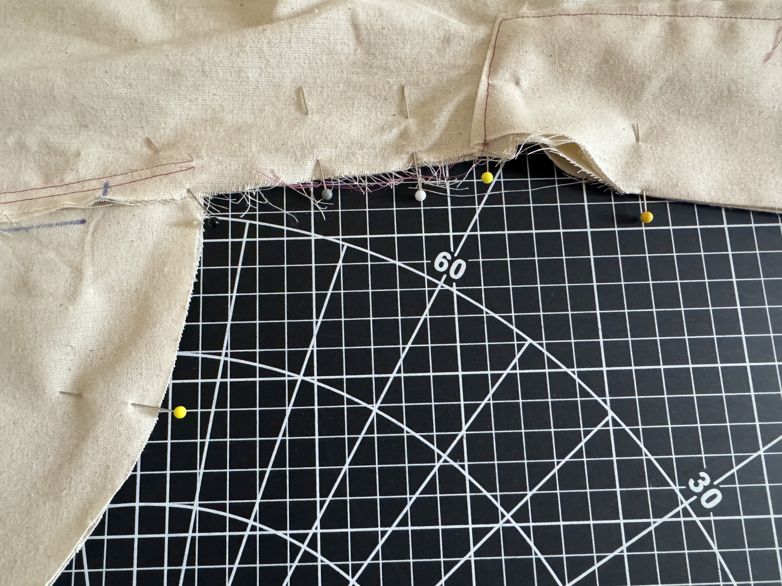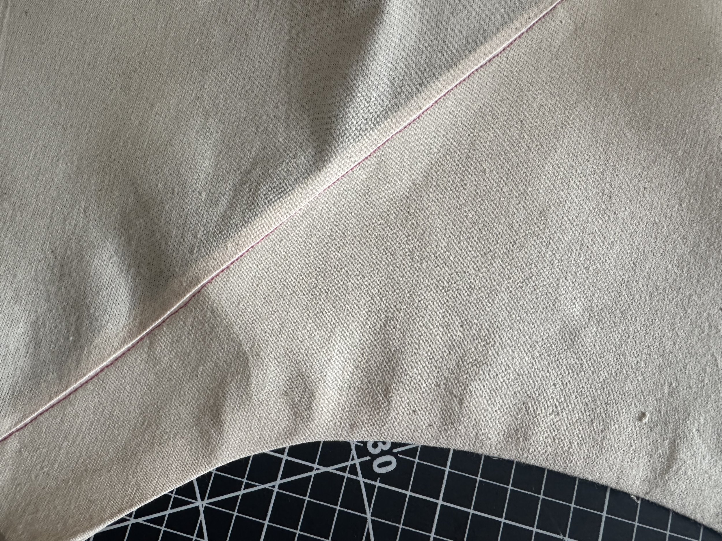 I’m demonstrating on a starched medium weight muslin. I would suggest a light to medium weight fabric for a beginner, as the area where the sleeves intercept with the side seams can be thick and become a little more difficult to sew.