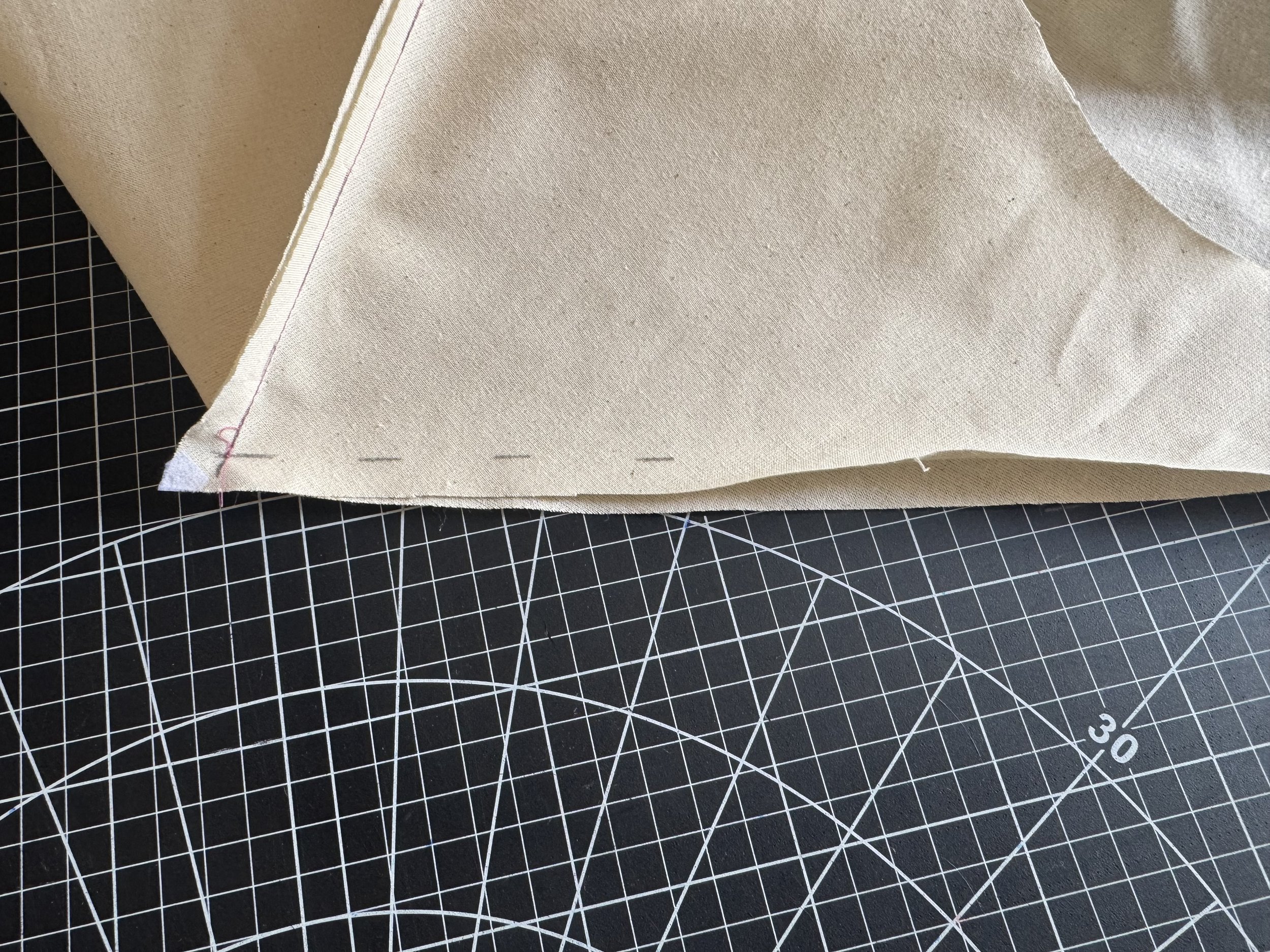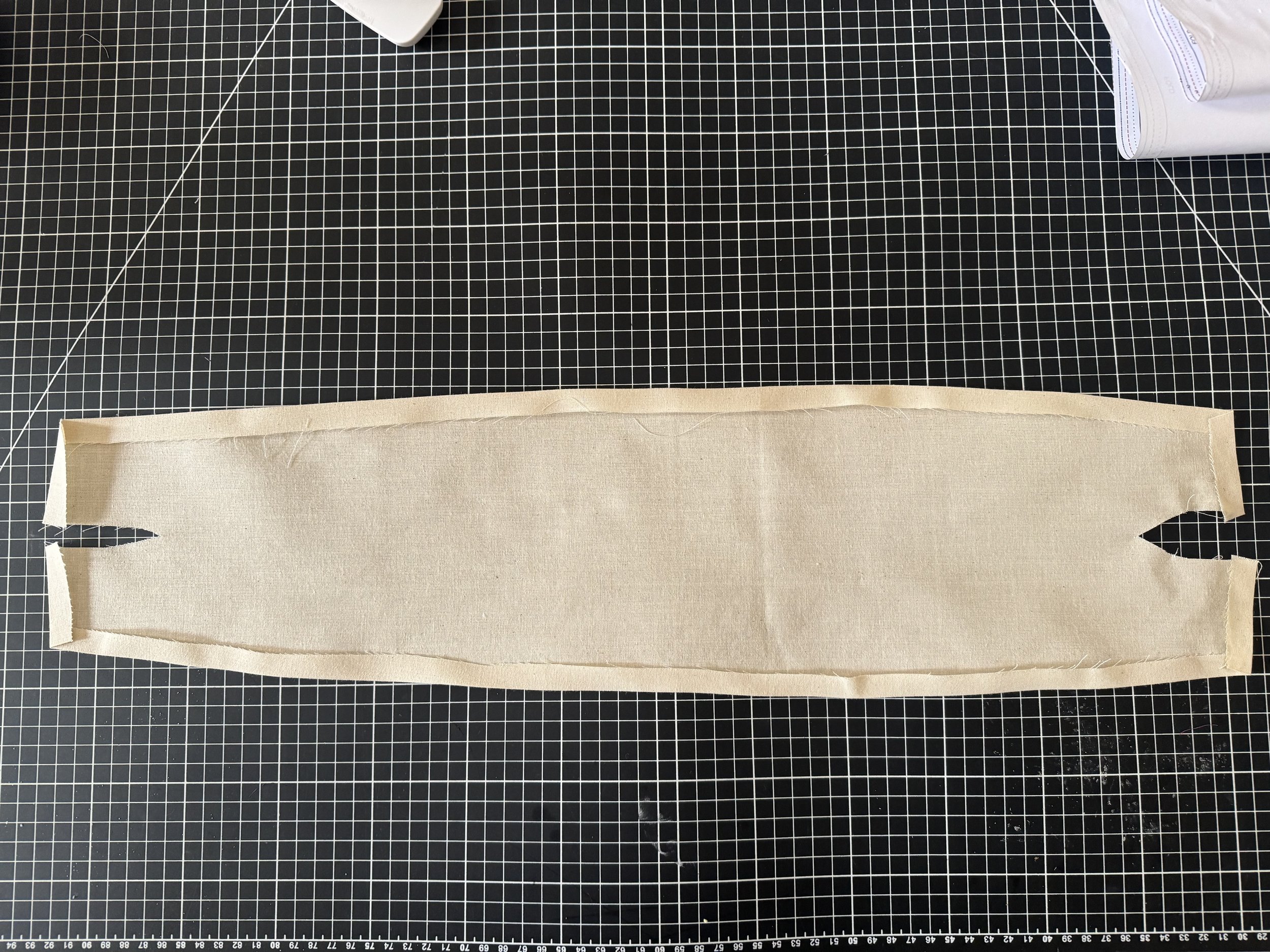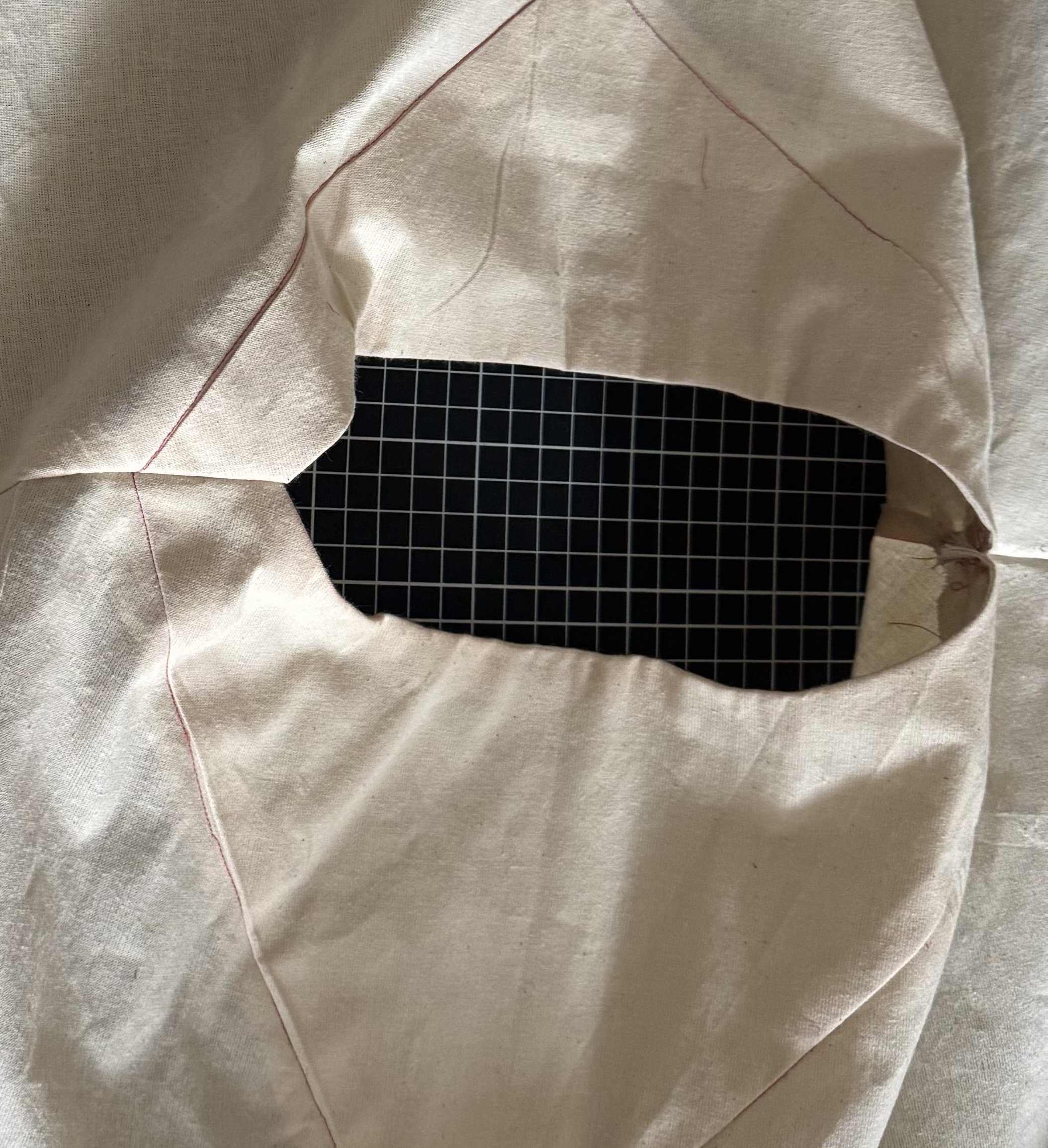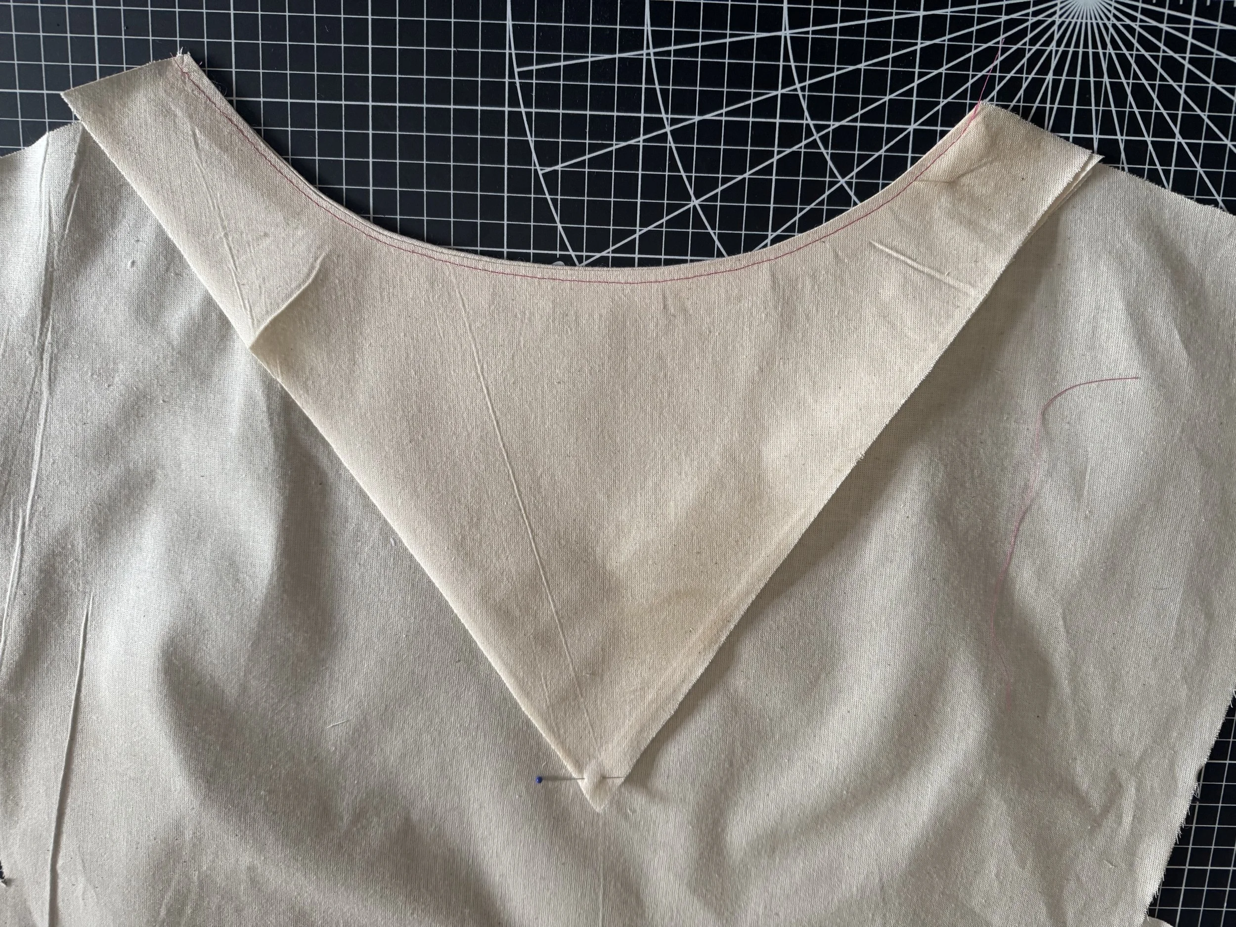 I’m demonstrating on a starched medium weight muslin. I would suggest a light to medium weight fabric for a beginner, as the area where the sleeves intercept with the side seams can be thick and become a little more difficult to sew.