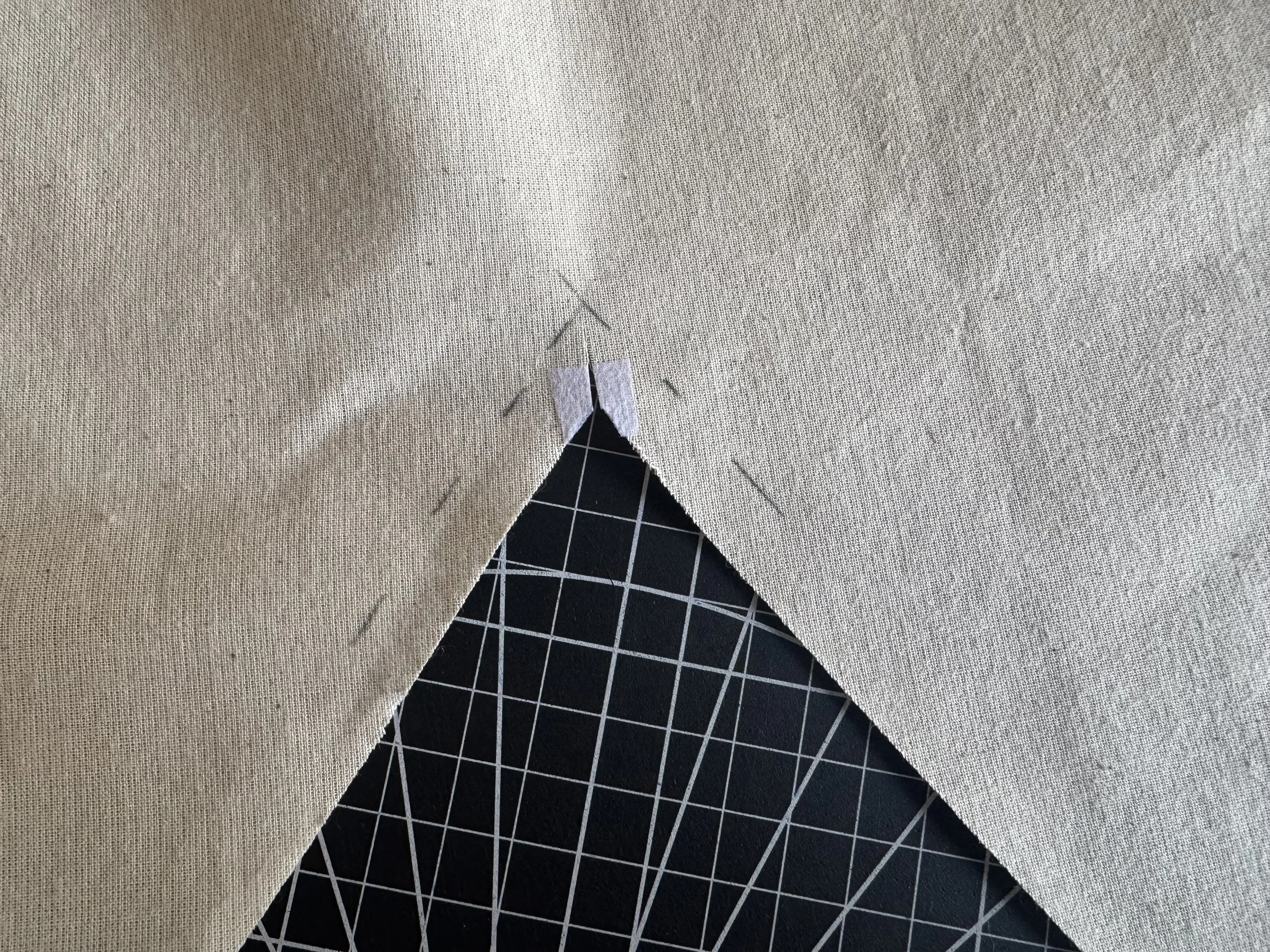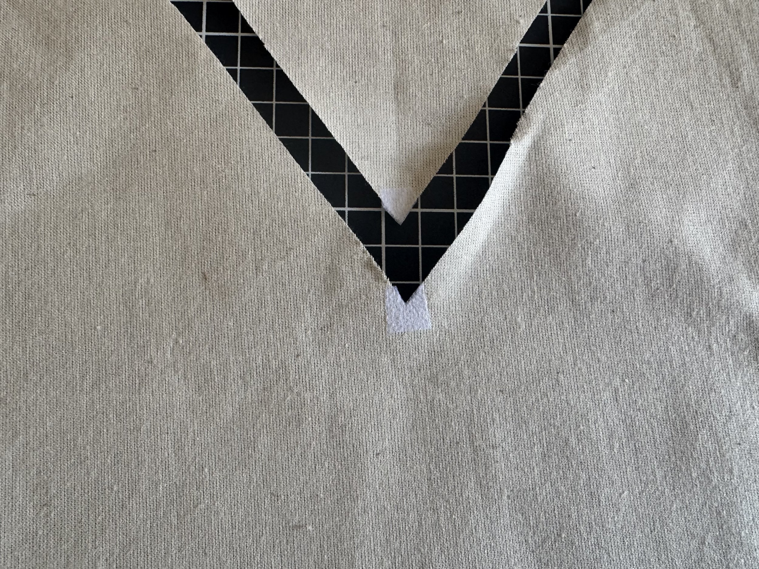 Begin by adding a tiny piece of interfacing to the point on the front and front yoke wrong side, keeping it within the seam line.