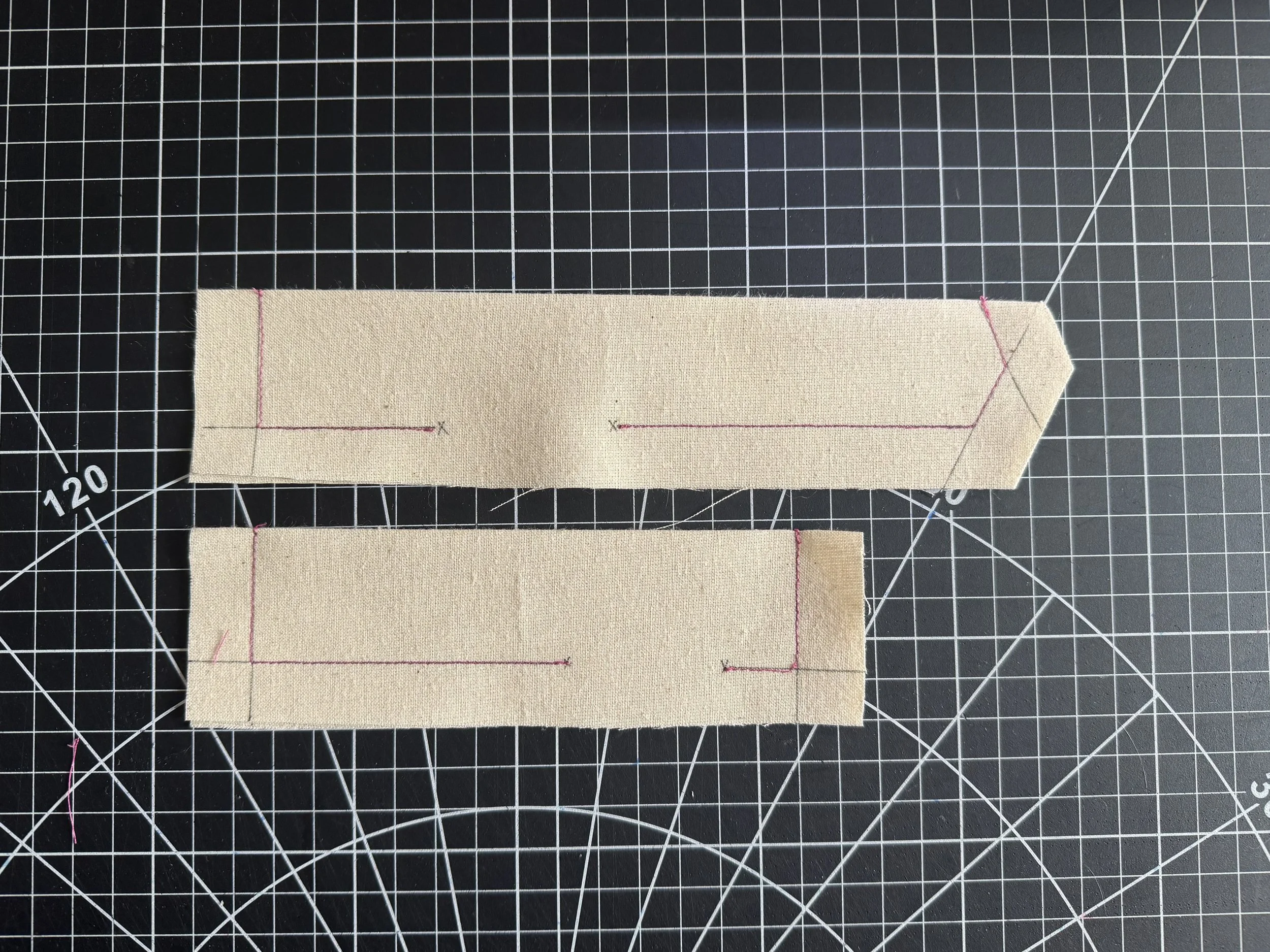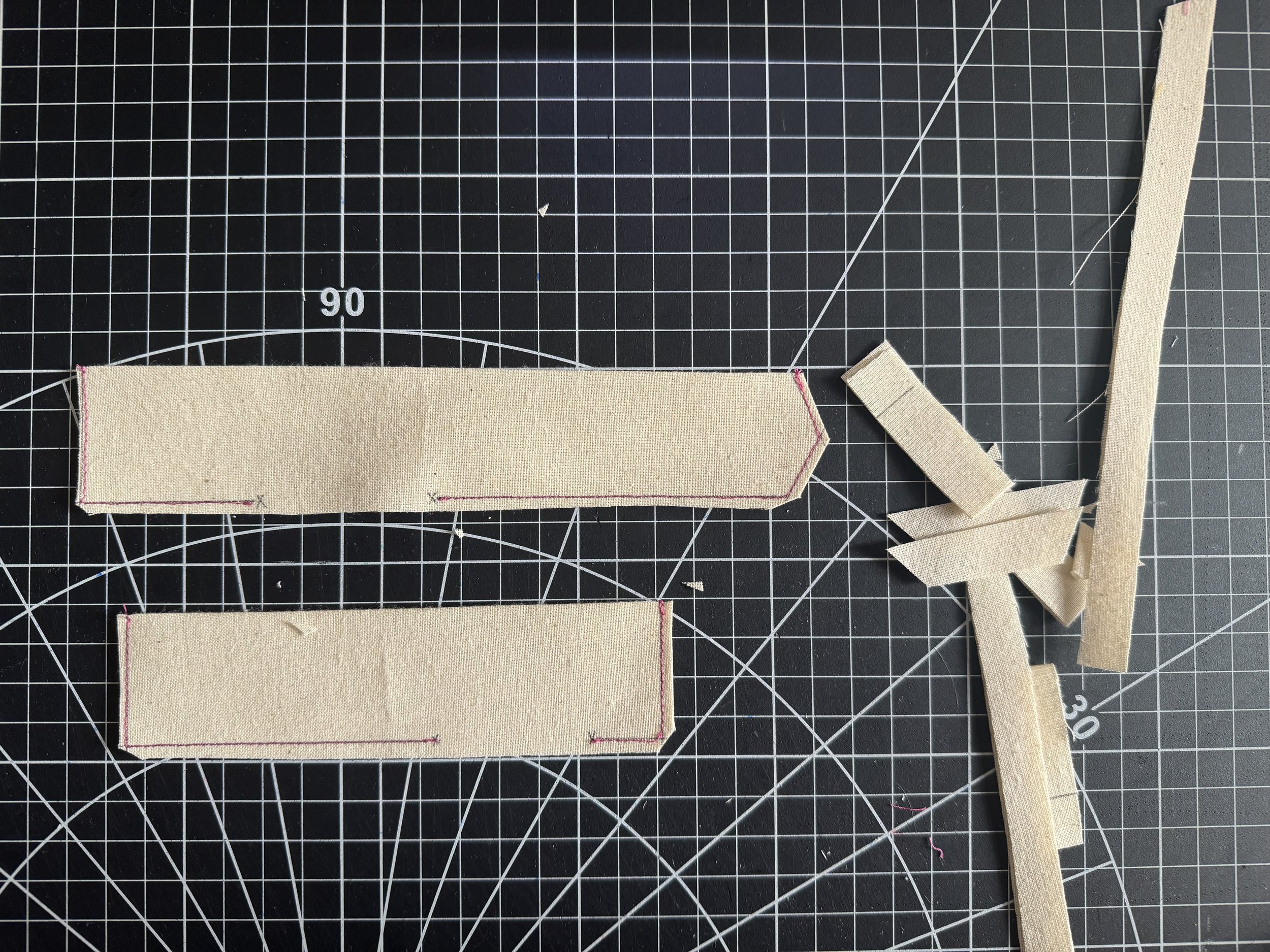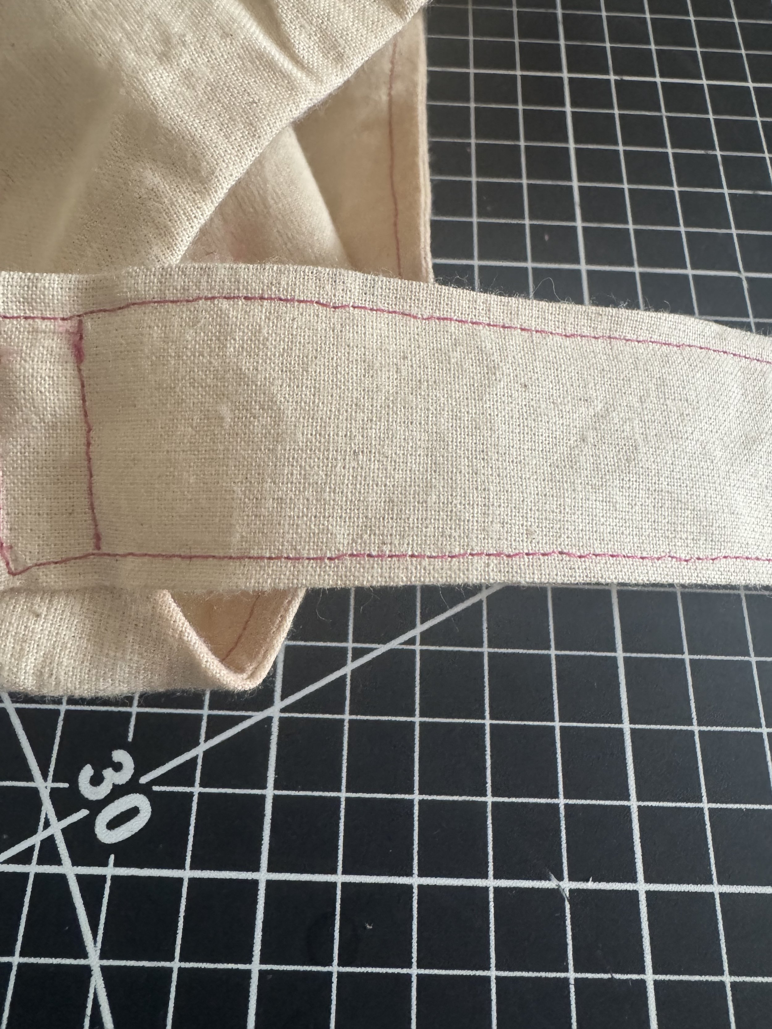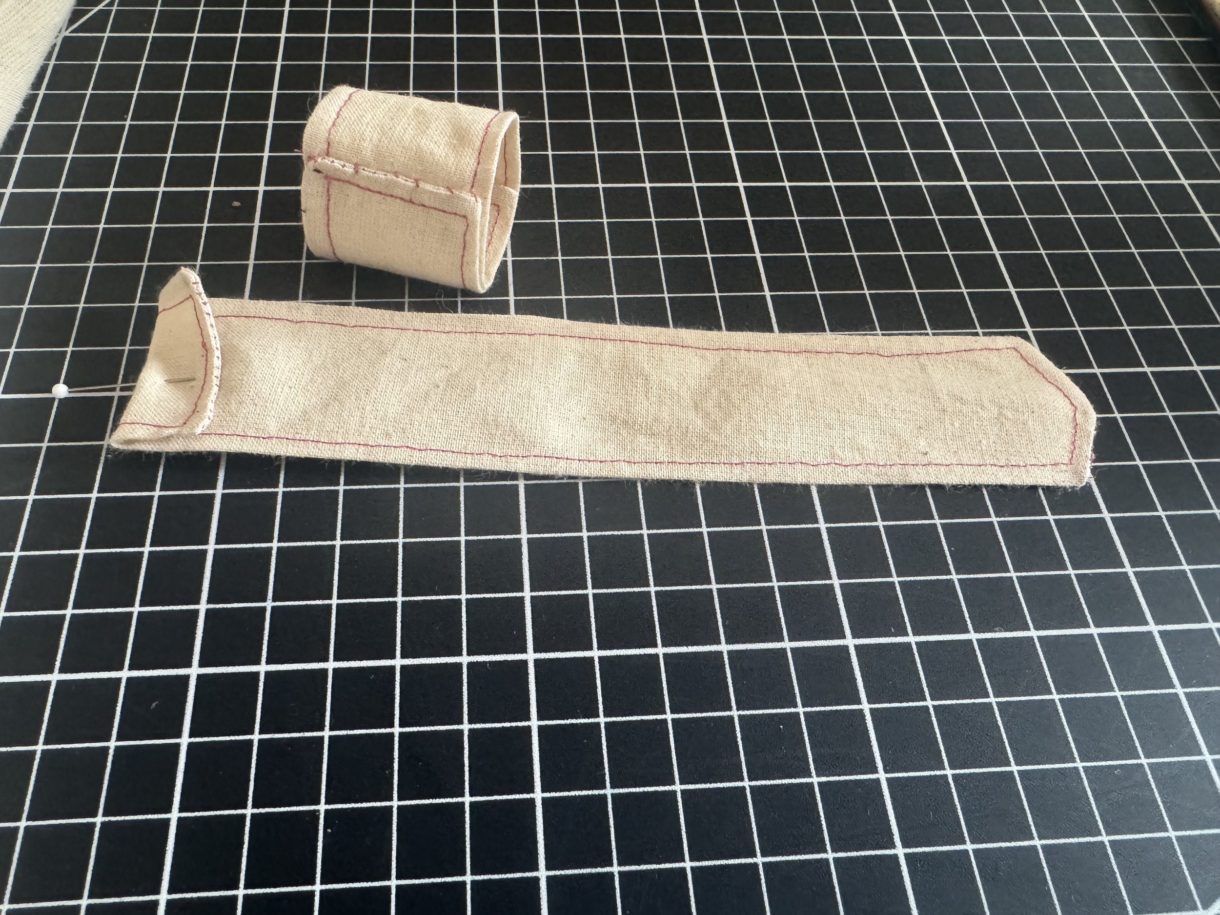 Stitch close to the edge, and flip the strap towards the sleeve.