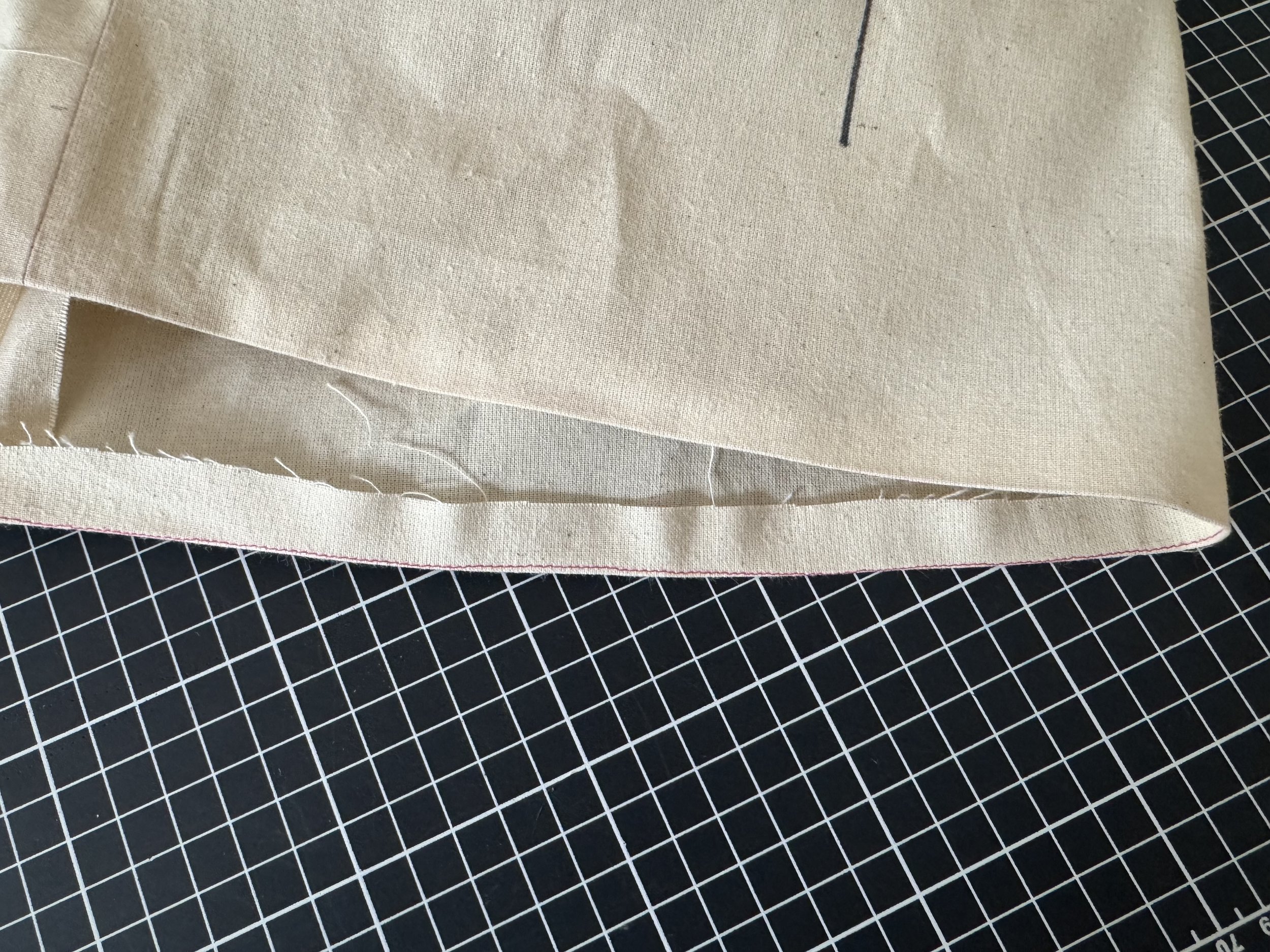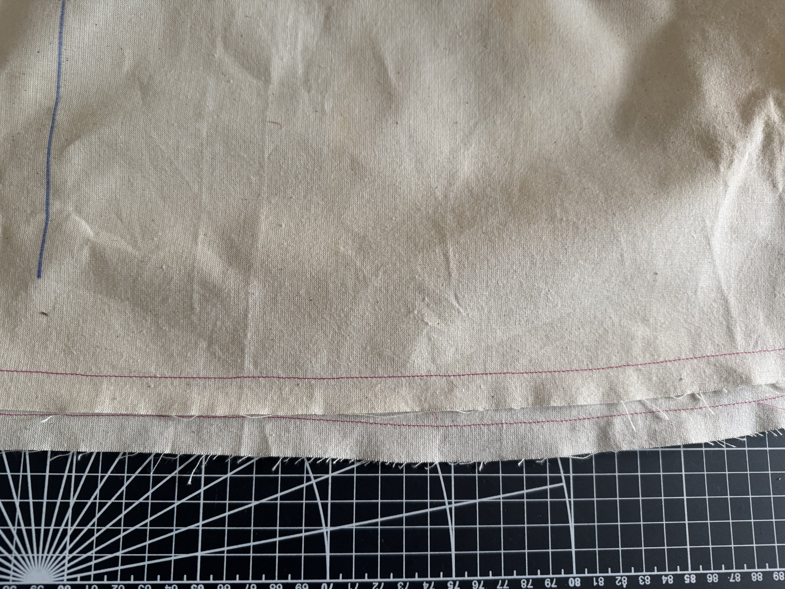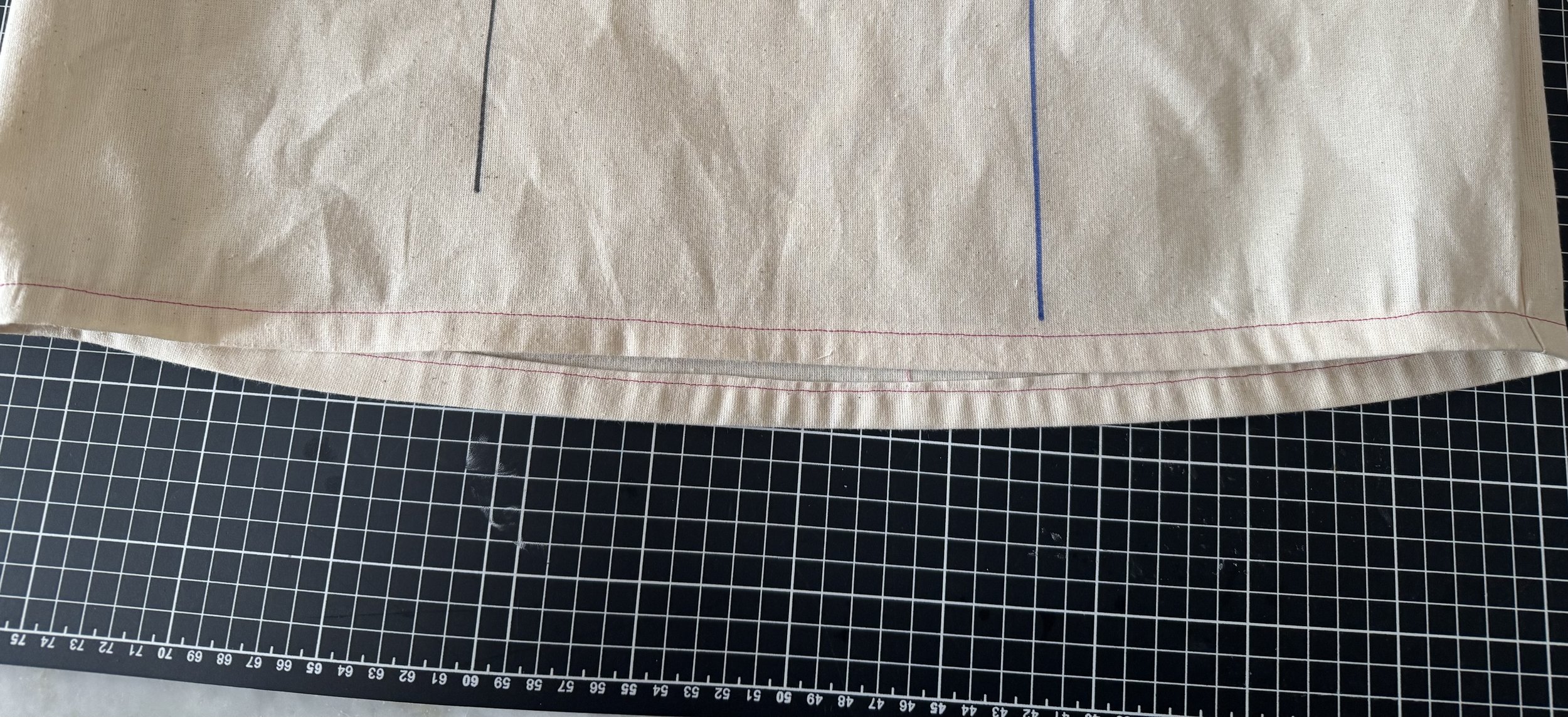 To finish your hem, sew a stitch around the hemline at 5/8”