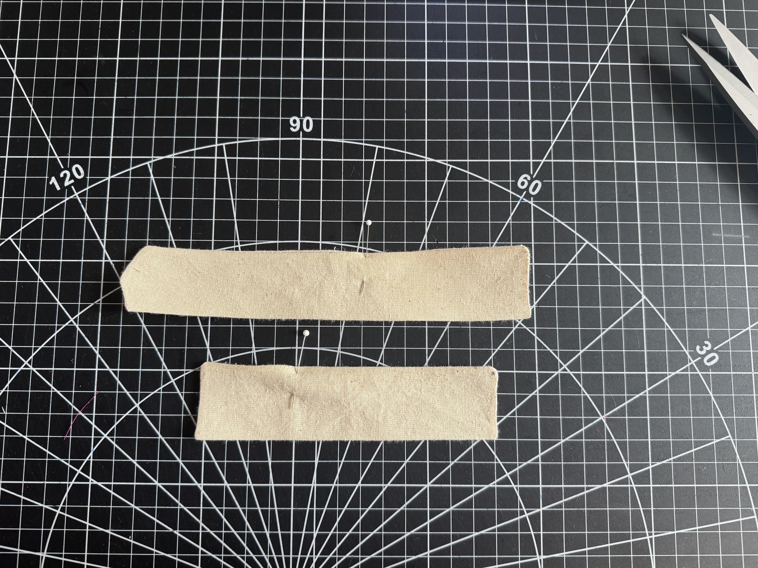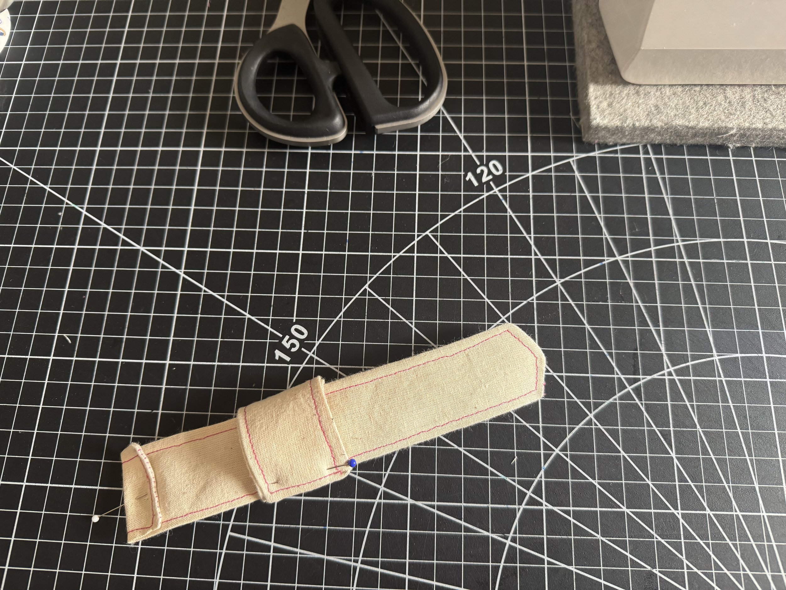 Fold your tab over your strap until it’s the same width, pin.