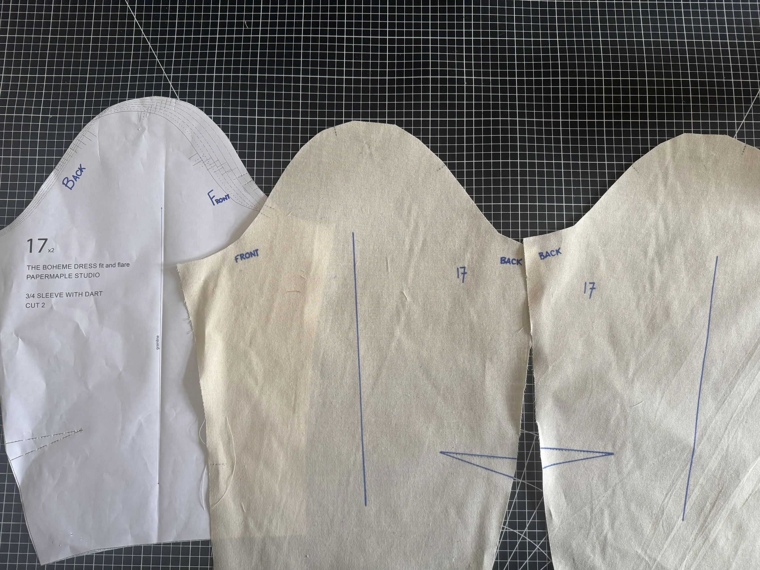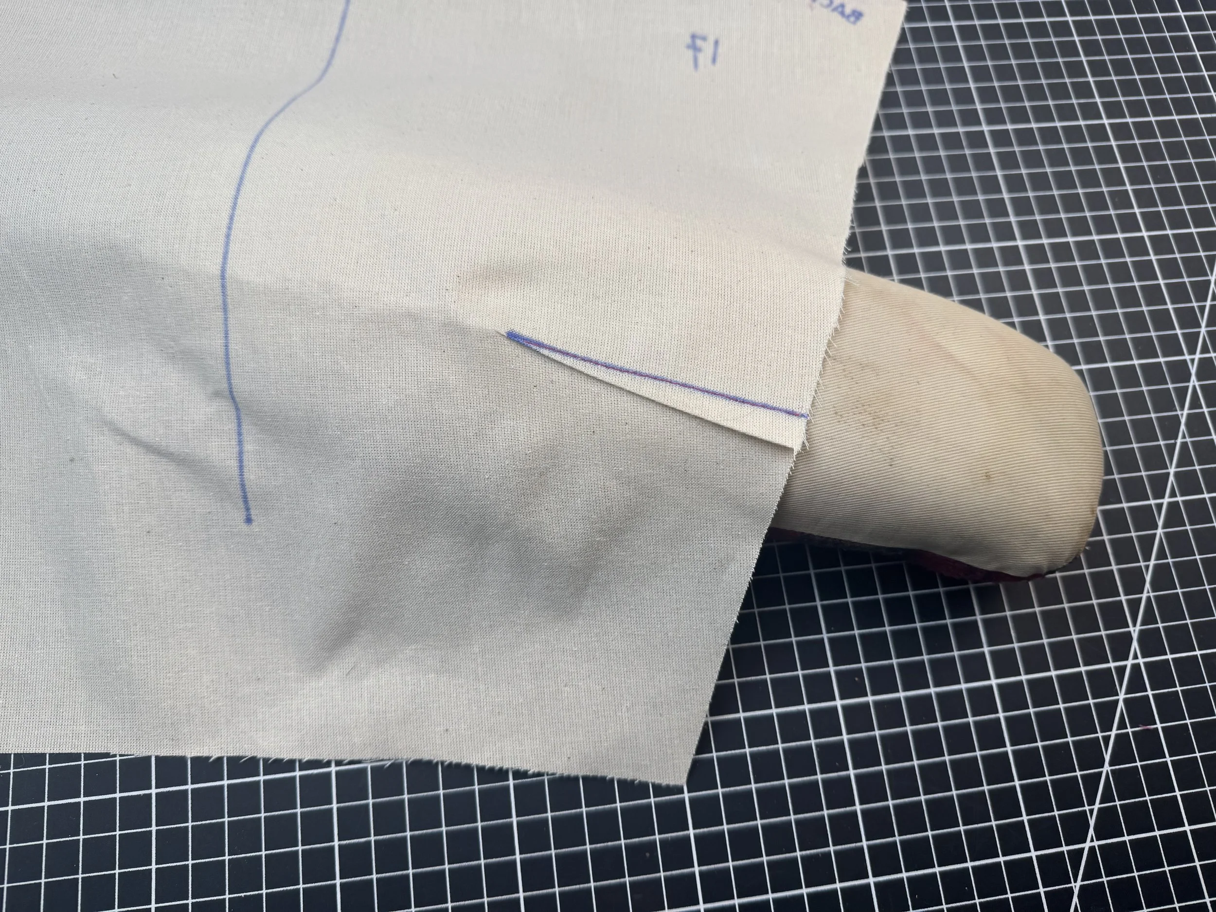 Sew the dart, reducing the stitch to 1.6 as you reach the point. Tie of the threads.