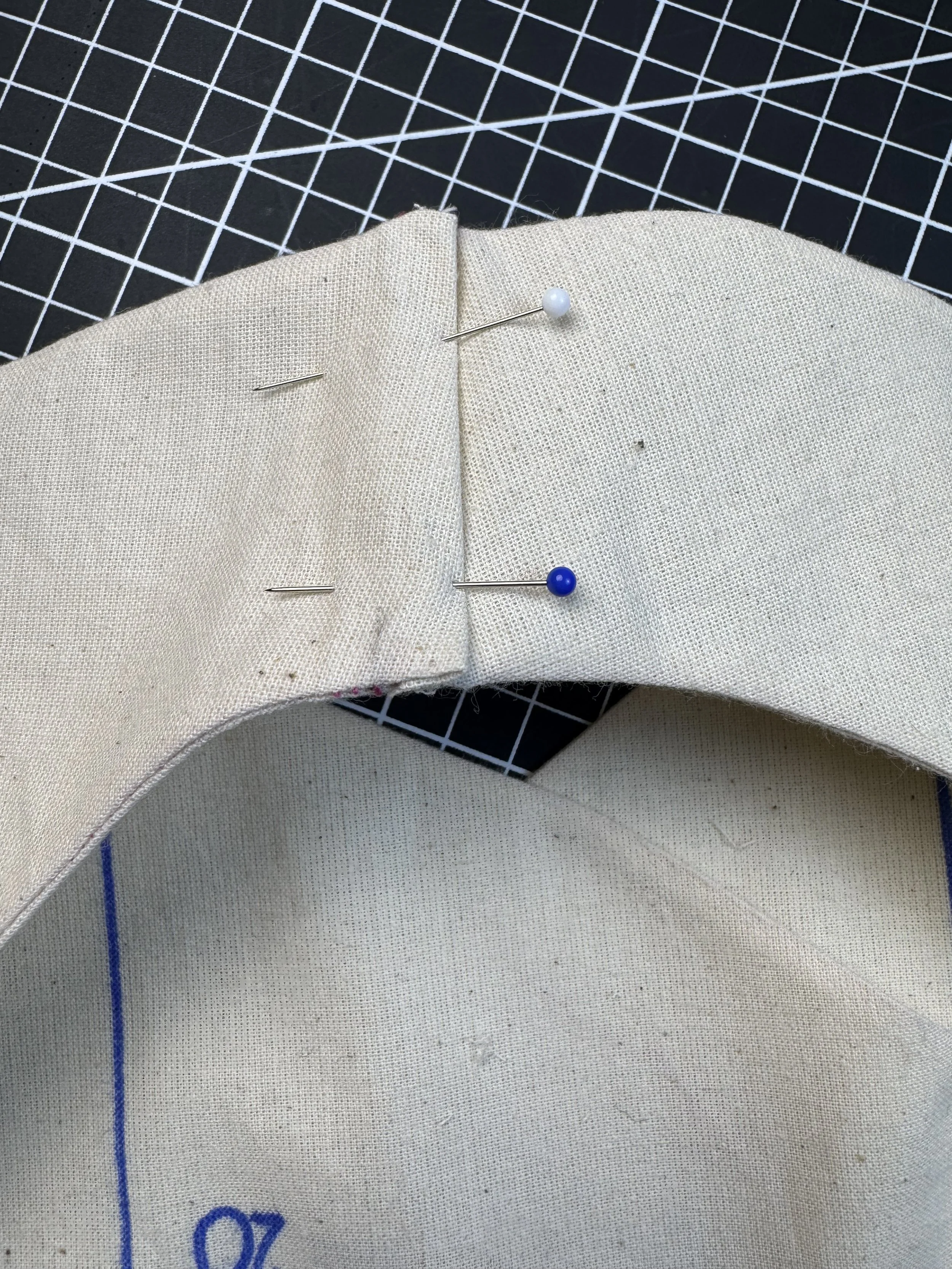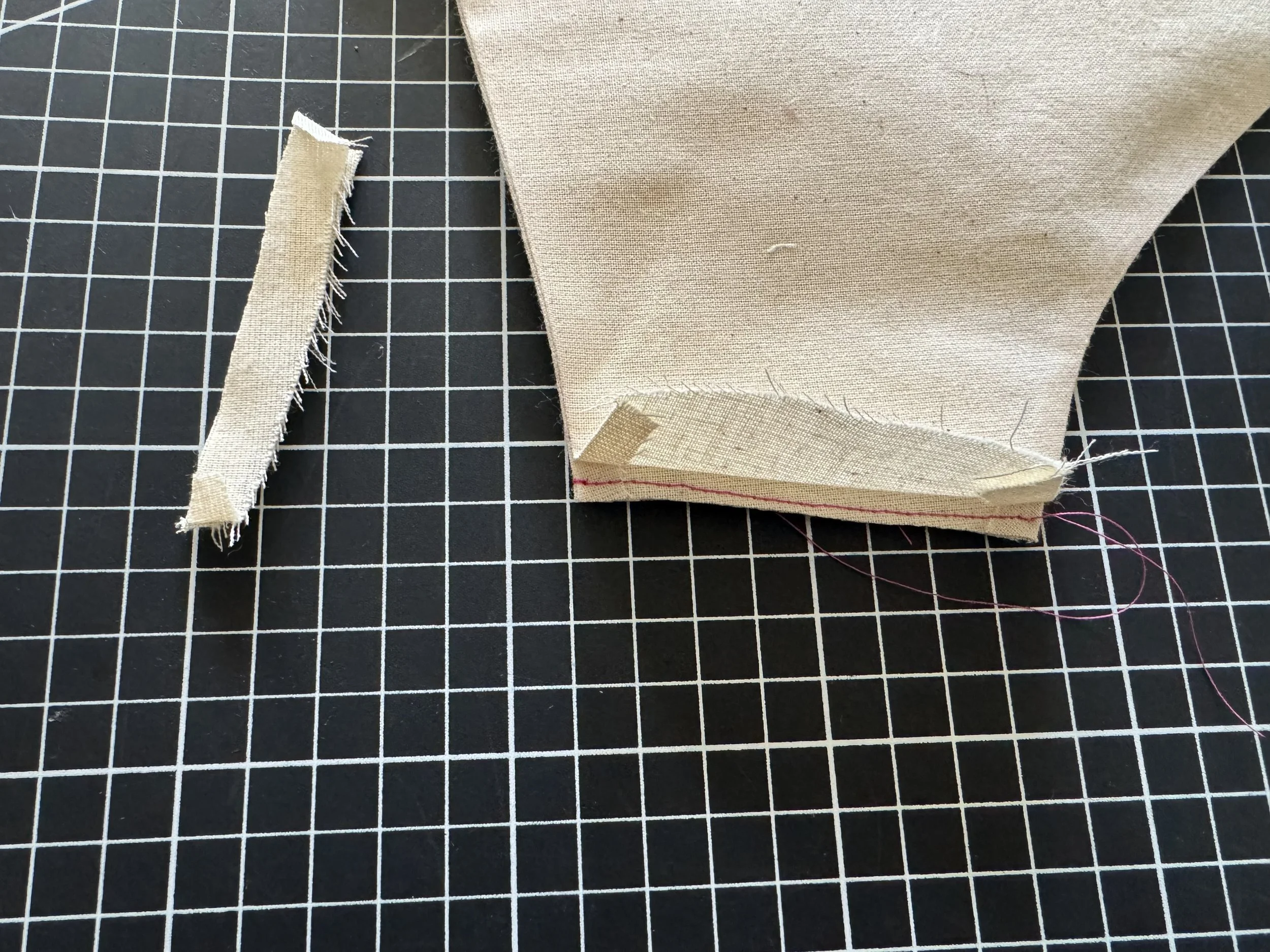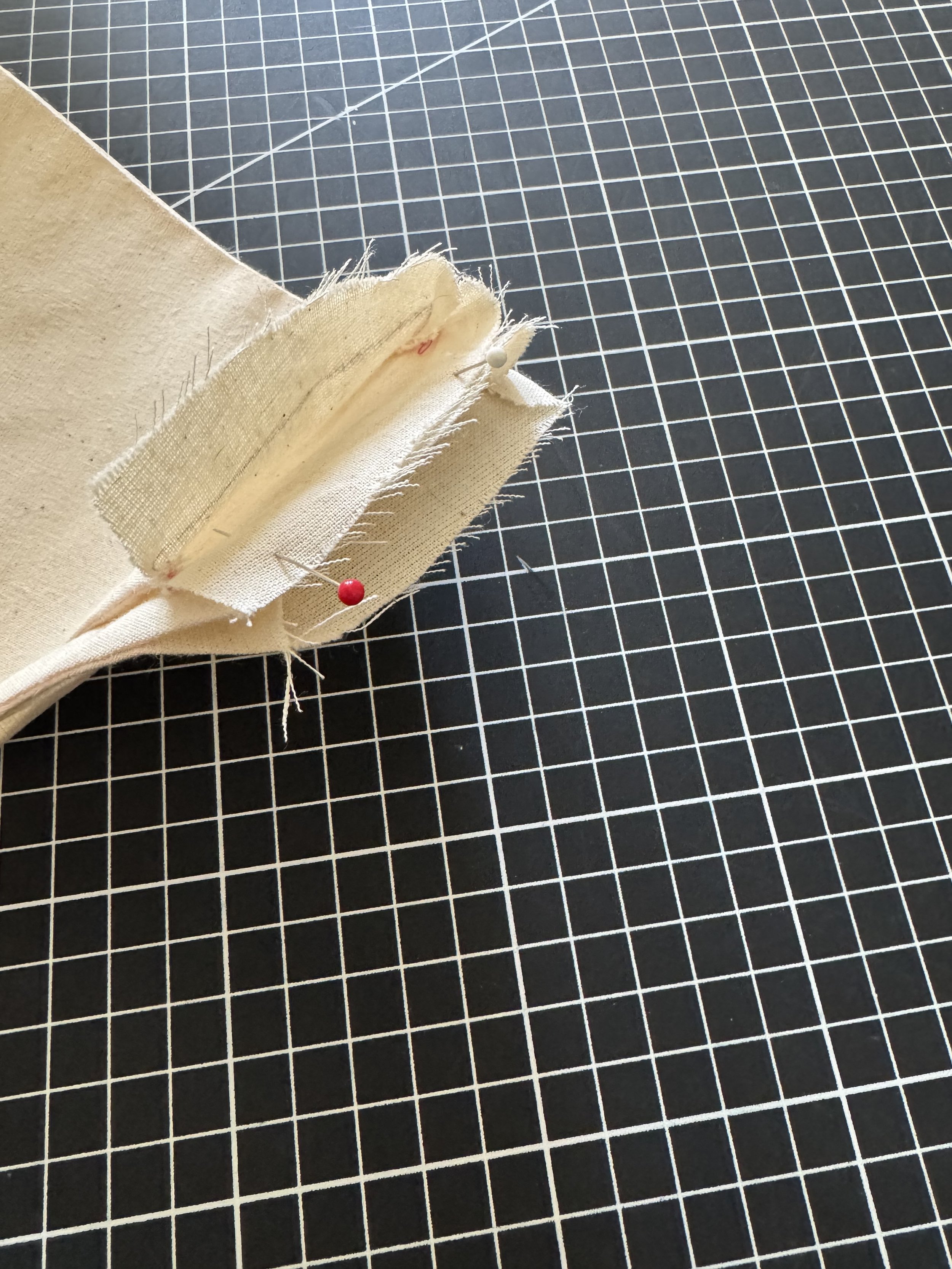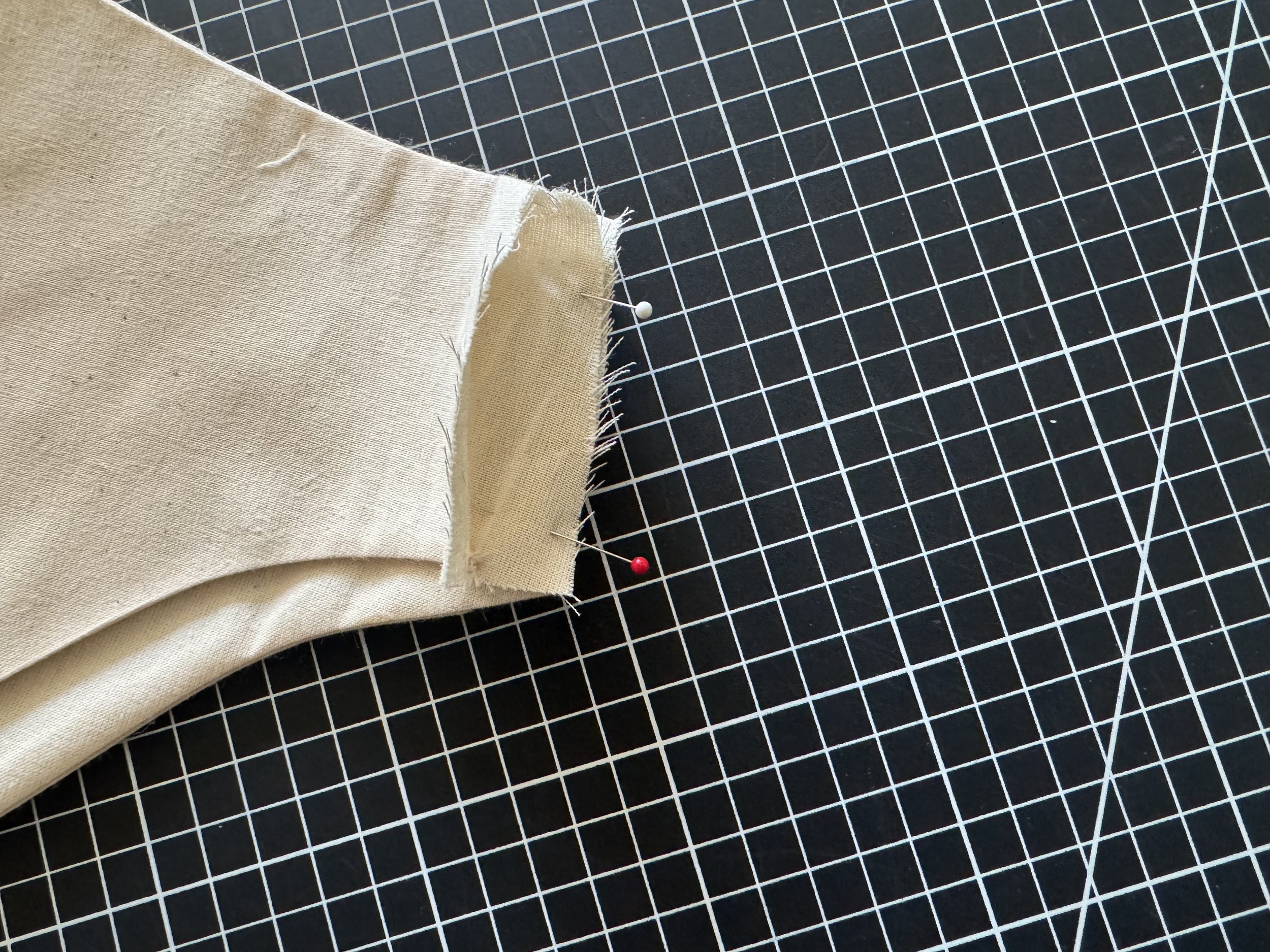 Fold the top seam over itself to enclose the raw edge and pin. Repeat for the underside.