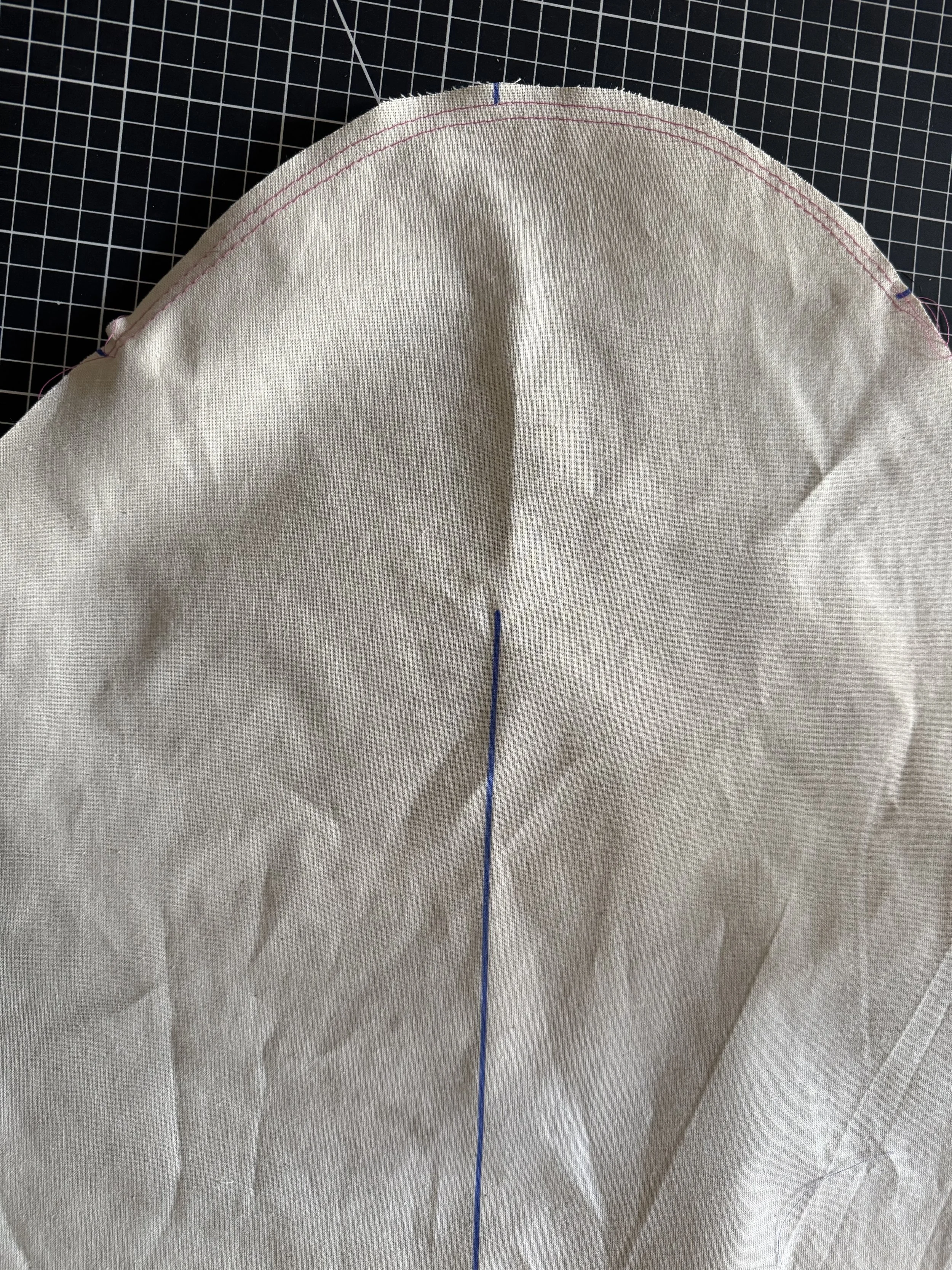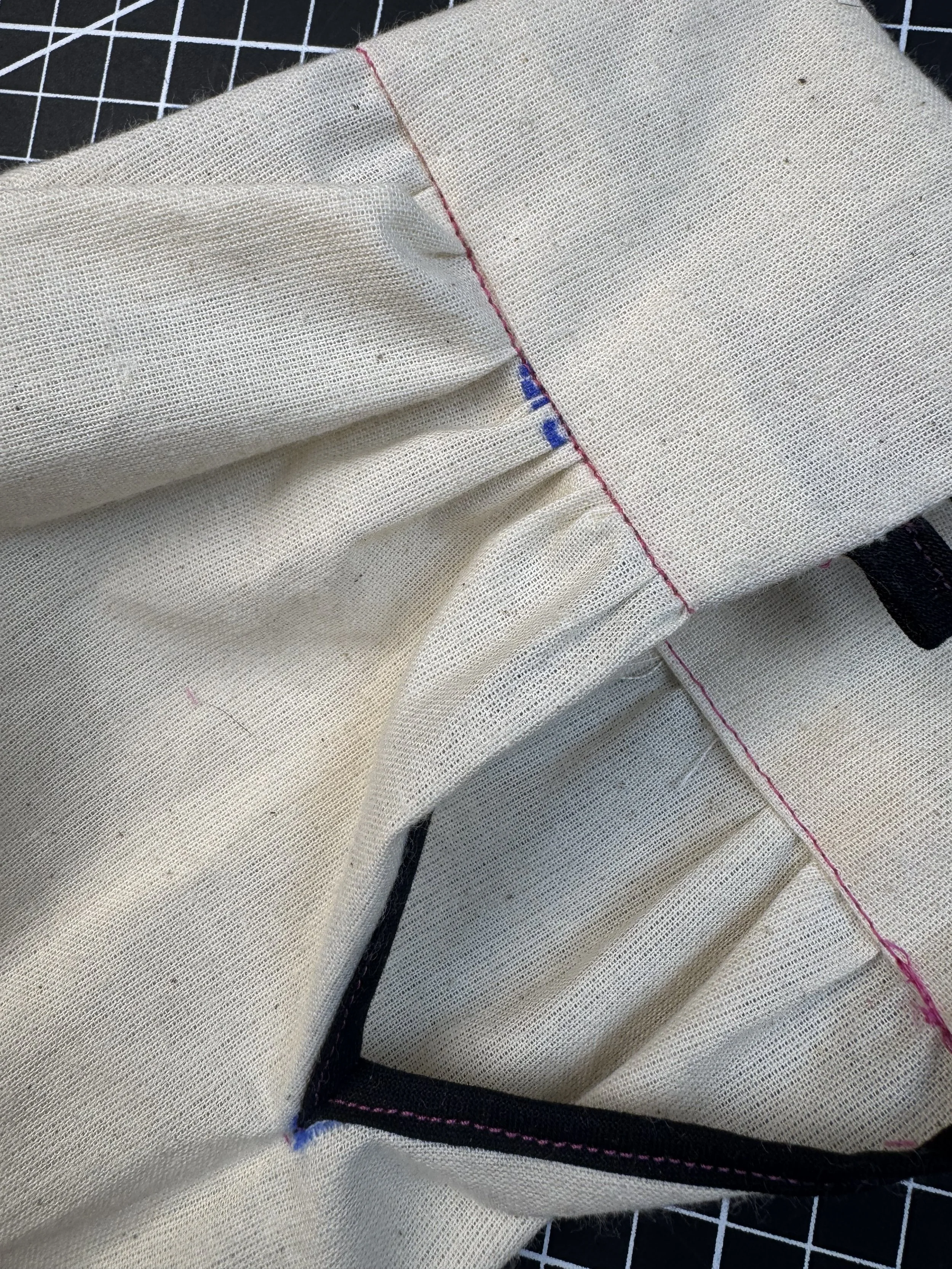 Run two lines of gathering stitches inside the seam allowance along the top of the sleeve between the notches.