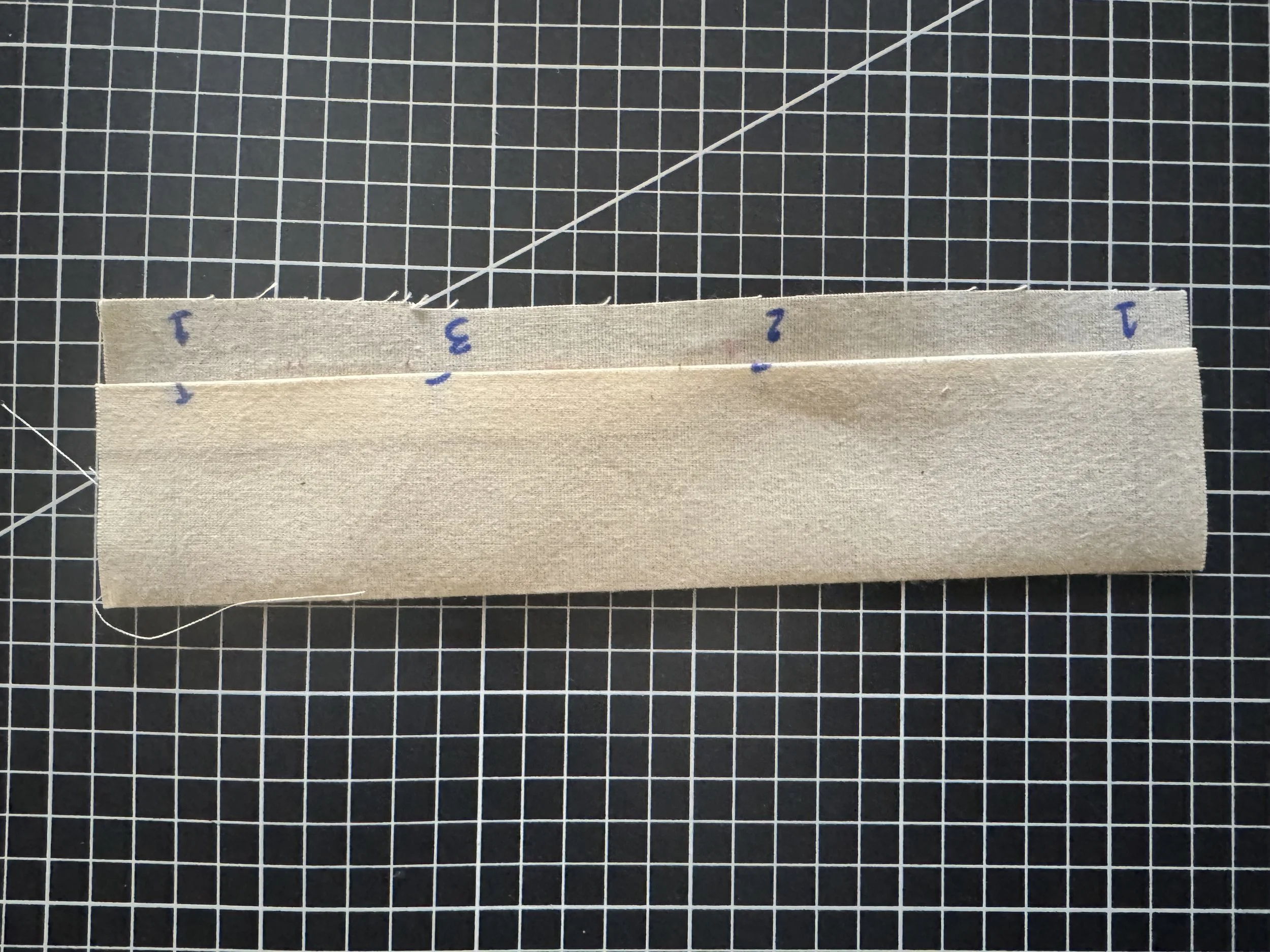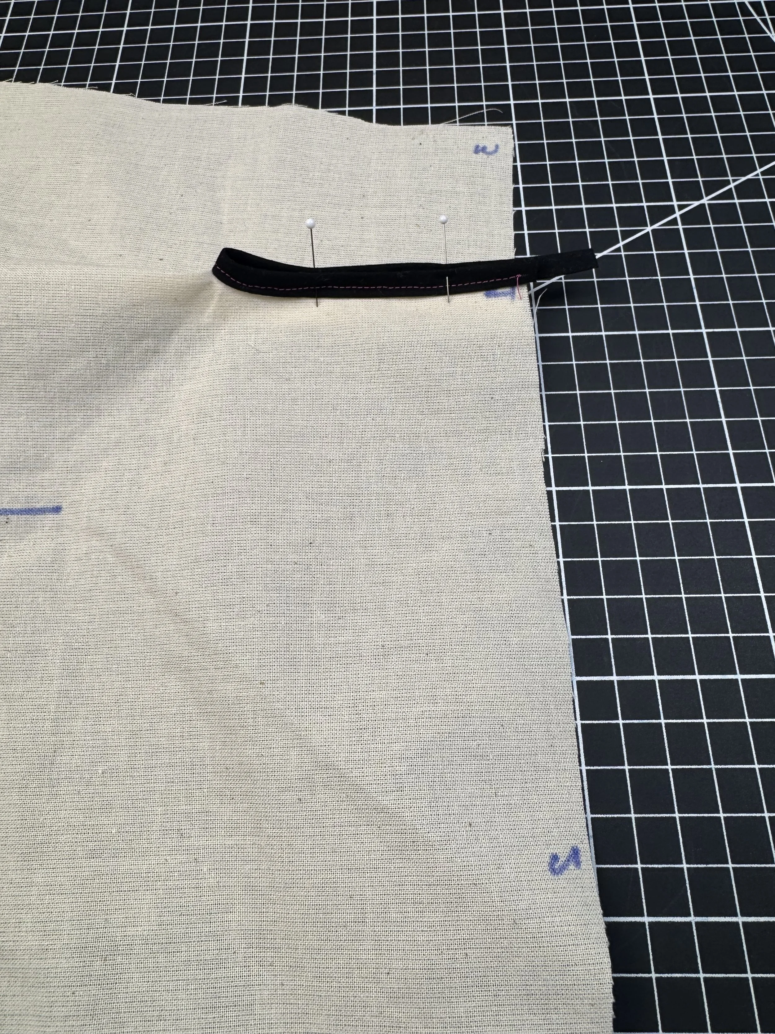 Turn your sleeve so the wrong side is facing up, and pin the two bias strips together.
