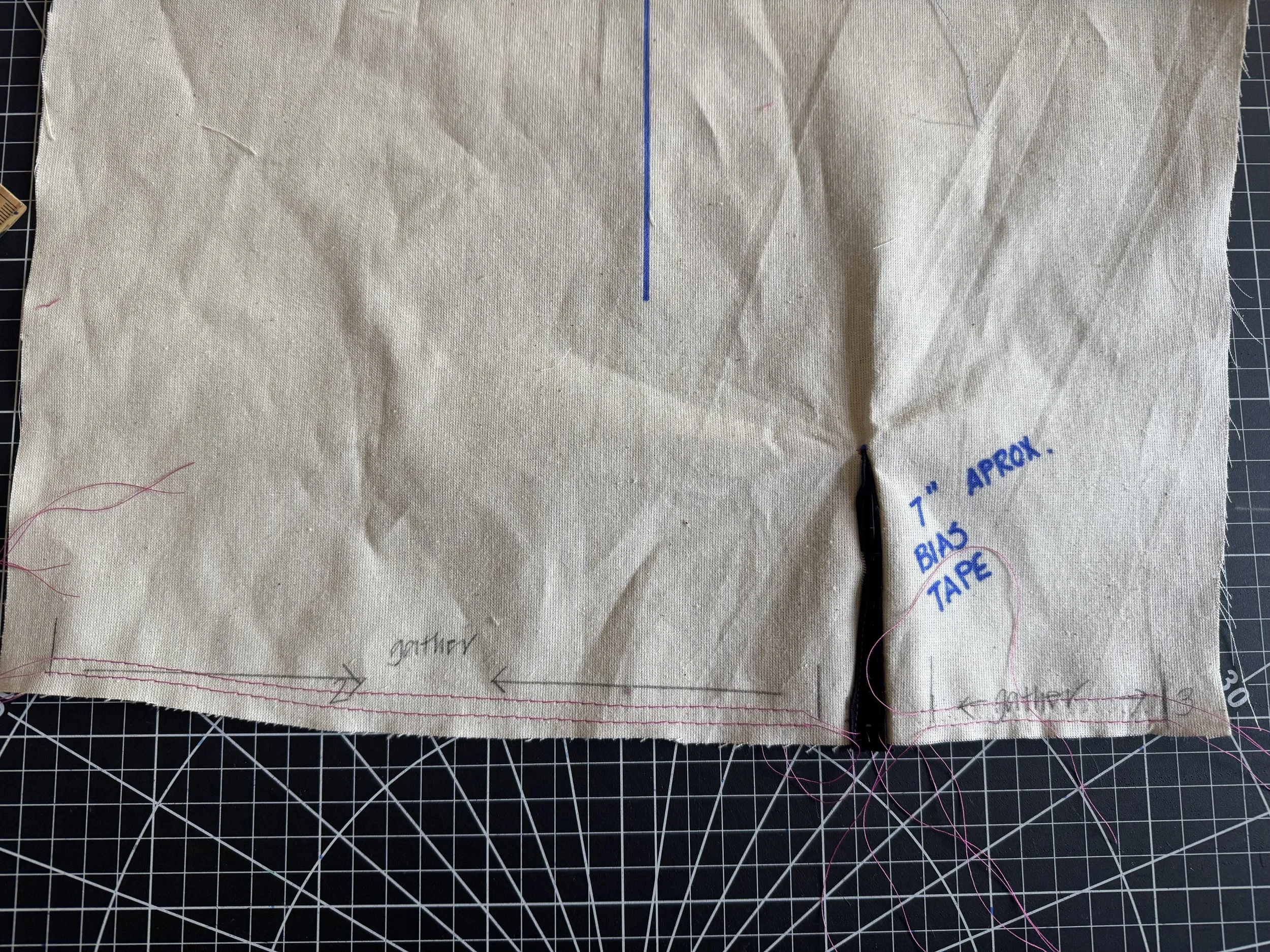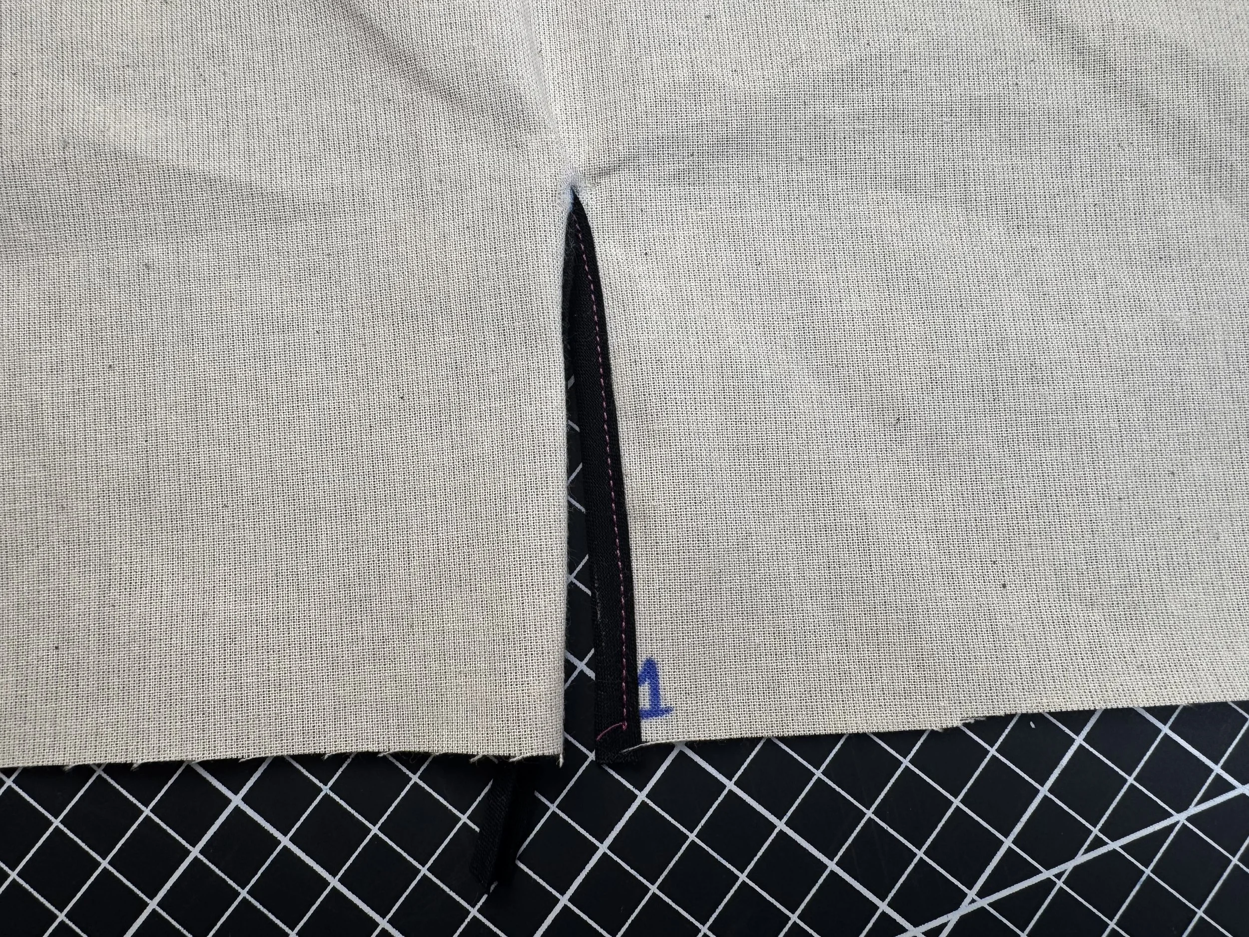 Run two lines of gathering stitches in the seam allowance on both sides of the slit between the seam allowance marks.