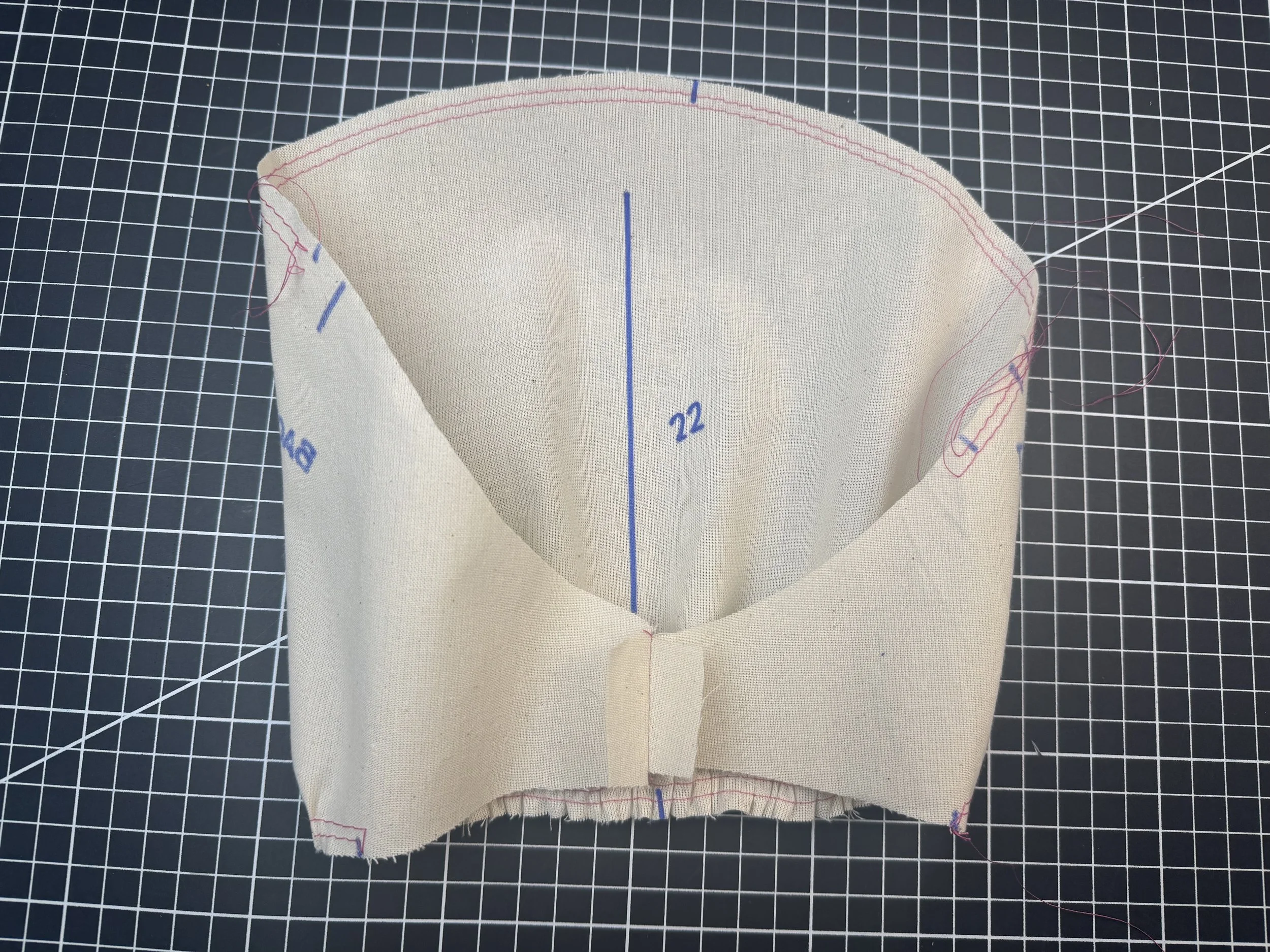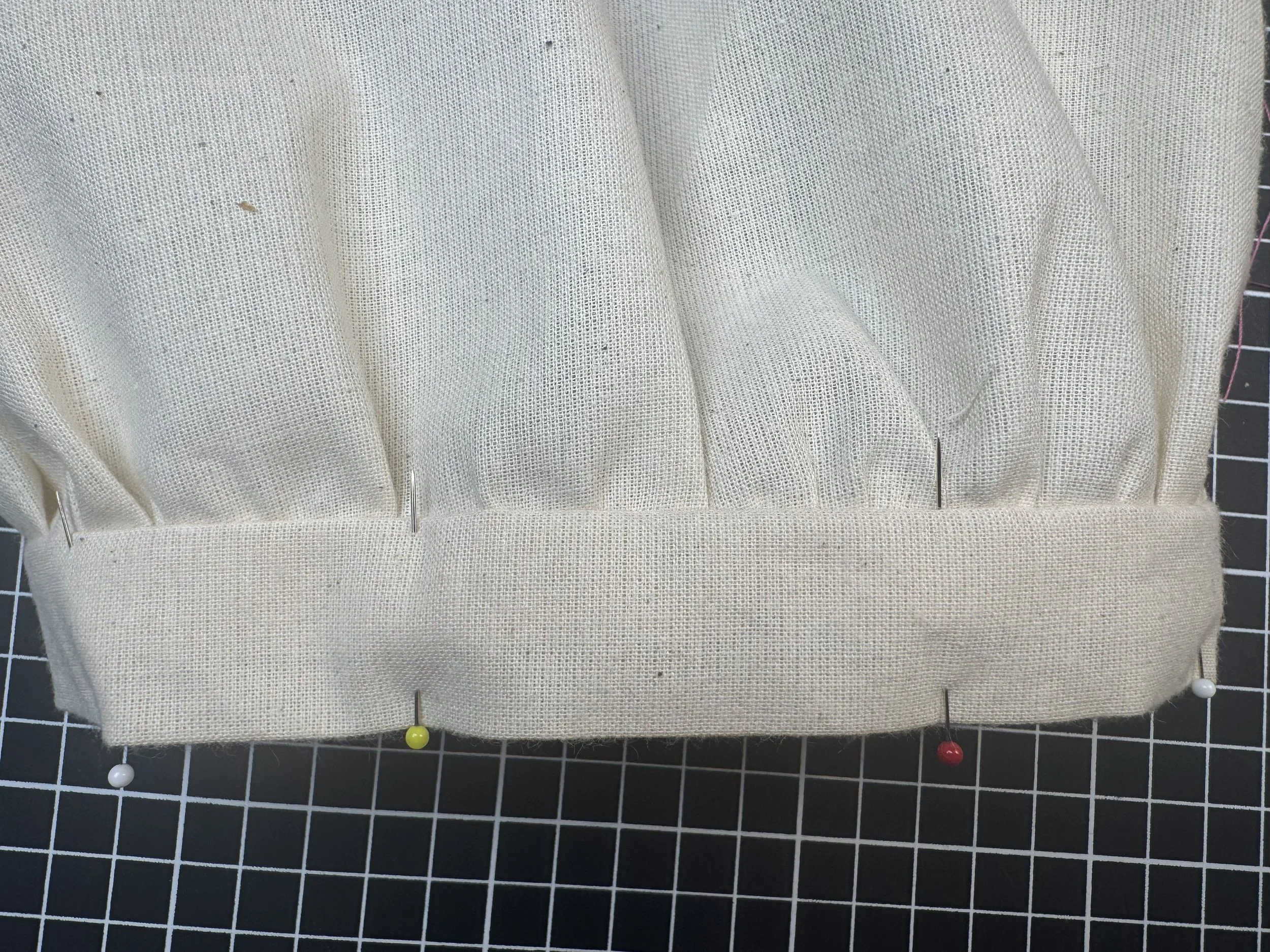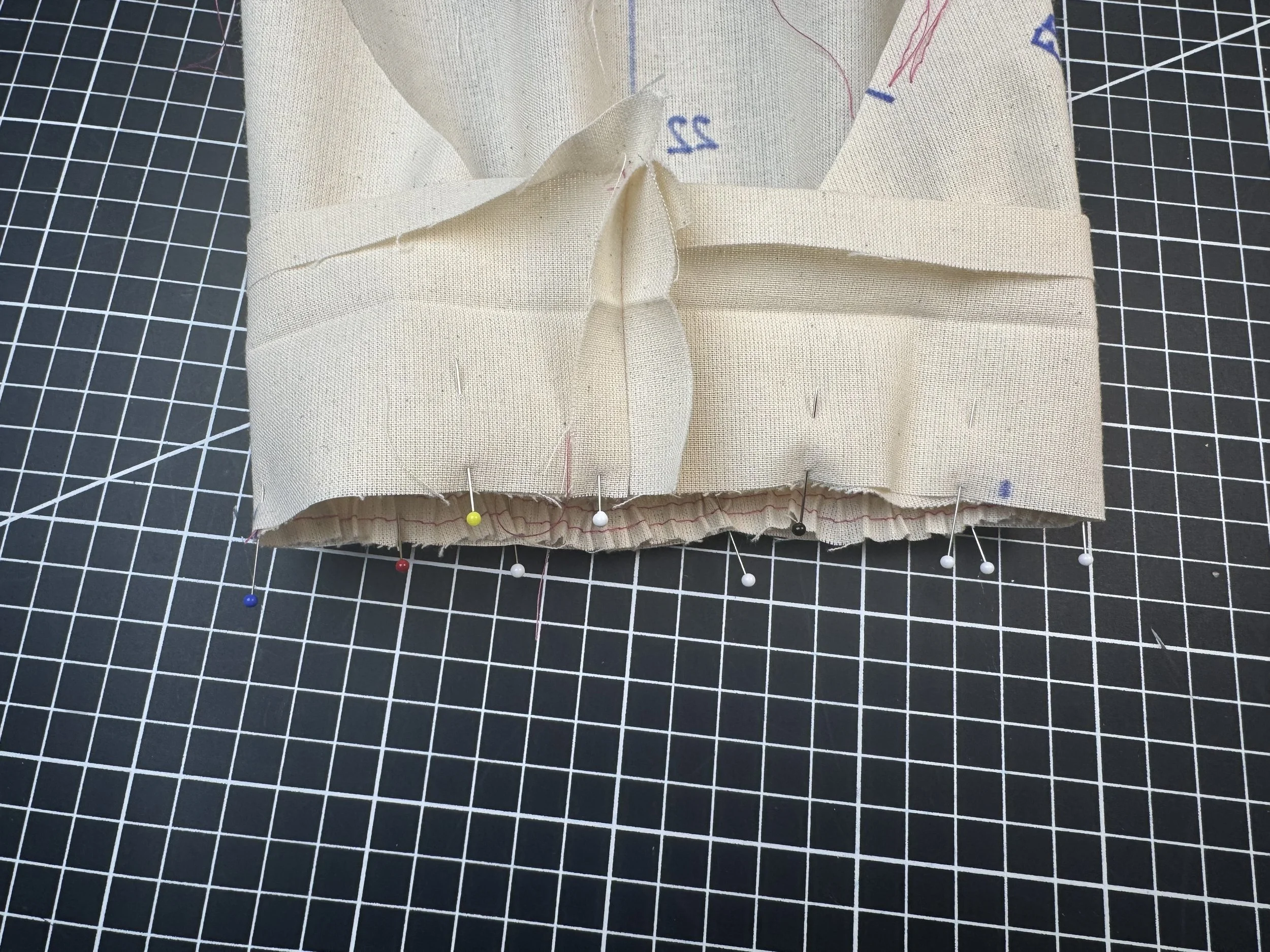 To begin, finish your edges by serging, before running two rows of gathering stitches between the notches on both the upper and lower portion of each pieces.