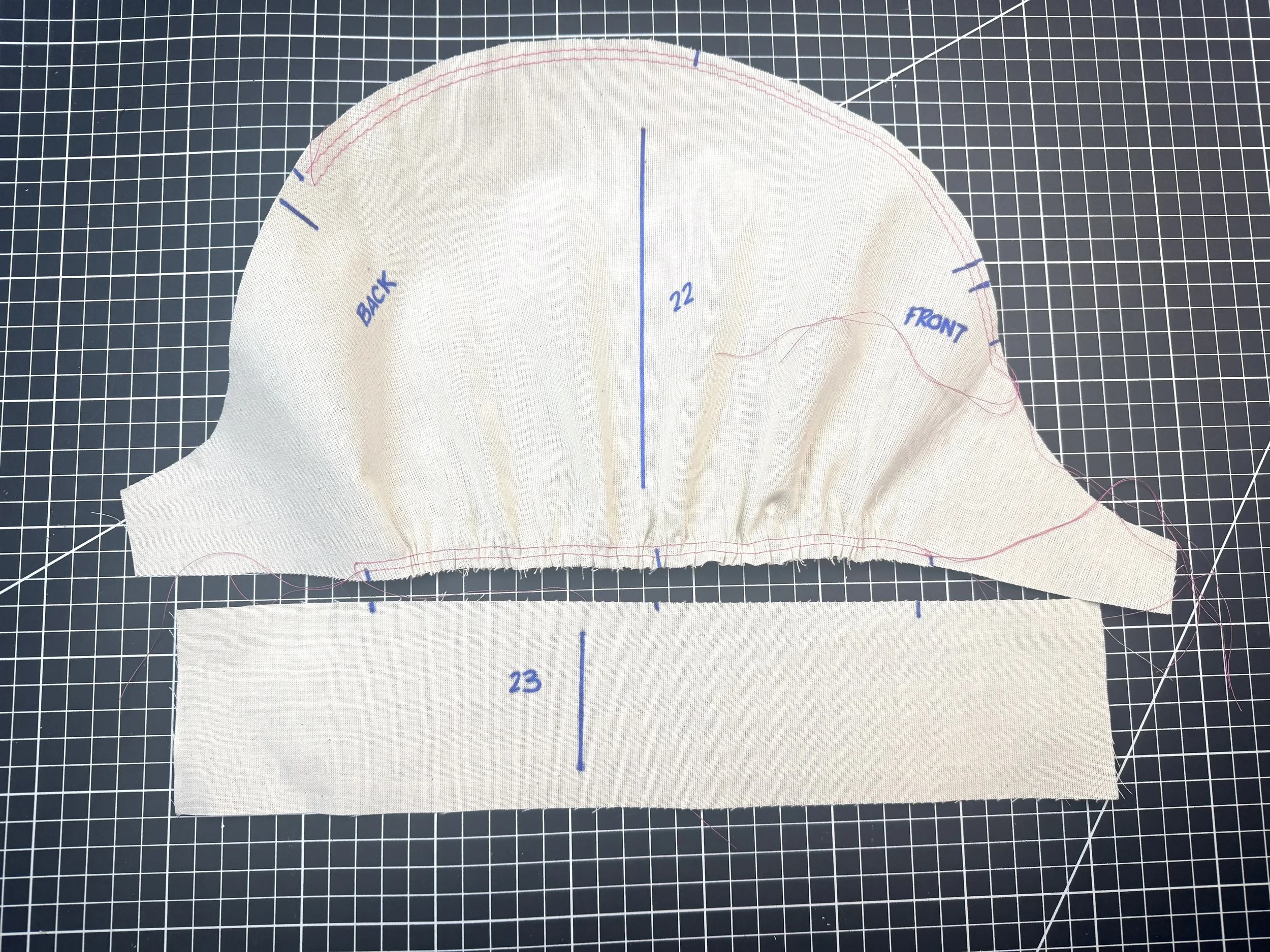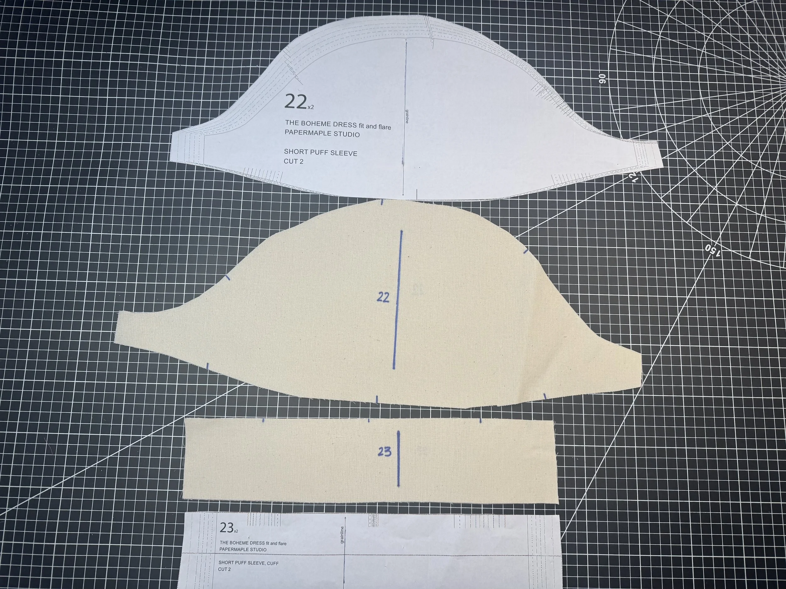 When joining the sleeve to the bodice, some gathering will be needed to match the armseye.
