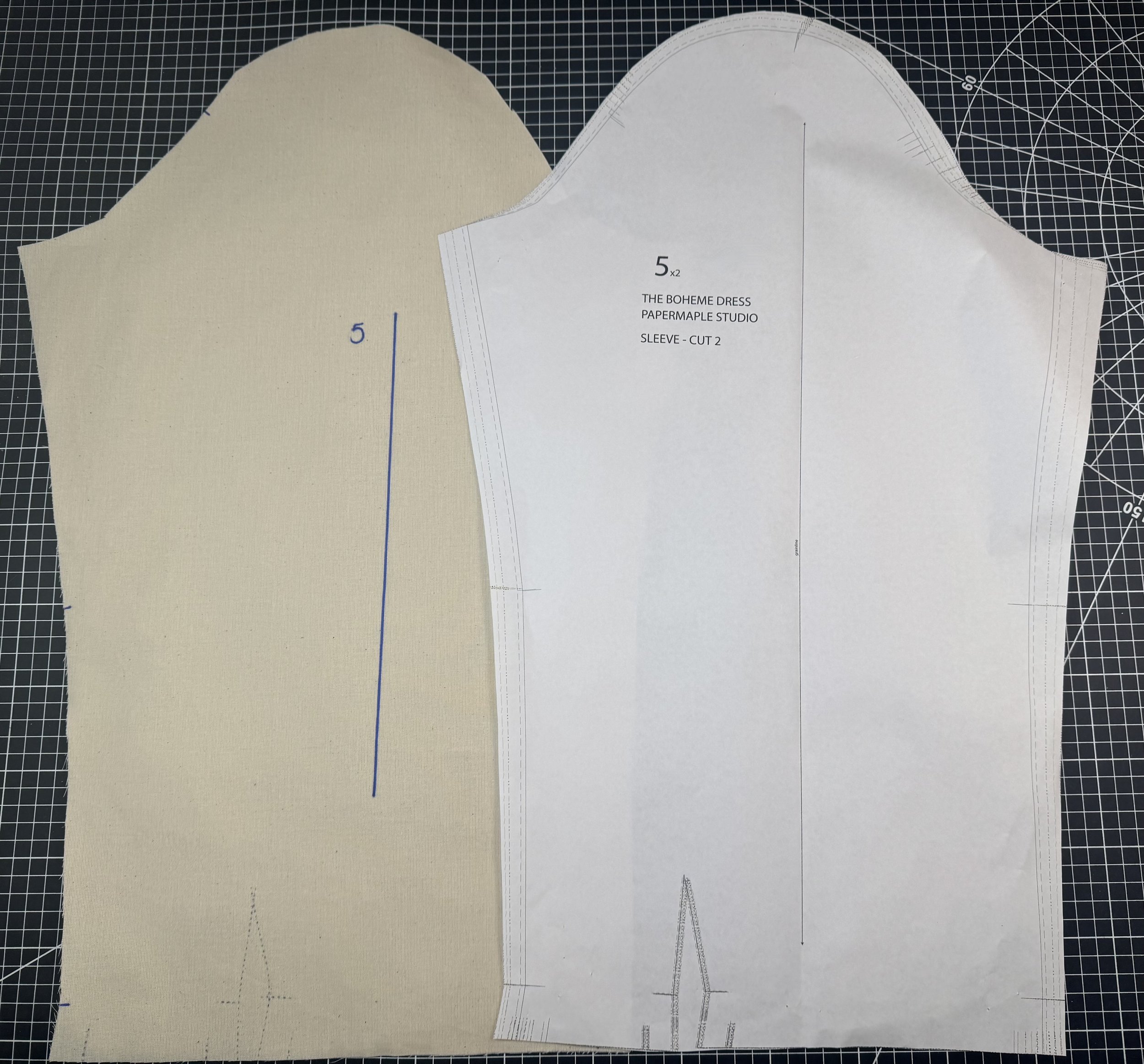 Sew the sleeve together using a 5/8โ seam allowance, press open.