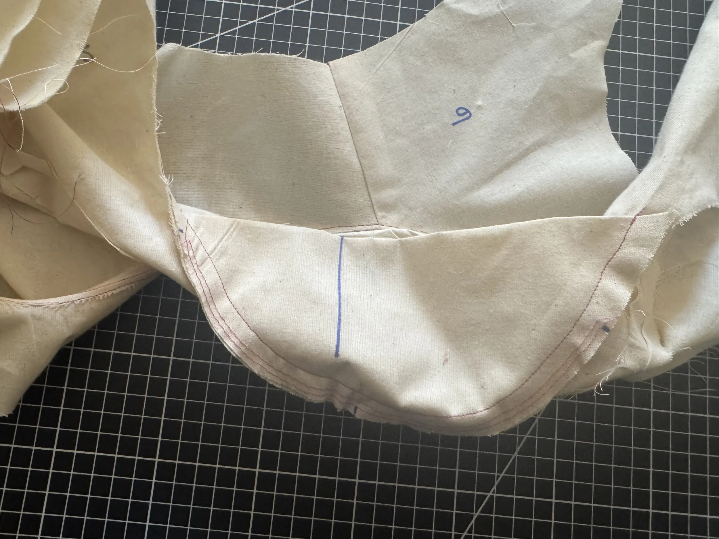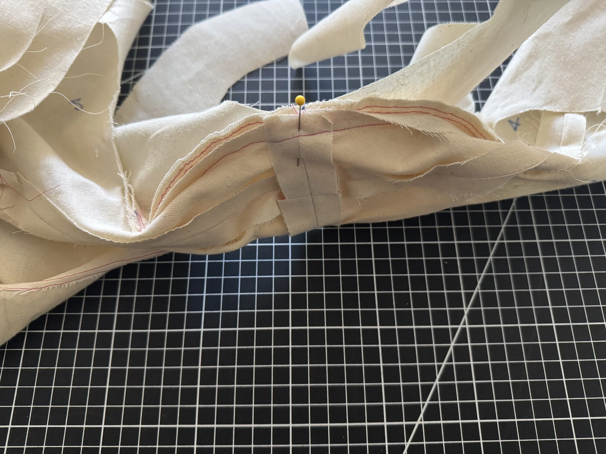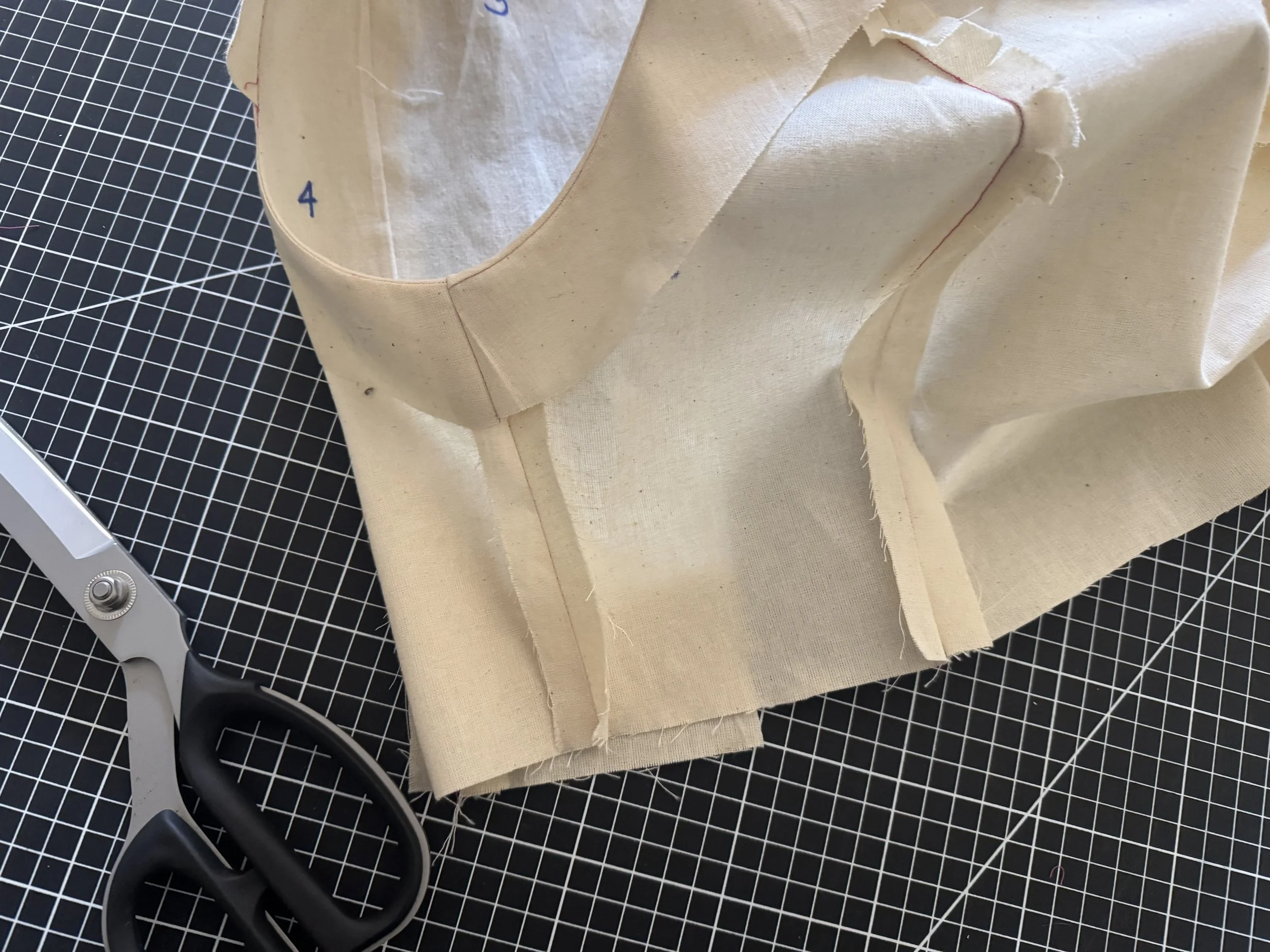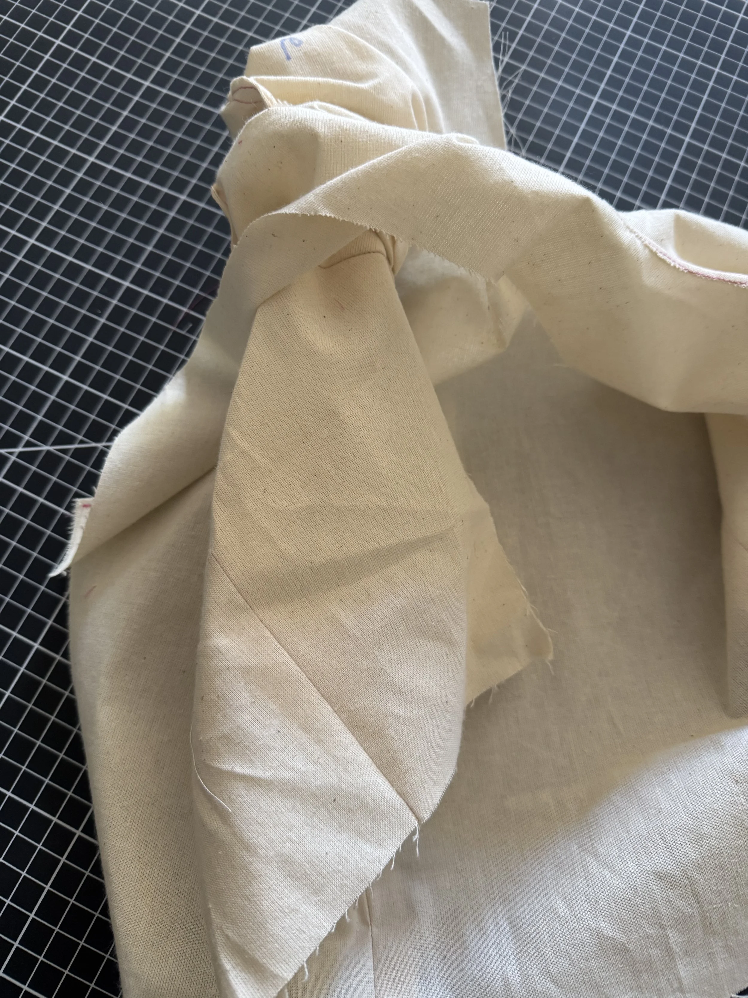 Trim the seam down, because my muslin is thick and heavily starched, I cut them to 1/4โ but a 1/2โ works well in a lighter fabric.