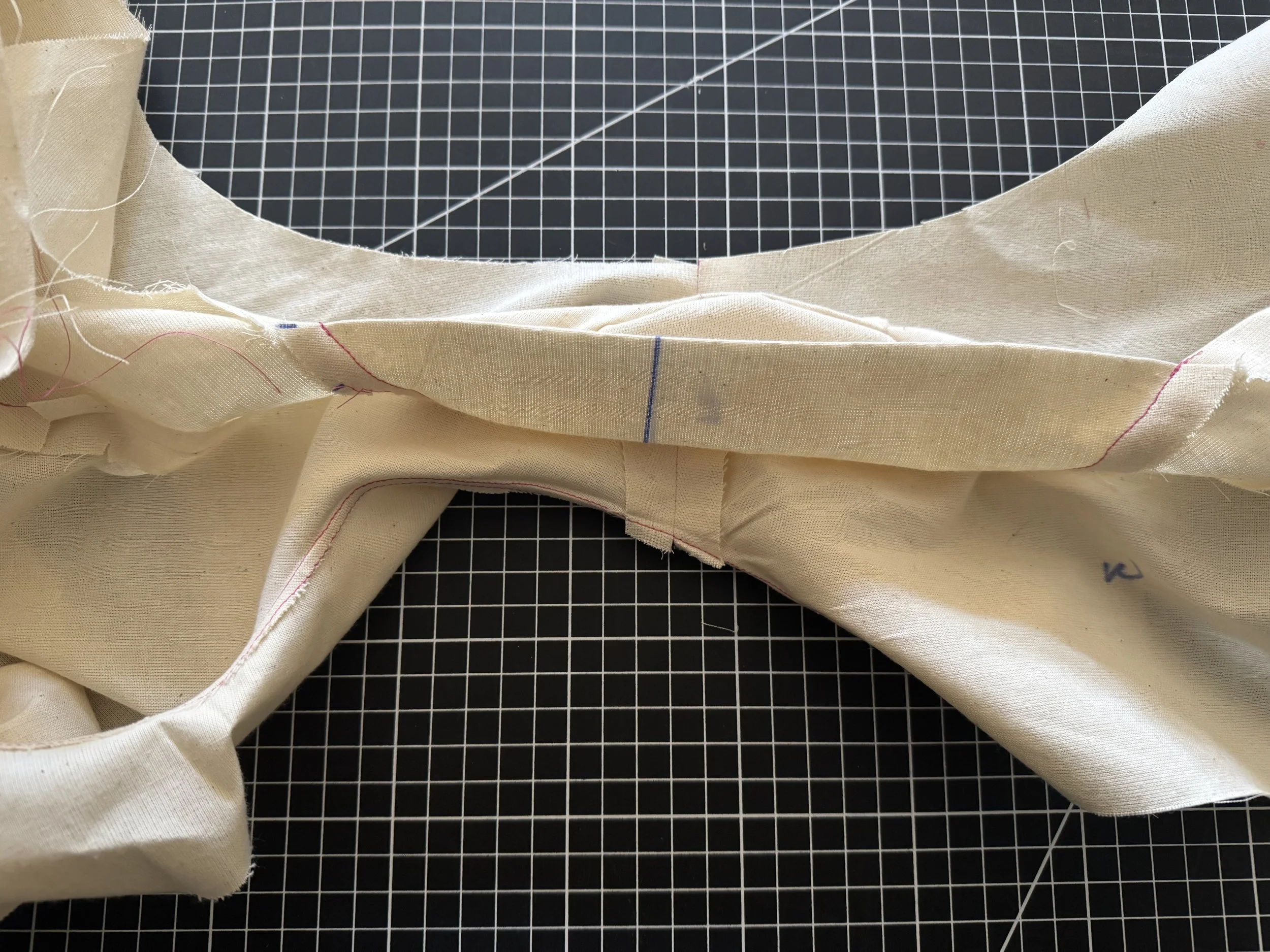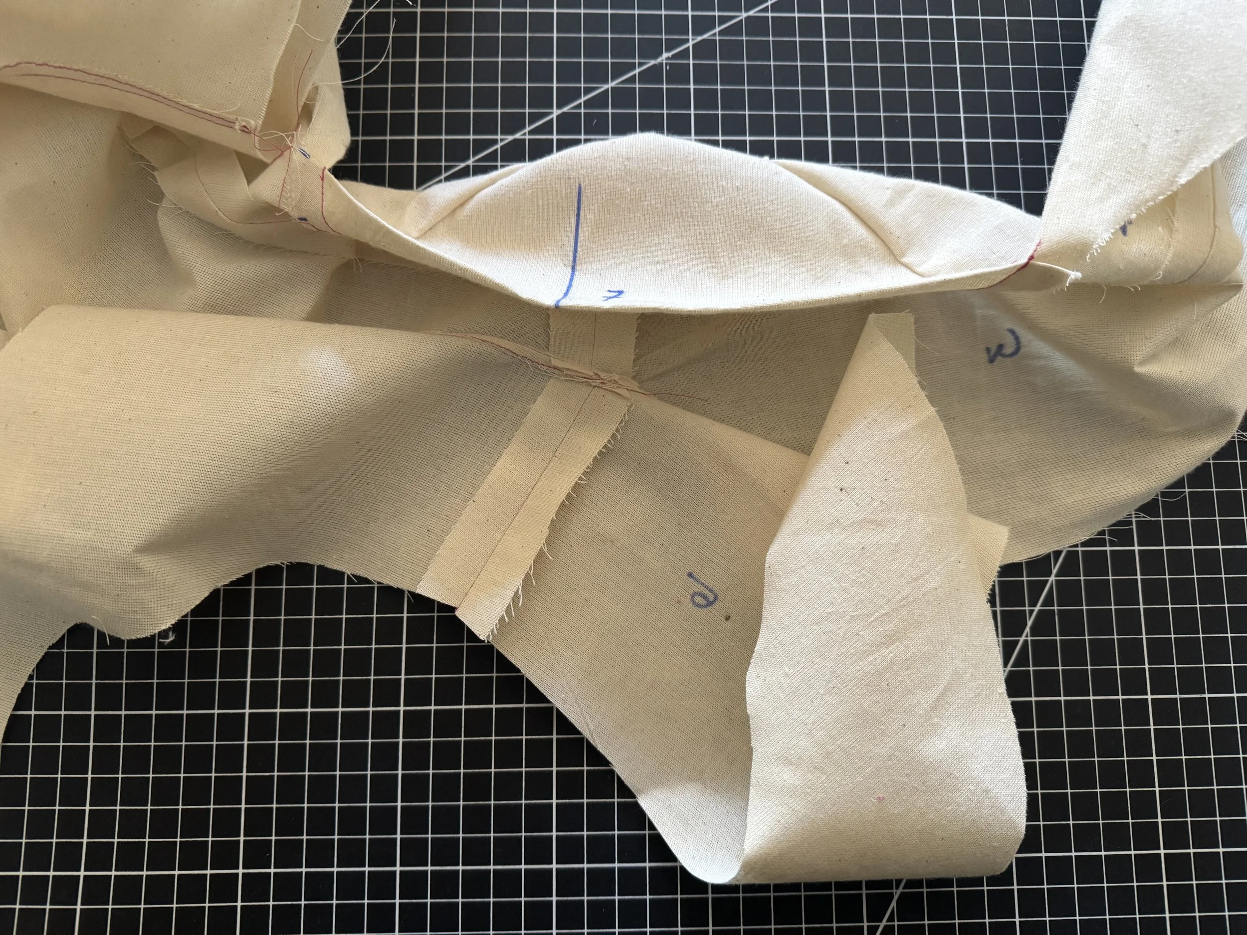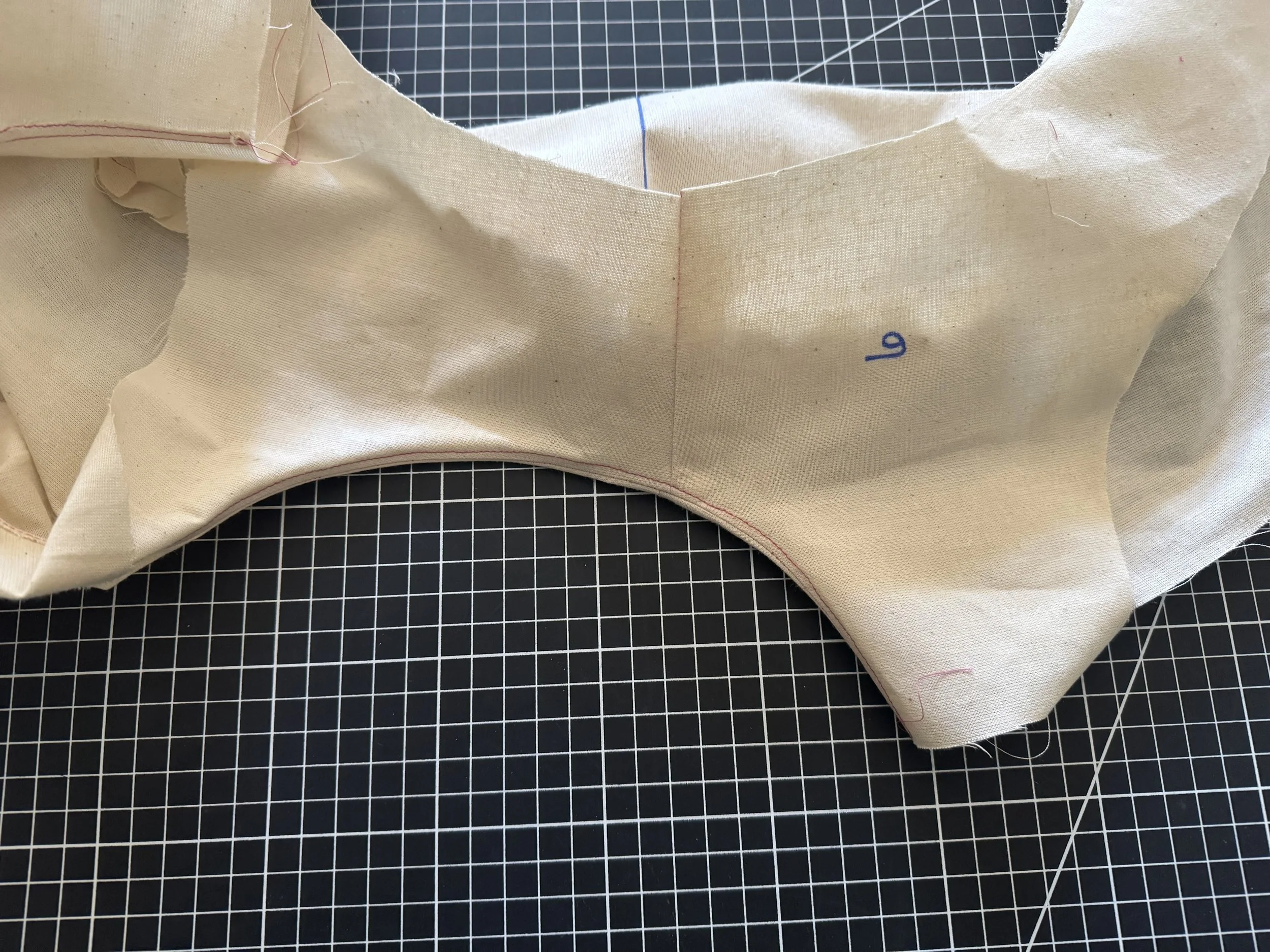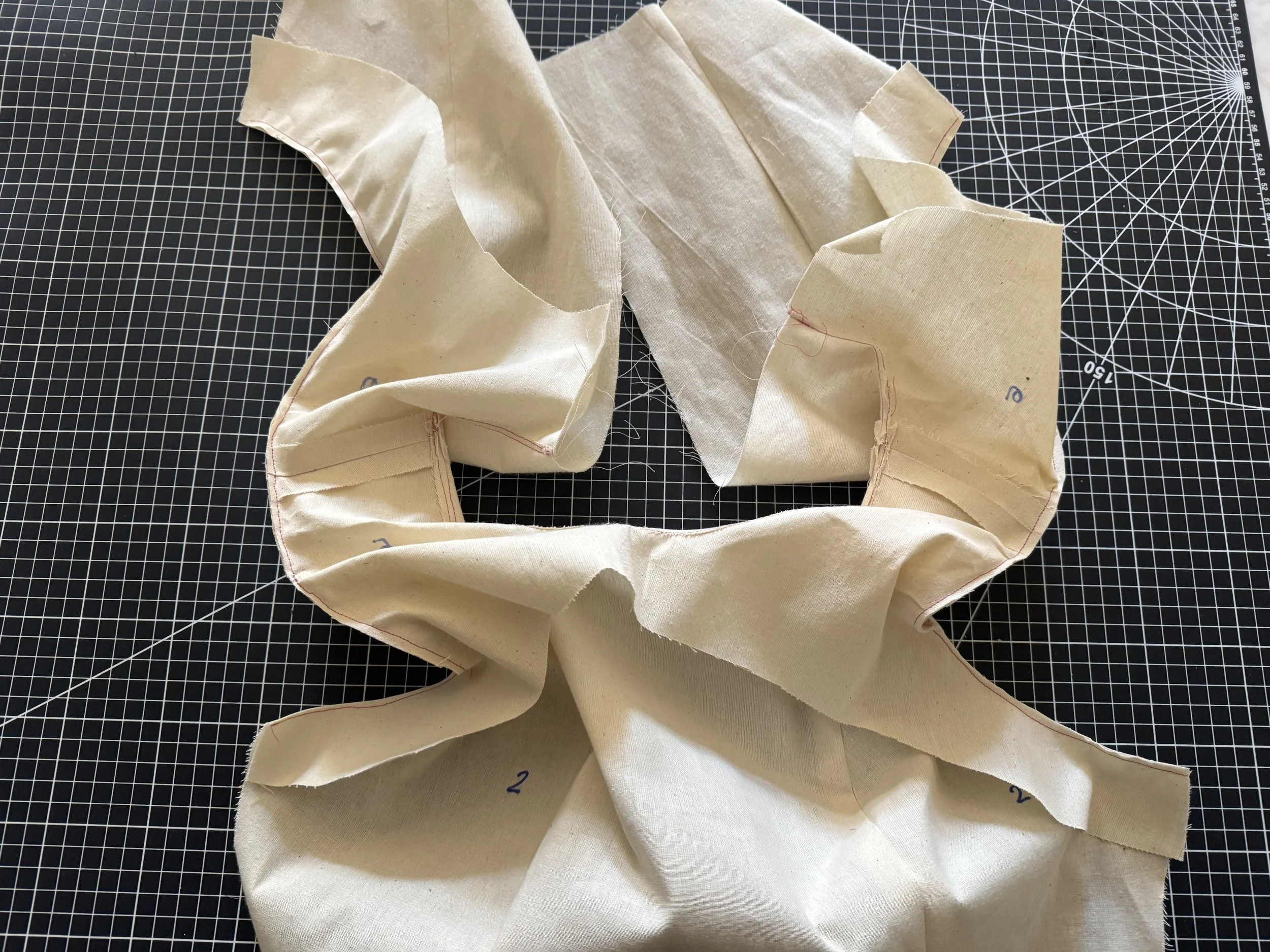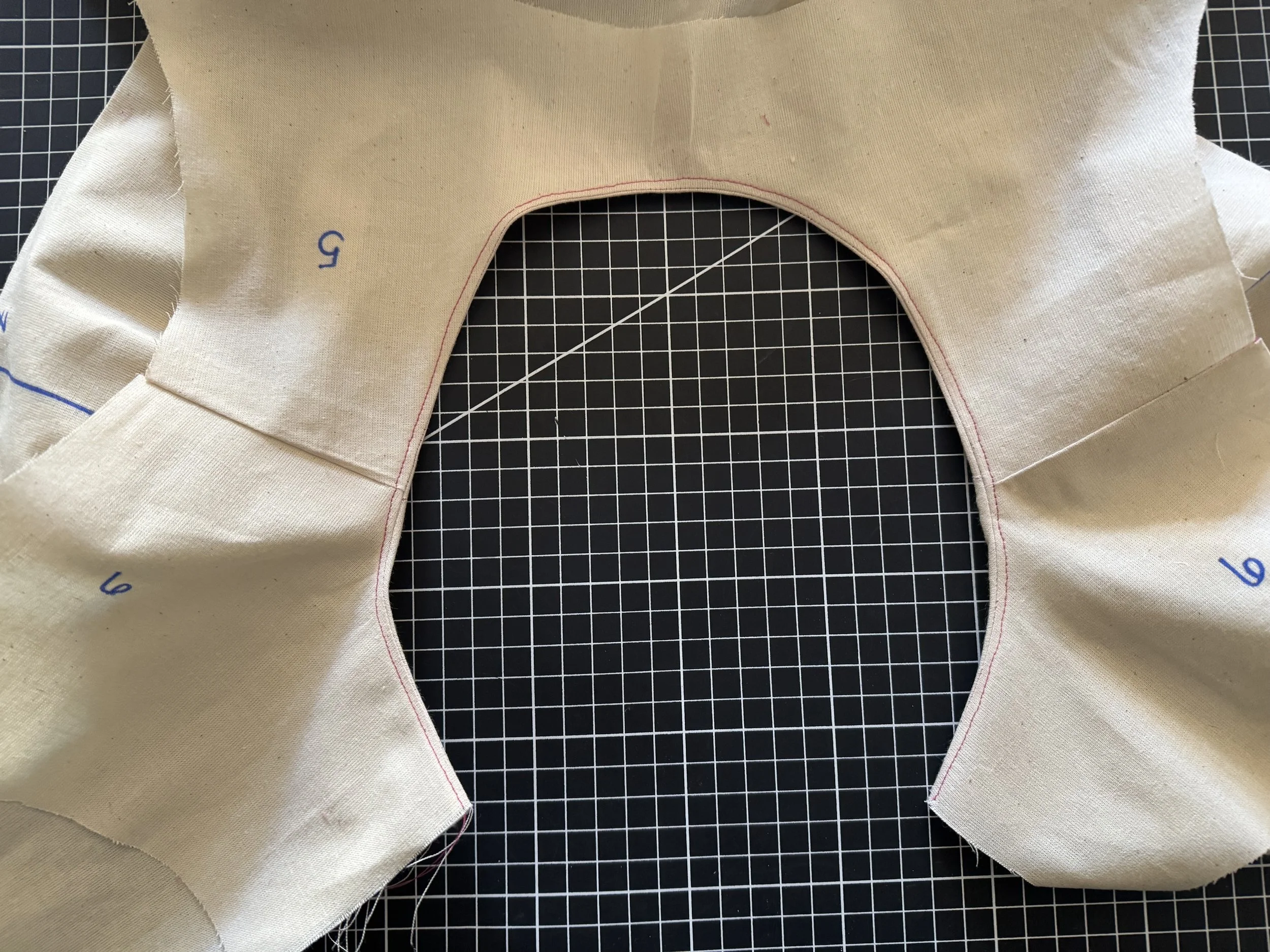 It should now look like this, creased but with the neckline and armseye fully closed.