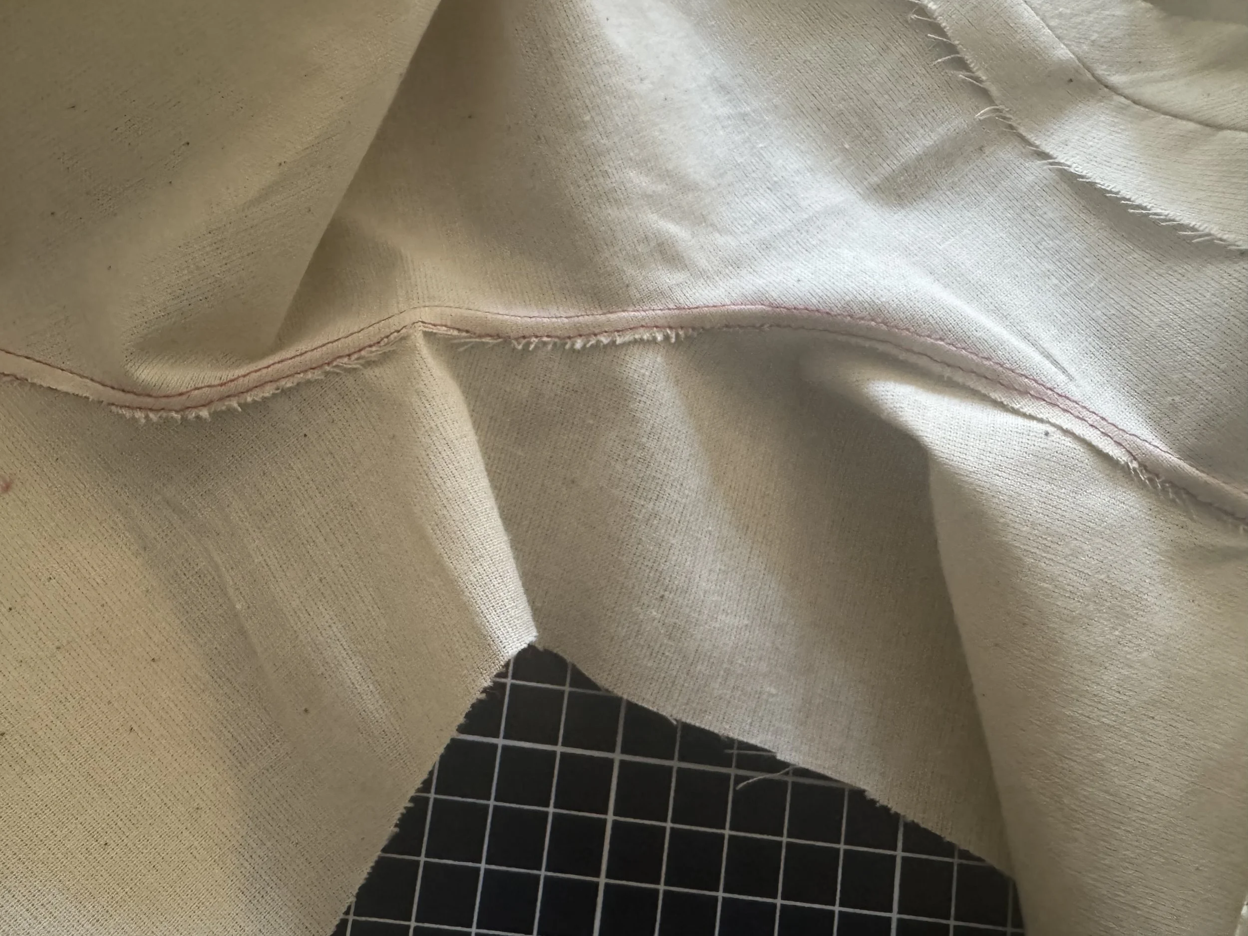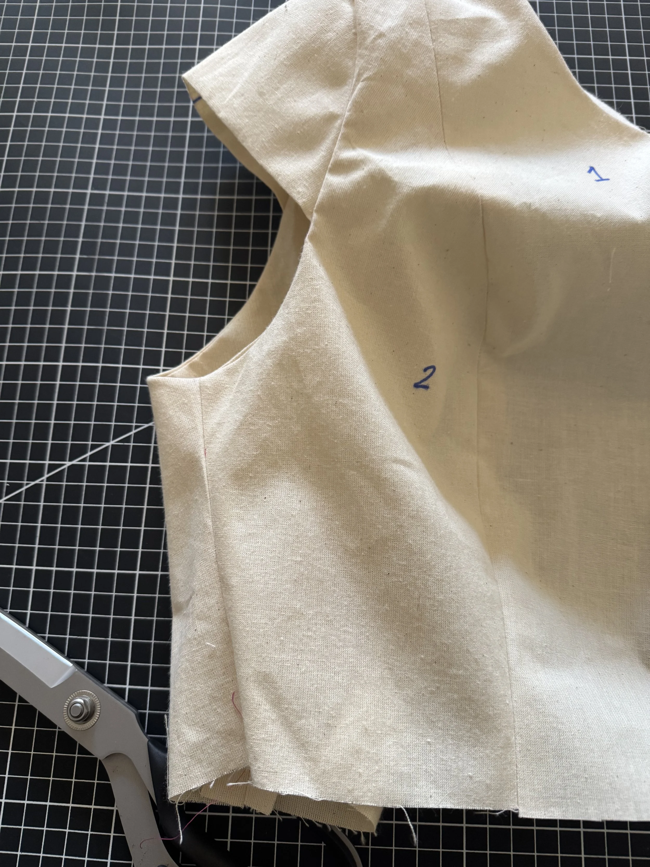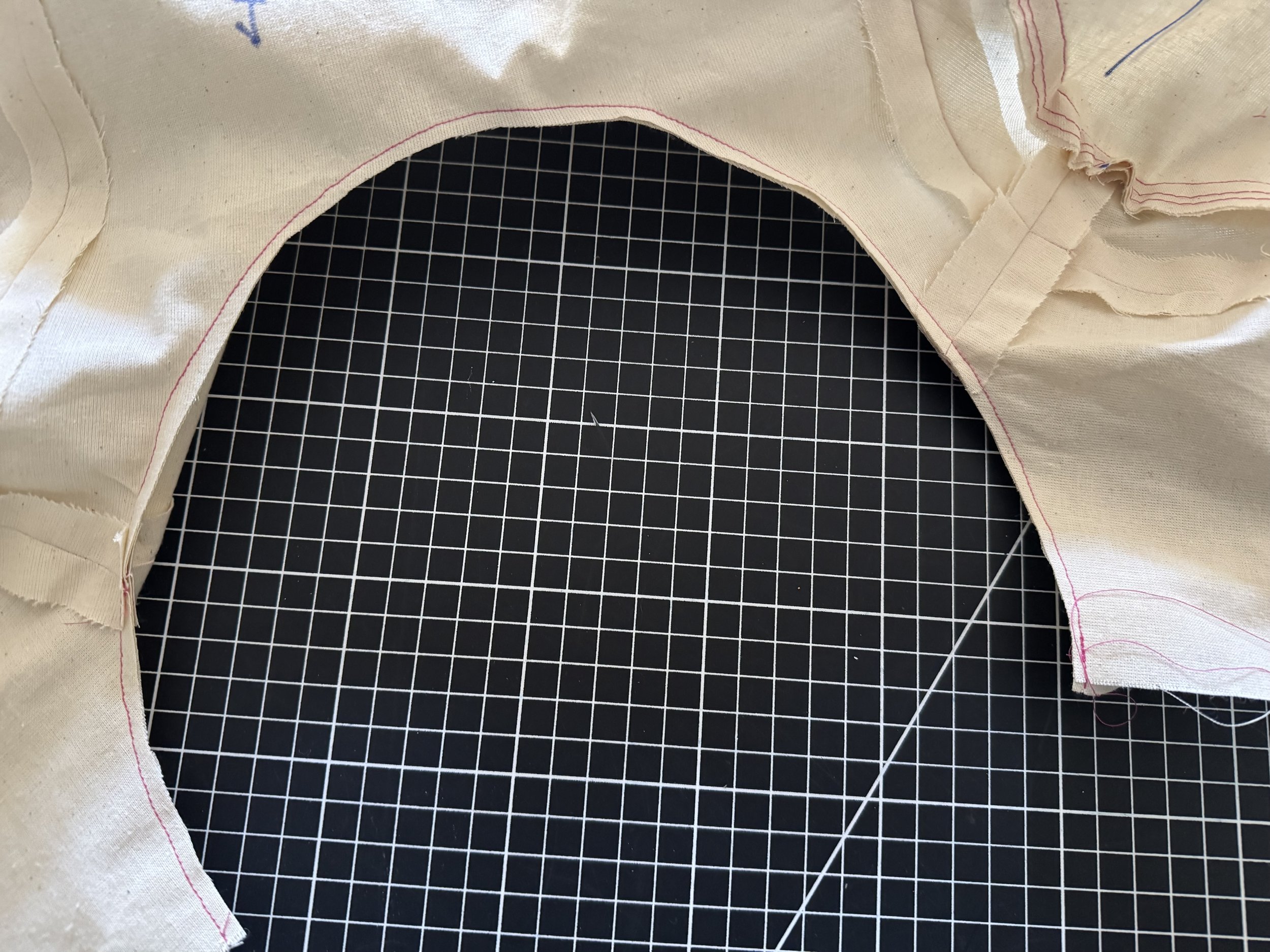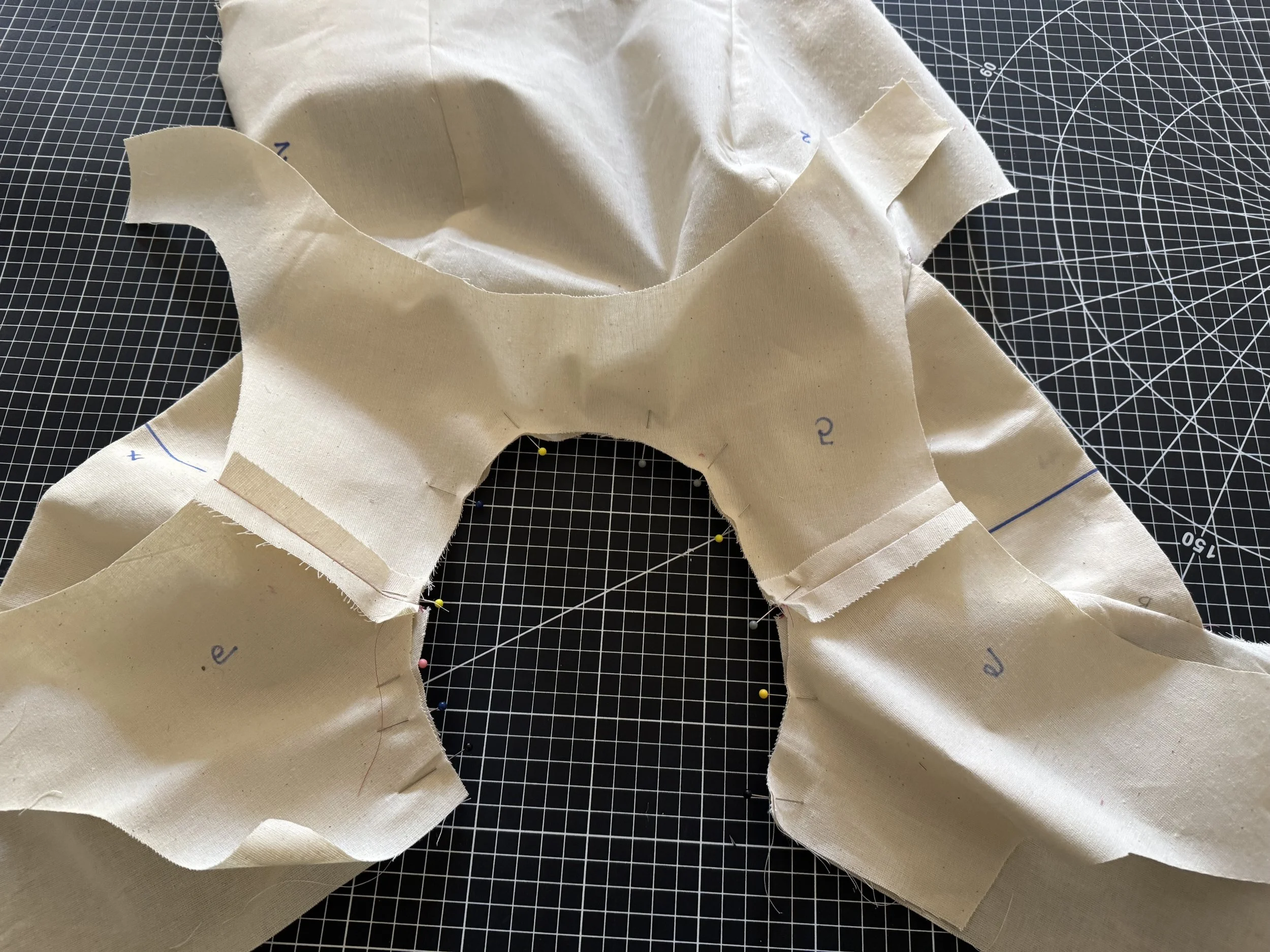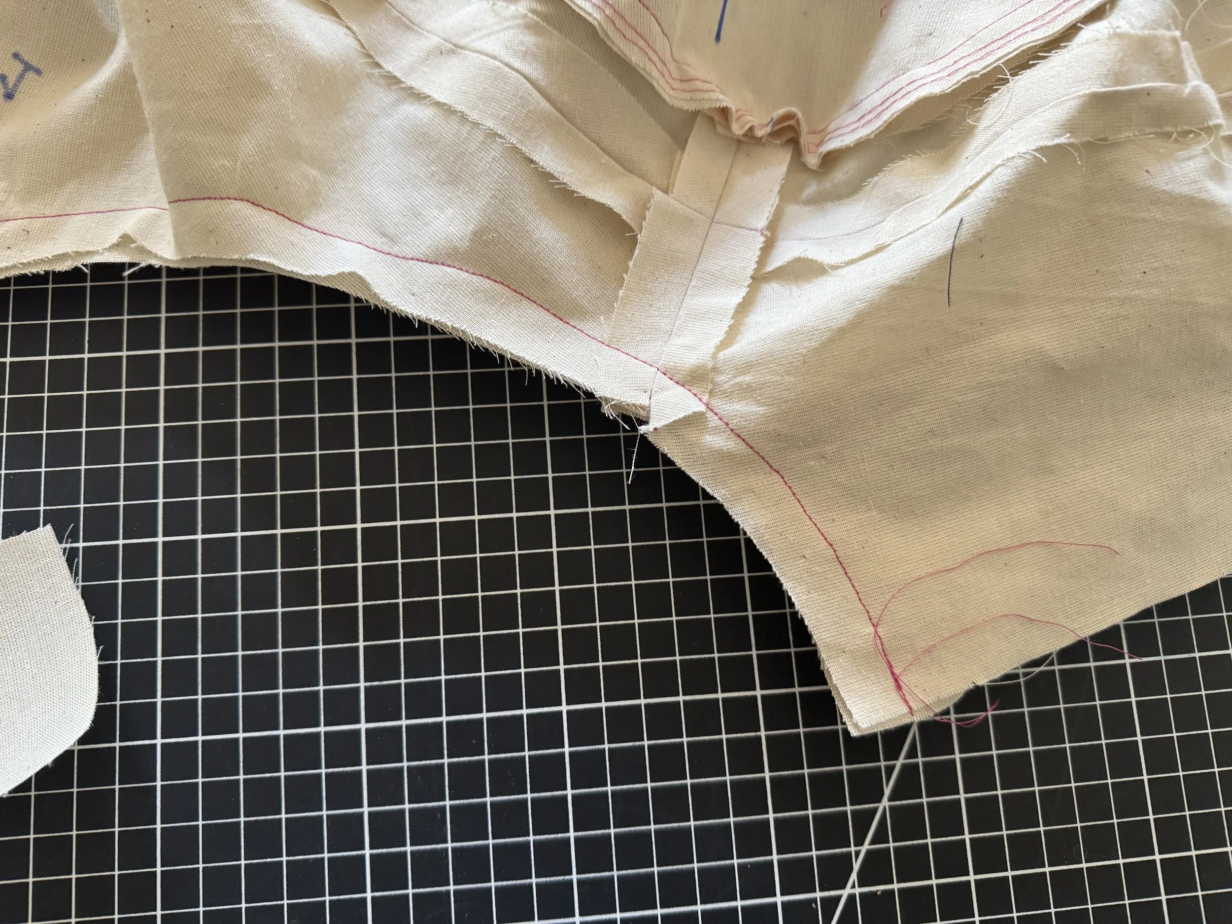 It should now look like this, creased but with the neckline and armseye fully closed.