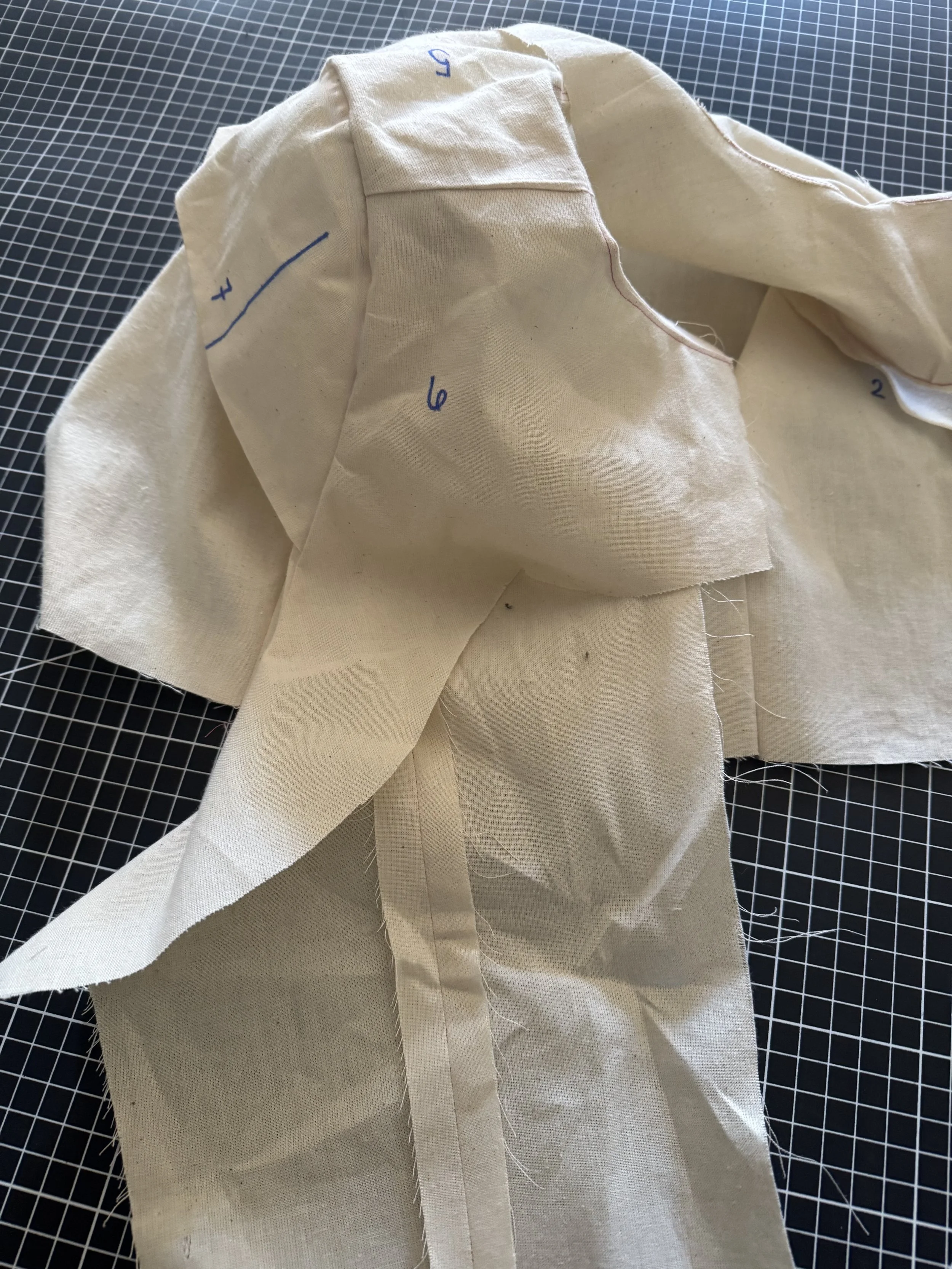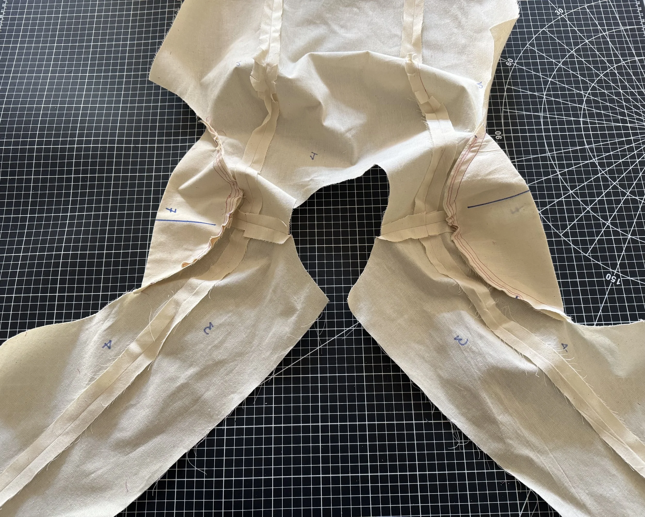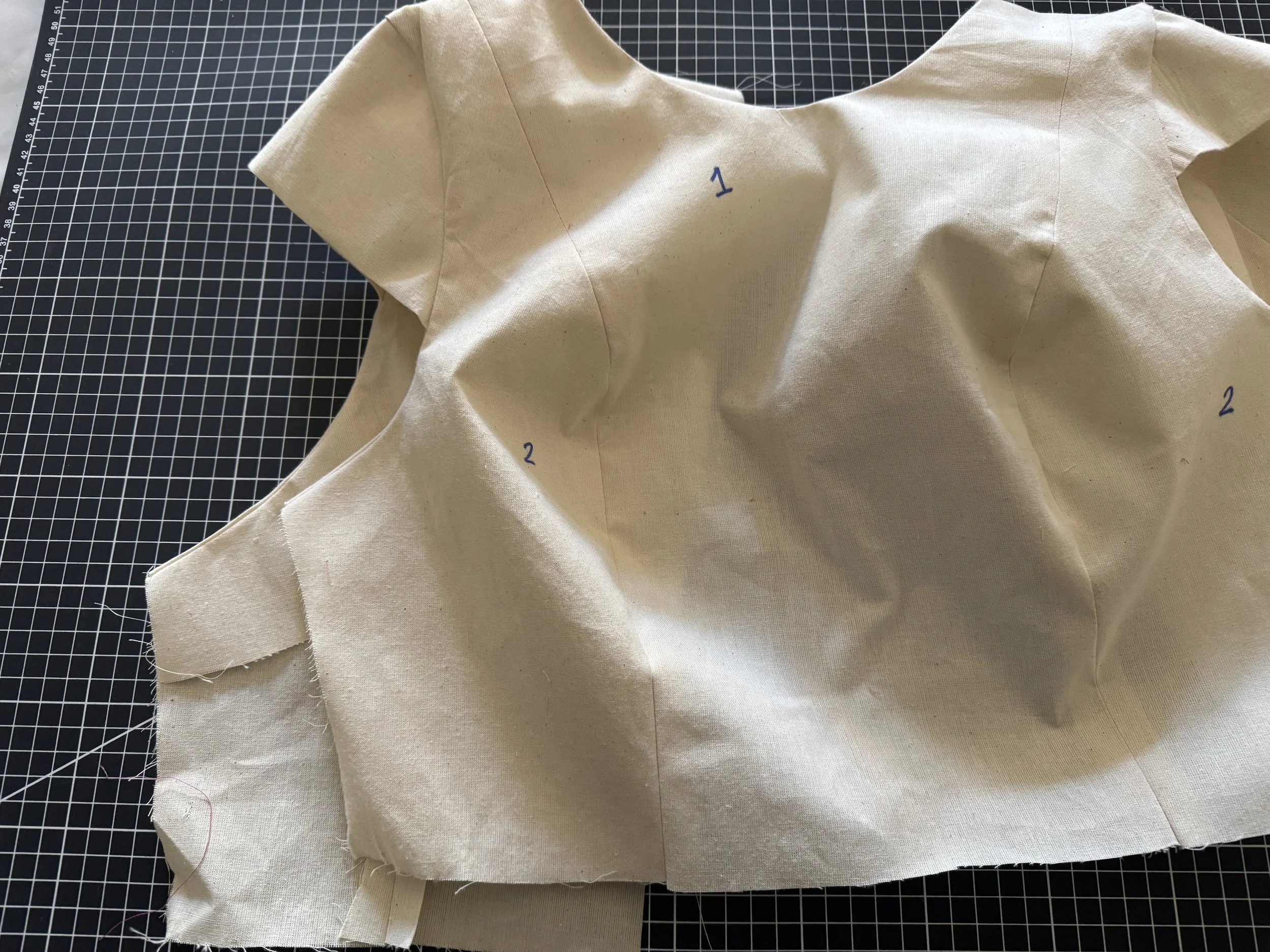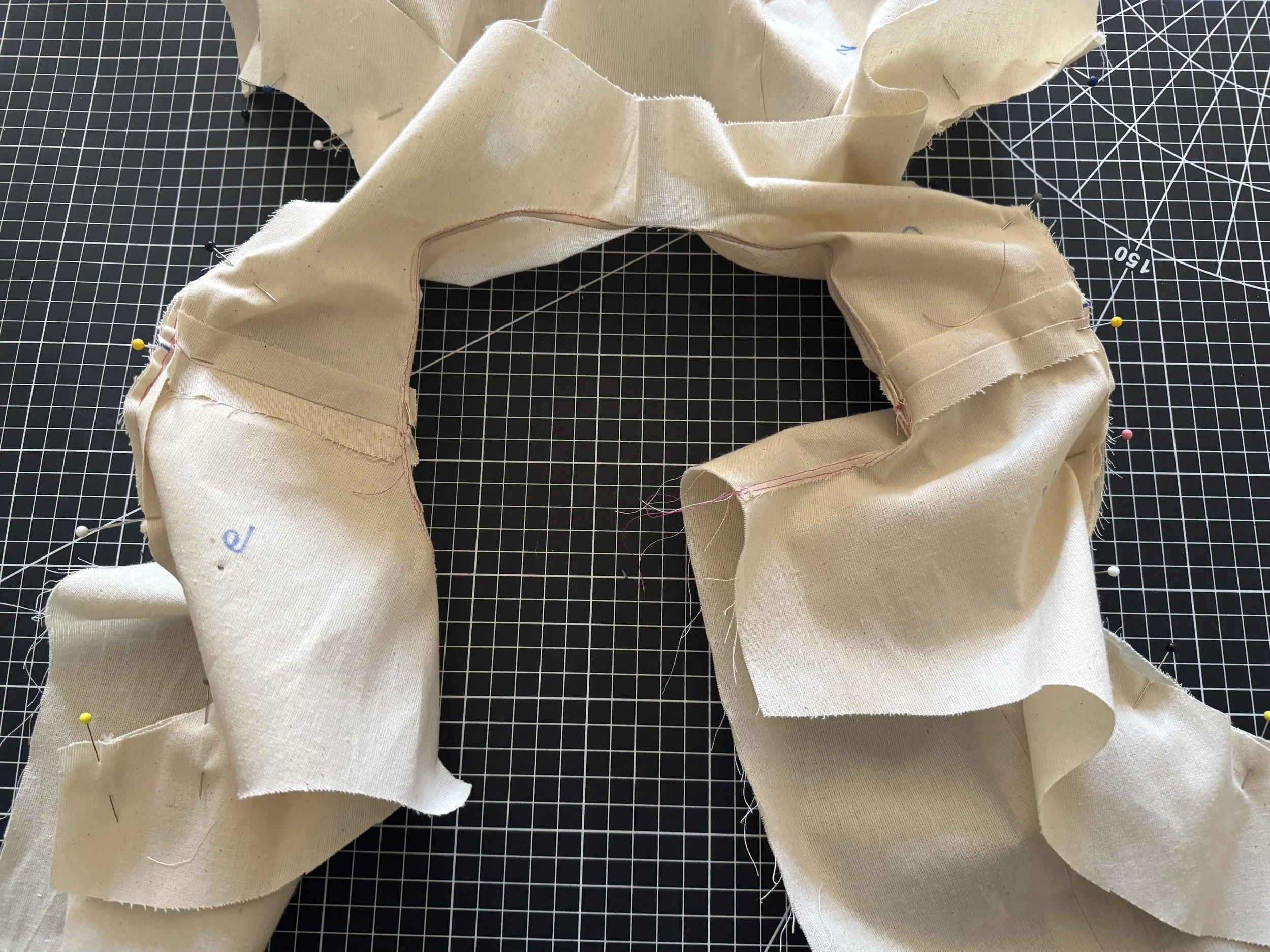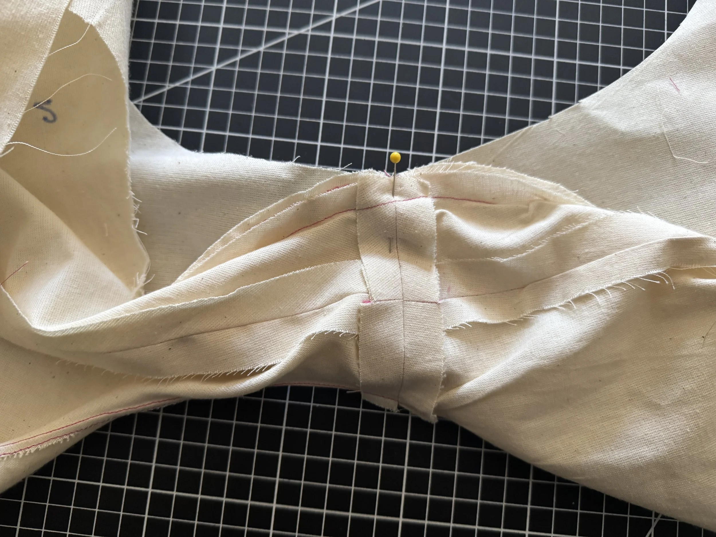 It should now look like this, creased but with the neckline and armseye fully closed.