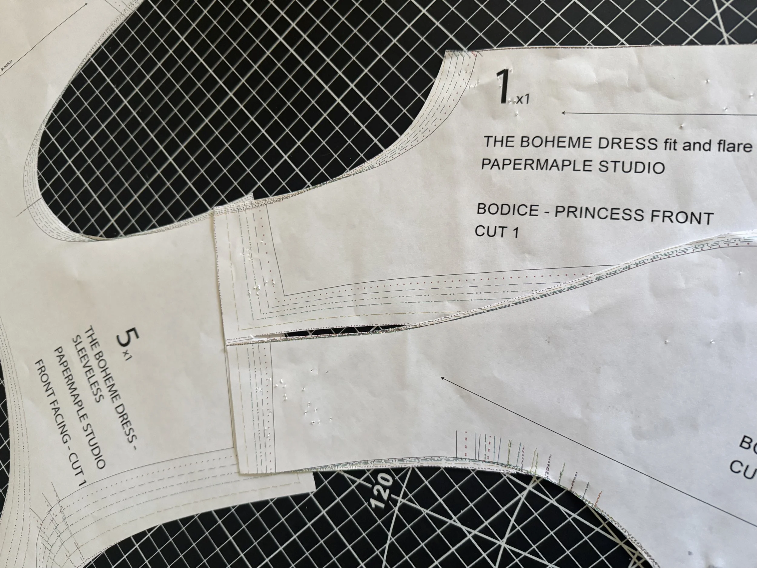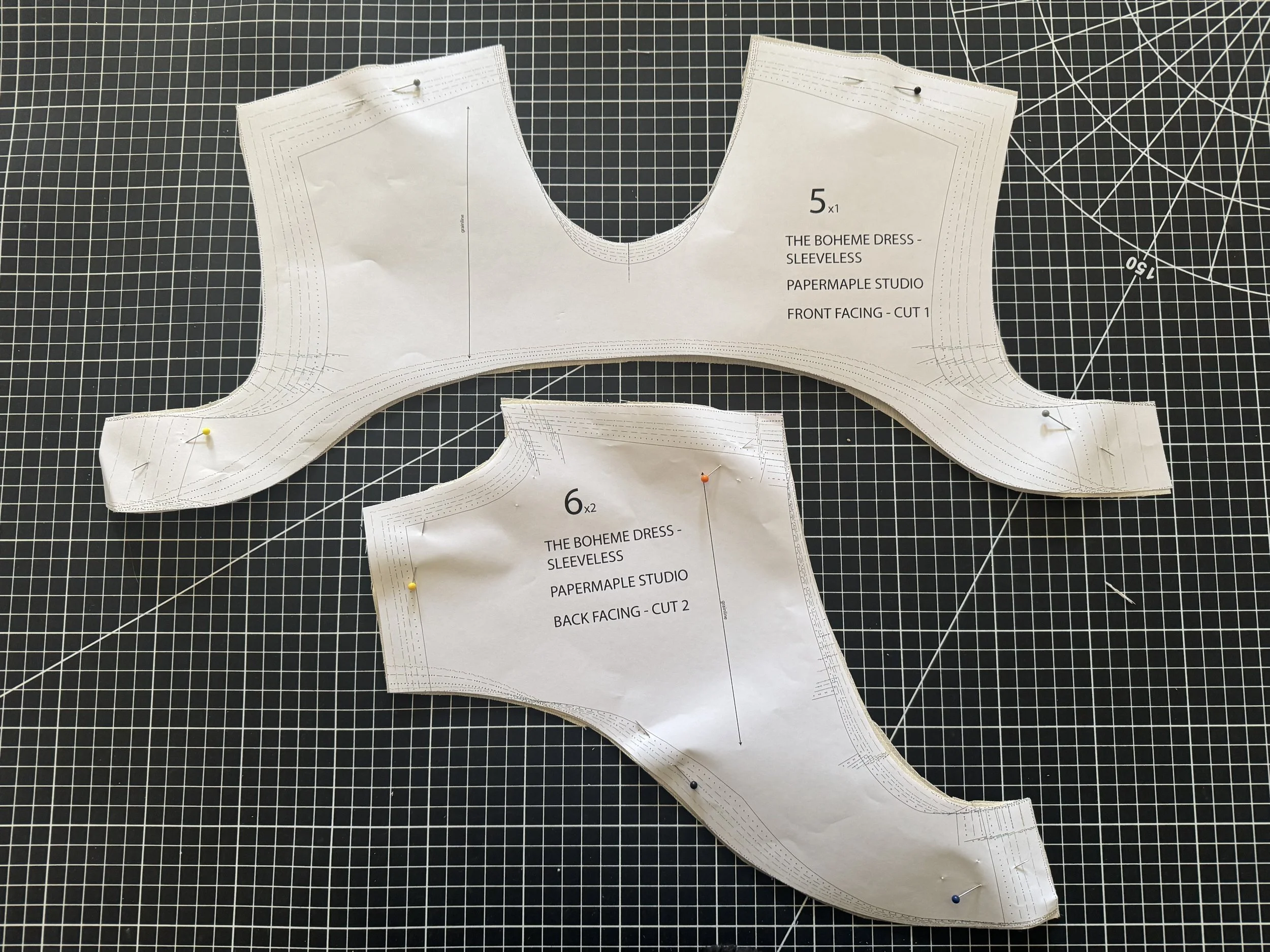 *This facing is designed for the sheath dress but with a small adjustment can also be used for the fit and flare. The bodice is the same, but has a smaller armseye - see below.