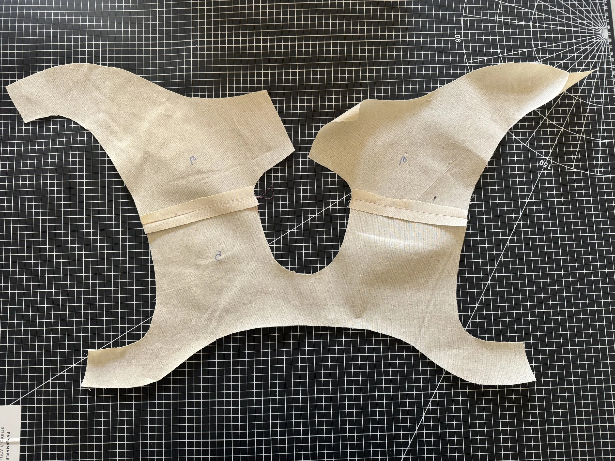 Sew the shoulder seams on the facings to join the three pieces and press well.