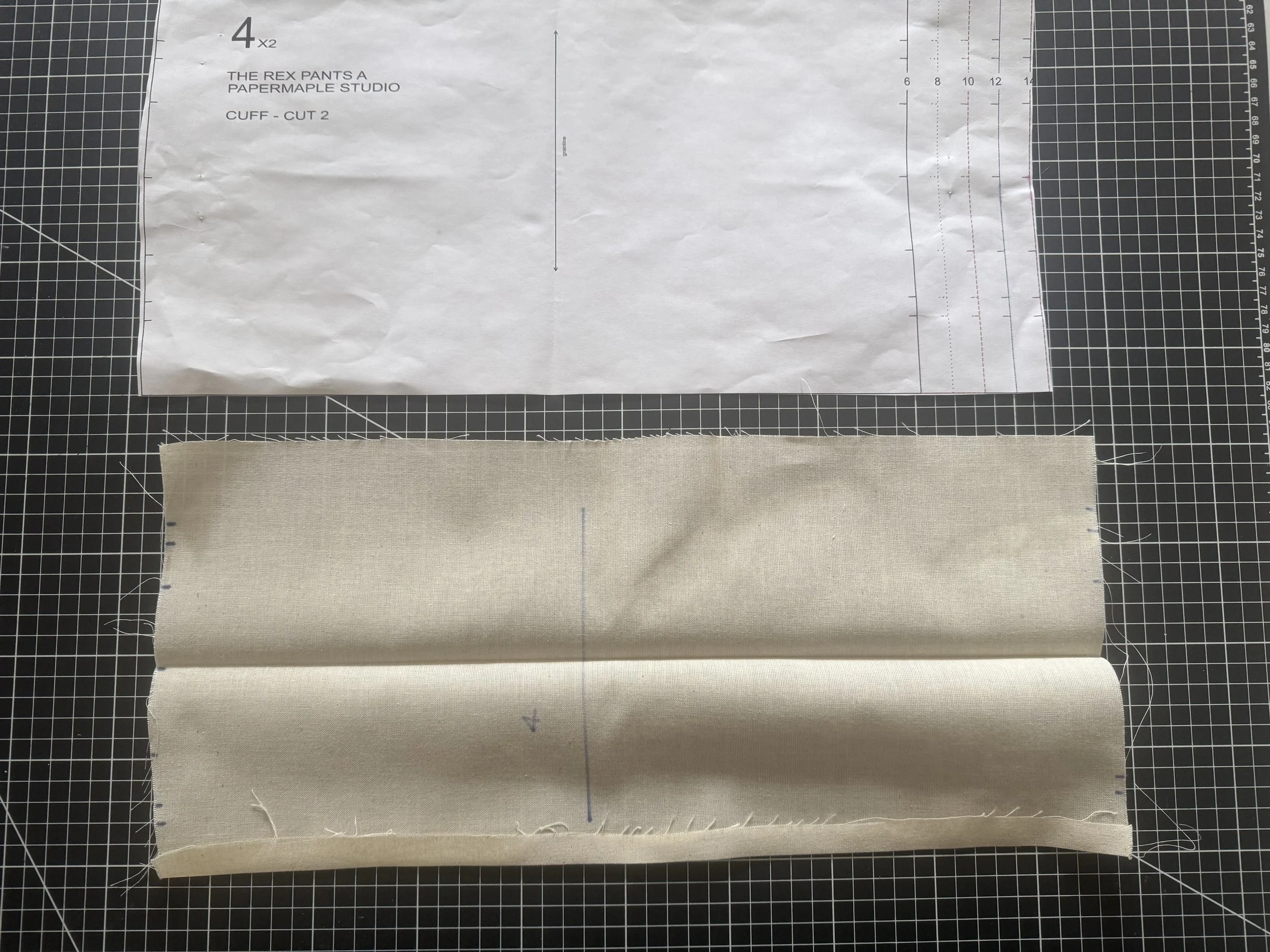 *The leg tapers as mentioned above and gets wider. I removed 3” from my hem before adding the cuff. Measure the new circumference of the legs before you cut the cuff. My pants are cut at a 10 but the cuff needed to be cut at a 14 to fit the new opening width.