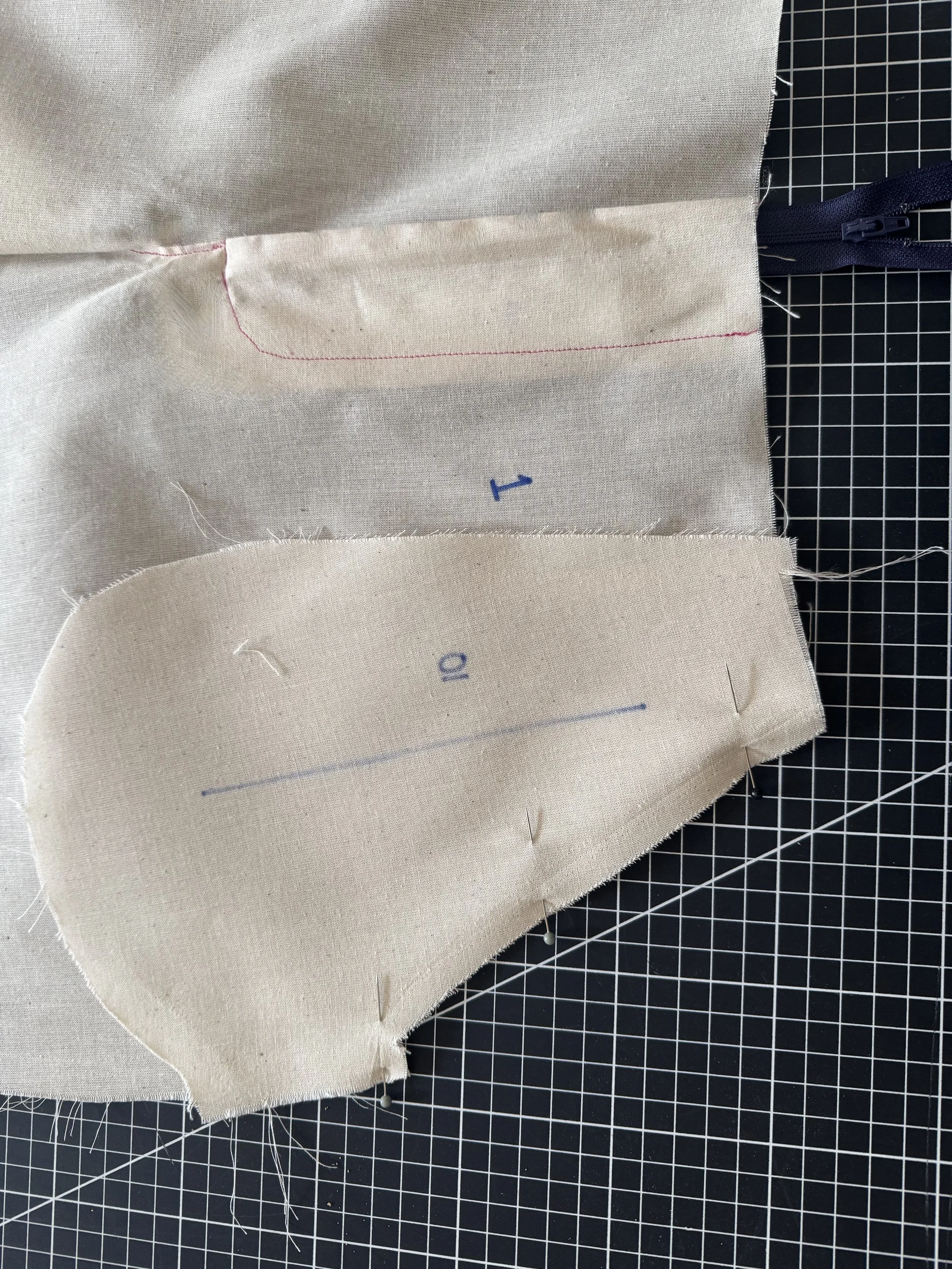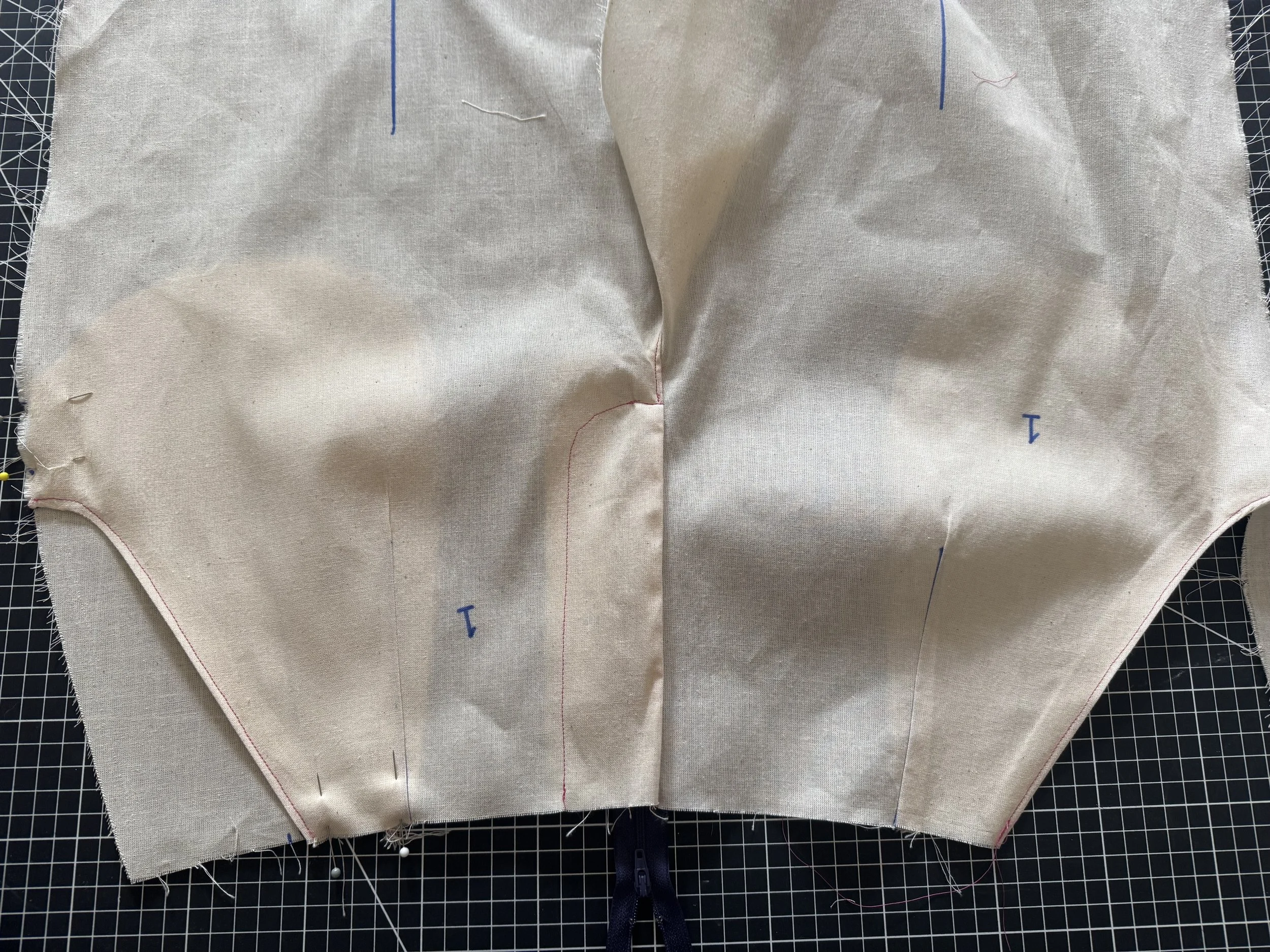 To begin, we will be working with our front panels - I like to add the darts after the zipper has been sewn.
