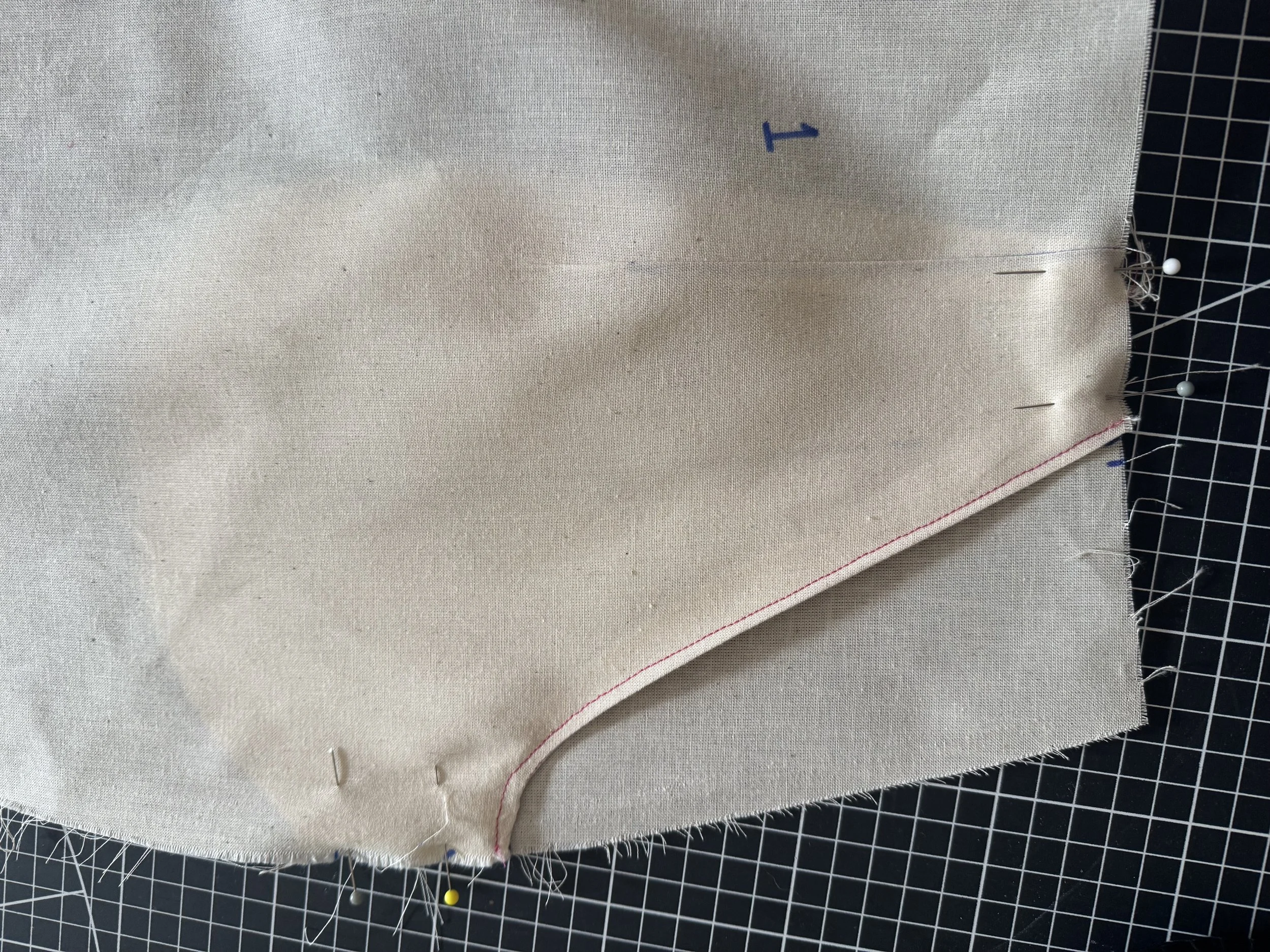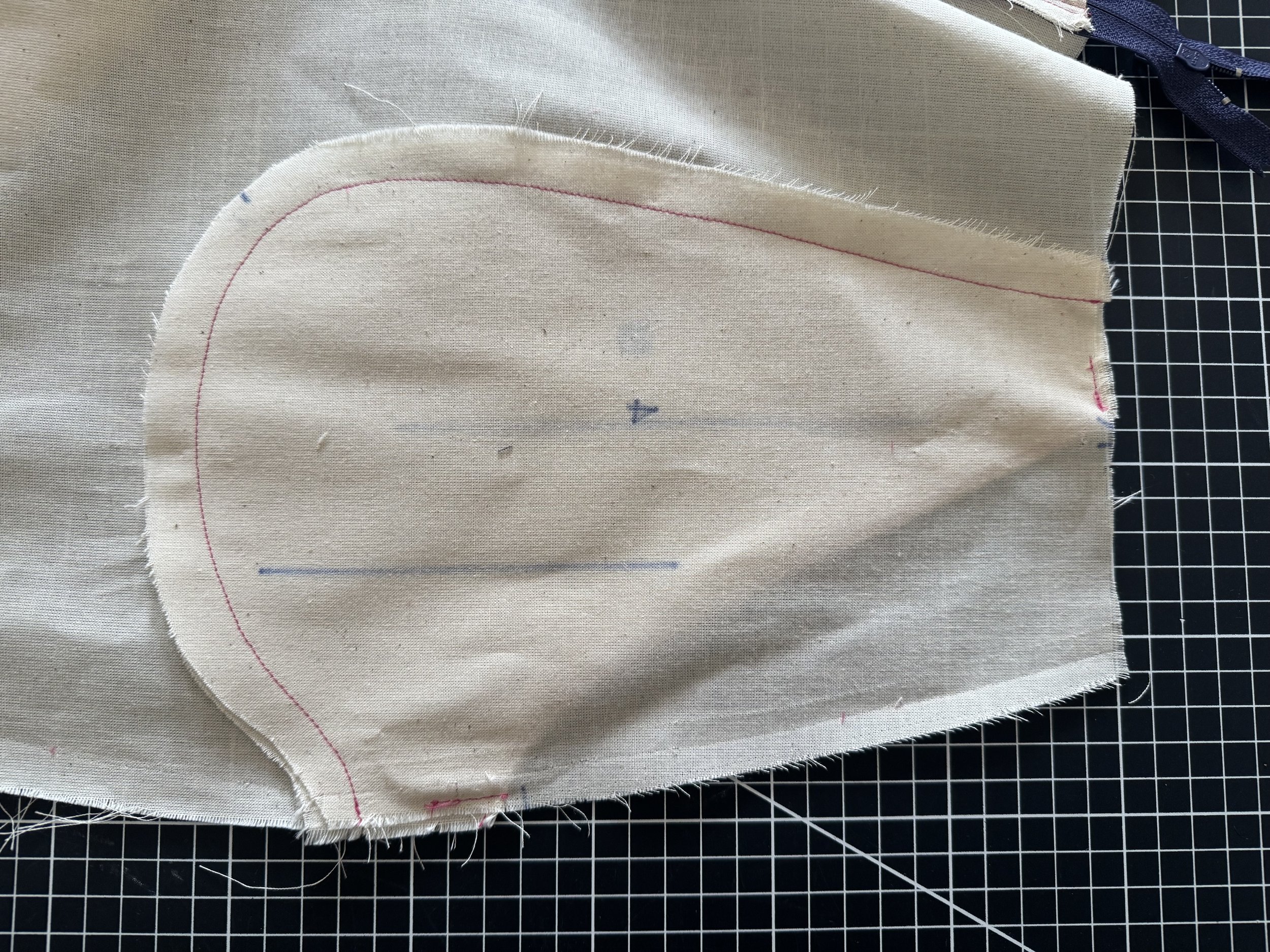 You will often see a “bump” at the point of a dart, this is created in part by the stitch length and backstitching.